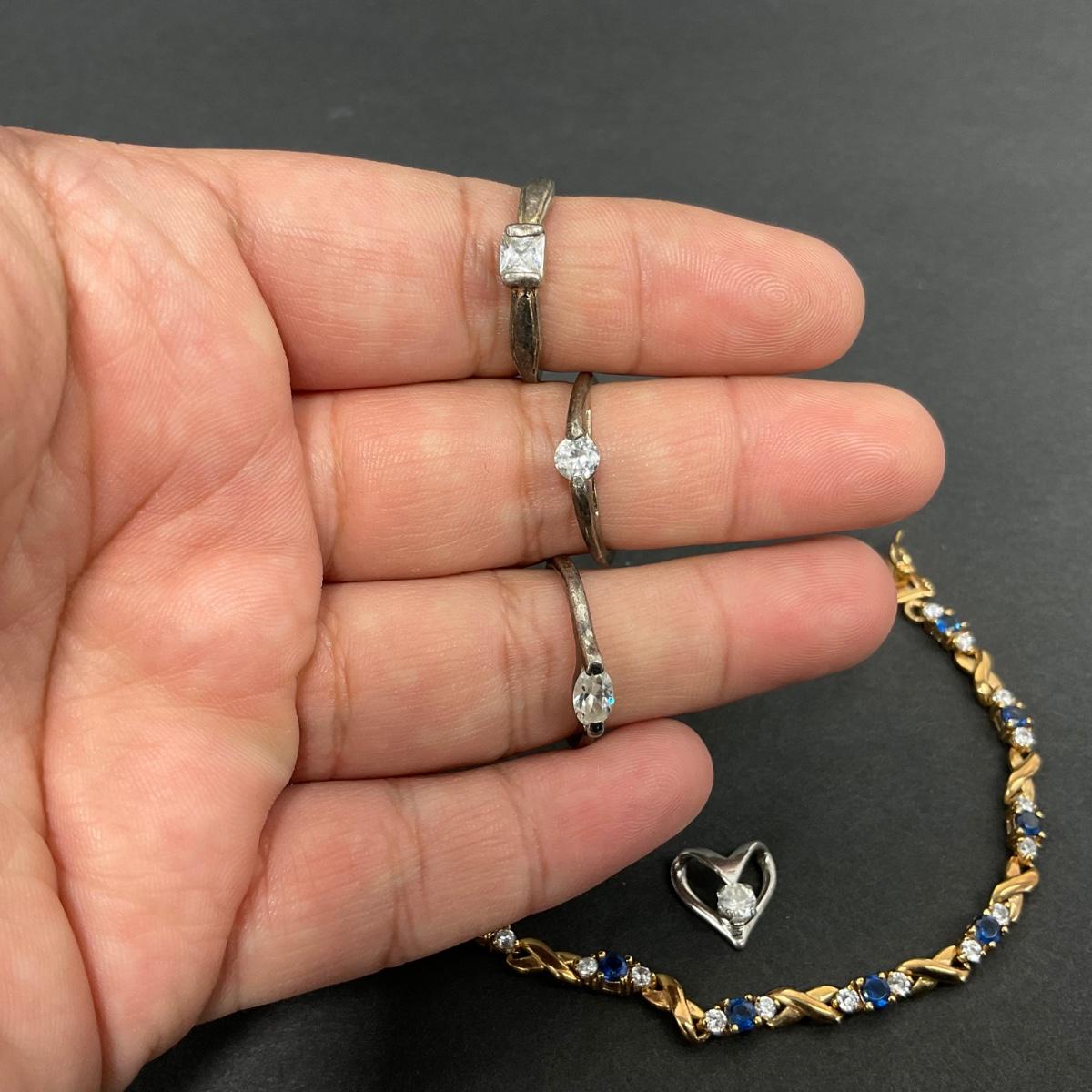 Lot of assorted costume jewelry. Please see photos for details and condition. Any condition statement is given as a courtesy to a client, is an opinion, and should not be treated as a statement of fact. Reference to condition written, oral or within a condition report shall not be regarded as a full account of condition and may not include all defects, alterations, or restorations. Absence of a condition report does not imply a lot is flawless or lacking imperfections or damage. Katherine’s Auction & Appraisal Service shall have no responsibility for any error or omission. Returns shall not be accepted on the basis of condition. ::: Shipping is available on this lot. If you require shipping you must let us know at the close of the auction. We will coordinate with you after the item has been won. Shipping fees will include insurance up to or exceeding the value of all items being mailed. If you have any questions regarding this lot please contact the auctioneer either via this website, by direct email or by phone. PICK UP TIMES and other important information can be found in the TERMS and DESCRIPTION of the auction. Please take a look for pertinent information. Thanks!