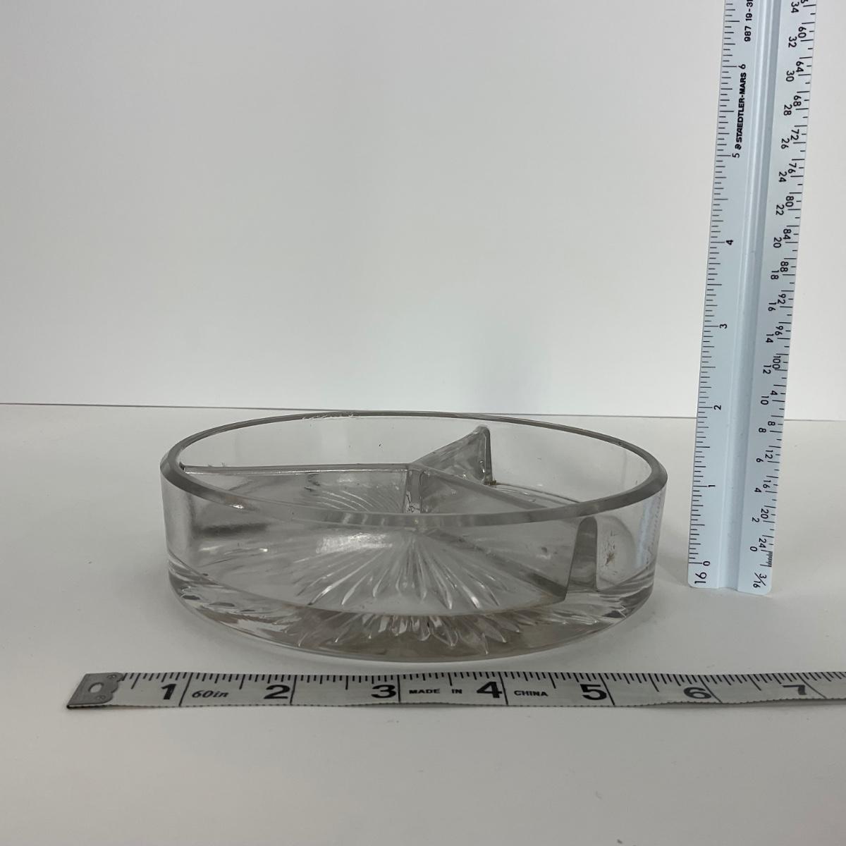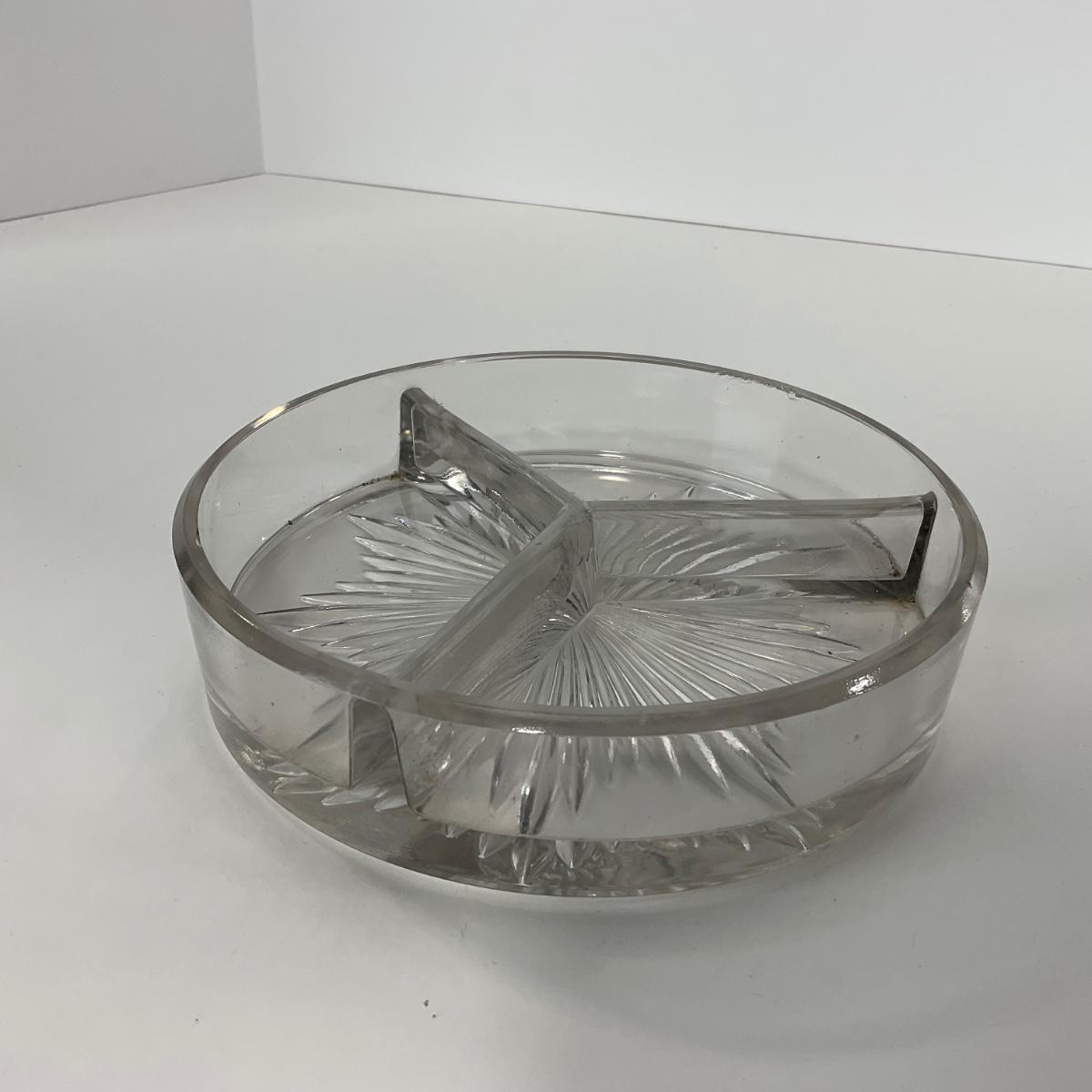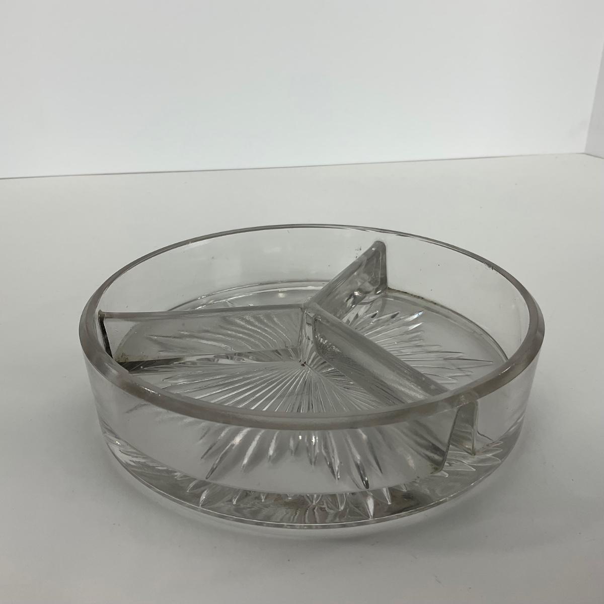 One clear glass divided dish set in a metal holder with movable handle, perfect for any party to house many small snacks. Please see photos for details and condition. ::: Shipping is available on this lot. If you require shipping you must let us know at the close of the auction. We will coordinate with you after the item has been won. Shipping fees will include insurance up to or exceeding the value of all items being mailed. If you have any questions regarding this lot please contact the auctioneer either via this website, by direct email or by phone. PICK UP TIMES and other important information can be found in the TERMS and DESCRIPTION of the auction. Please take a look for pertinent information. Thanks!