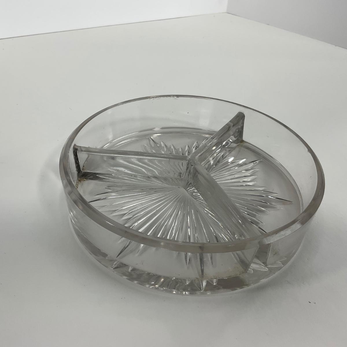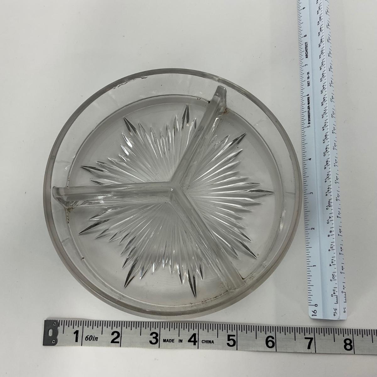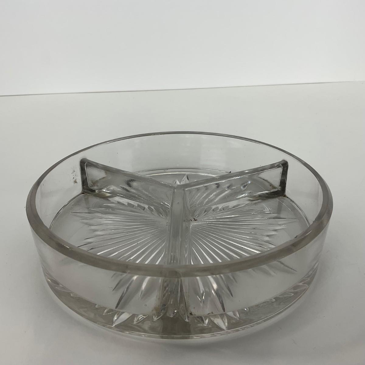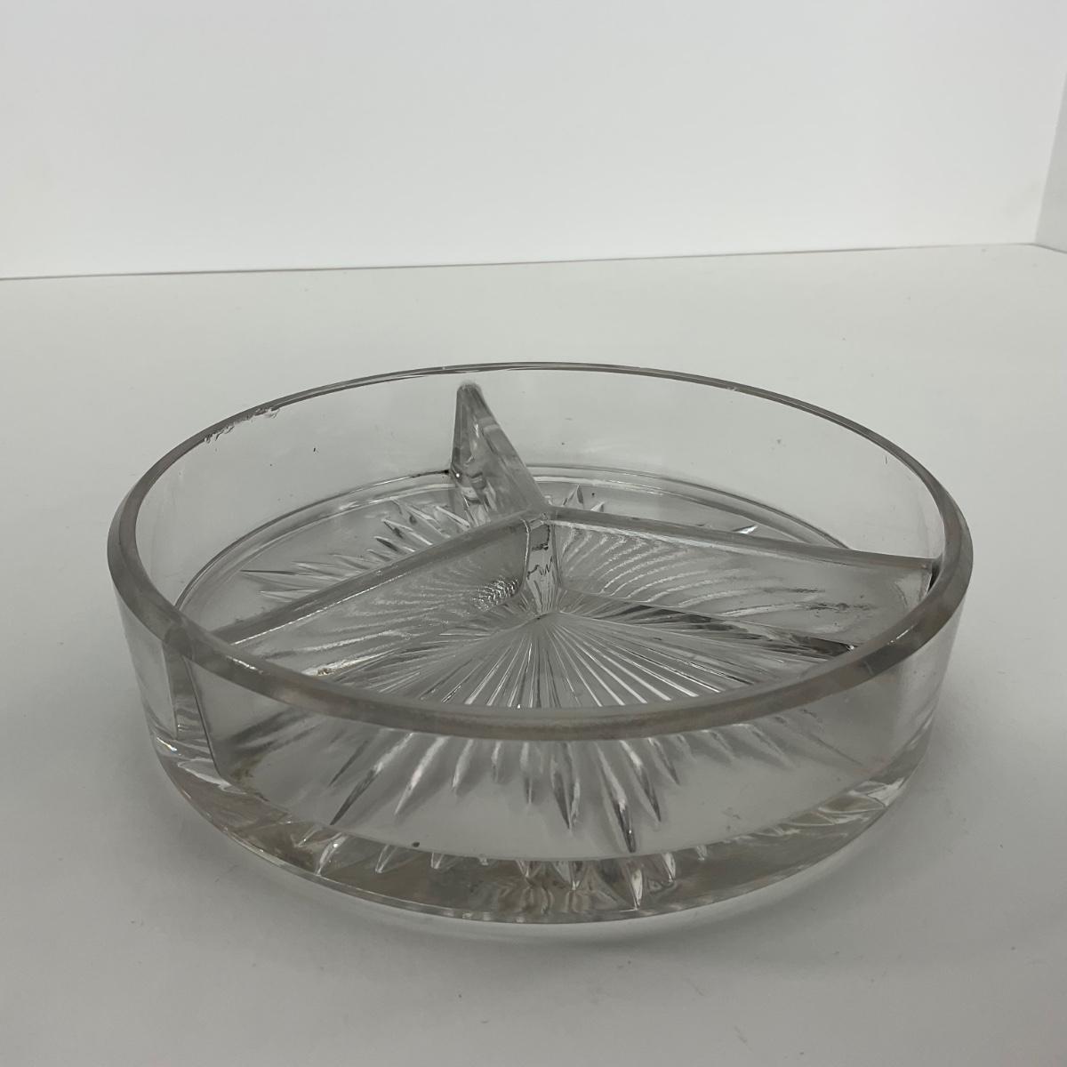 One clear glass divided dish set in a metal holder with movable handle, perfect for any party to house many small snacks. Please see photos for details and condition. ::: Shipping is available on this lot. If you require shipping you must let us know at the close of the auction. We will coordinate with you after the item has been won. Shipping fees will include insurance up to or exceeding the value of all items being mailed. If you have any questions regarding this lot please contact the auctioneer either via this website, by direct email or by phone. PICK UP TIMES and other important information can be found in the TERMS and DESCRIPTION of the auction. Please take a look for pertinent information. Thanks!