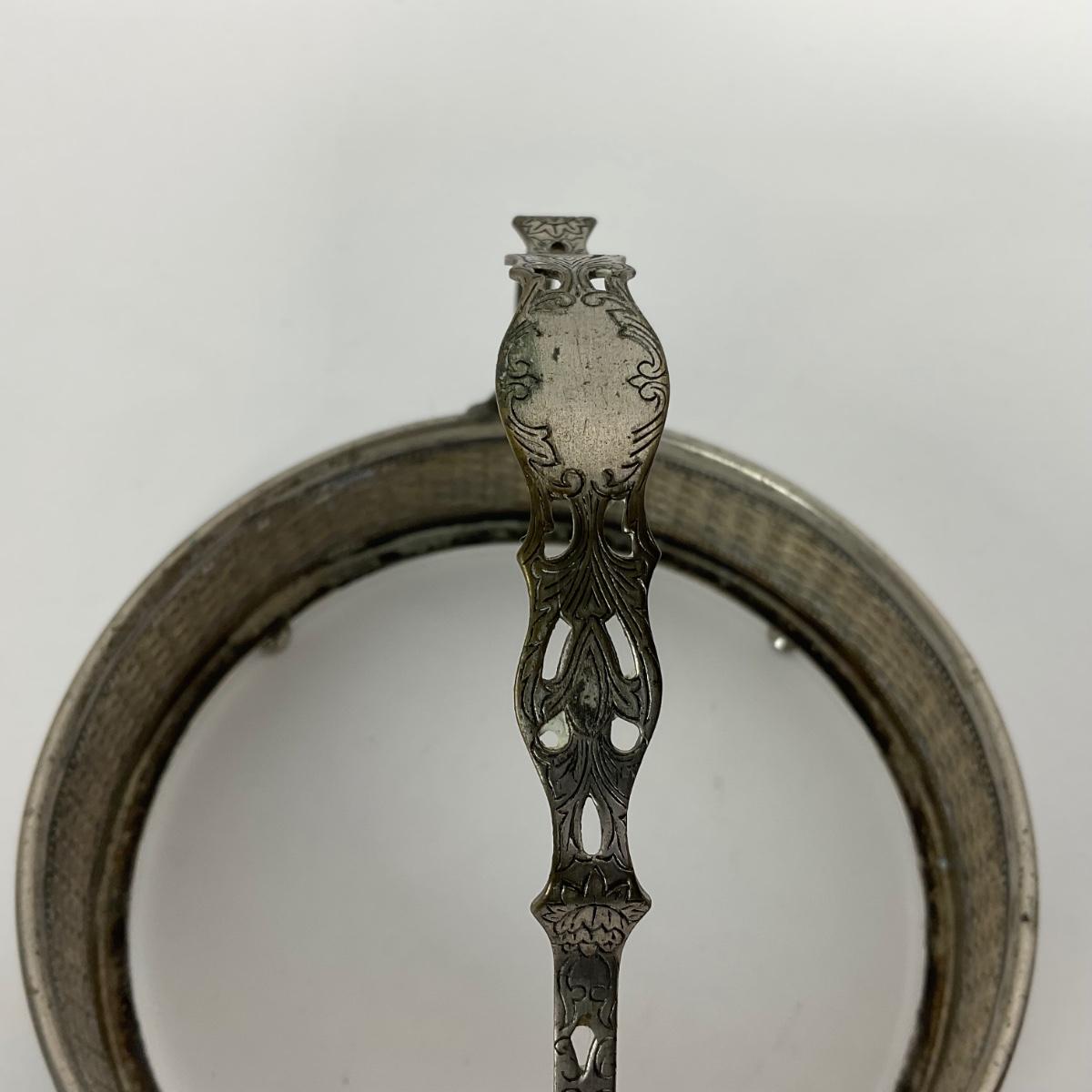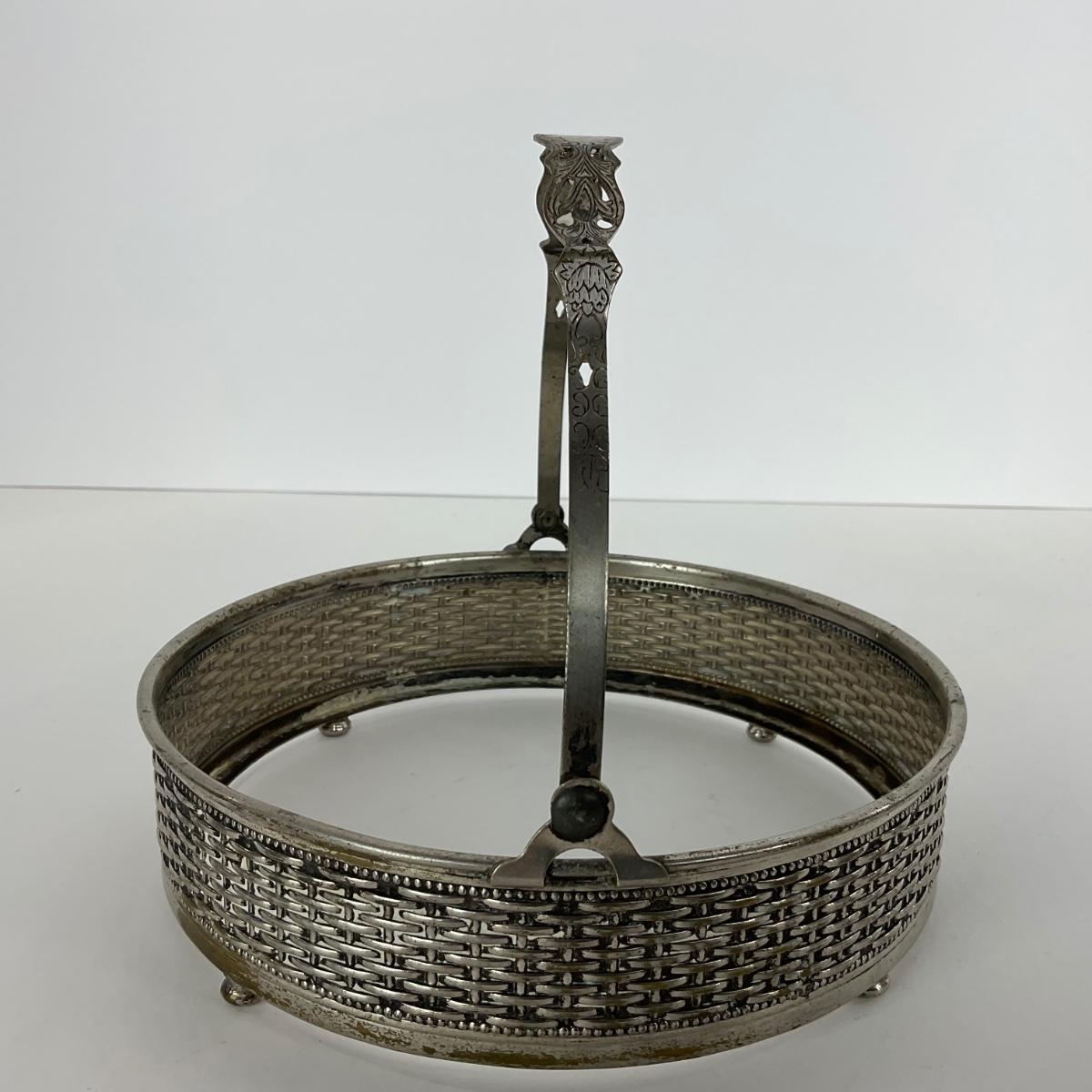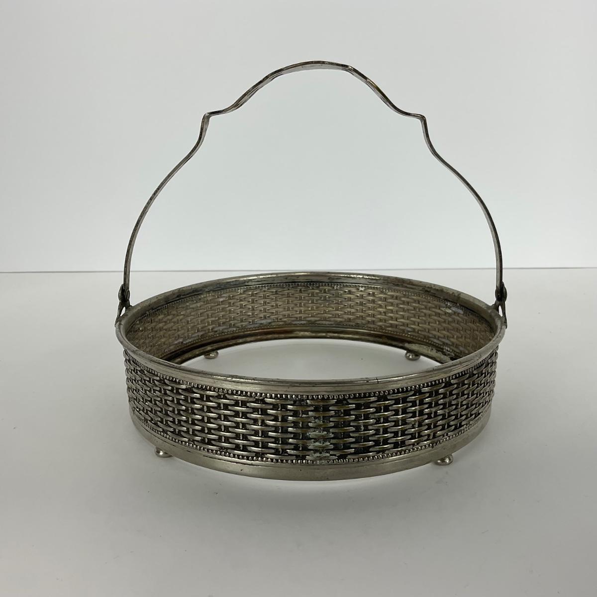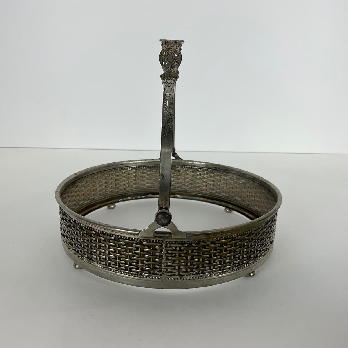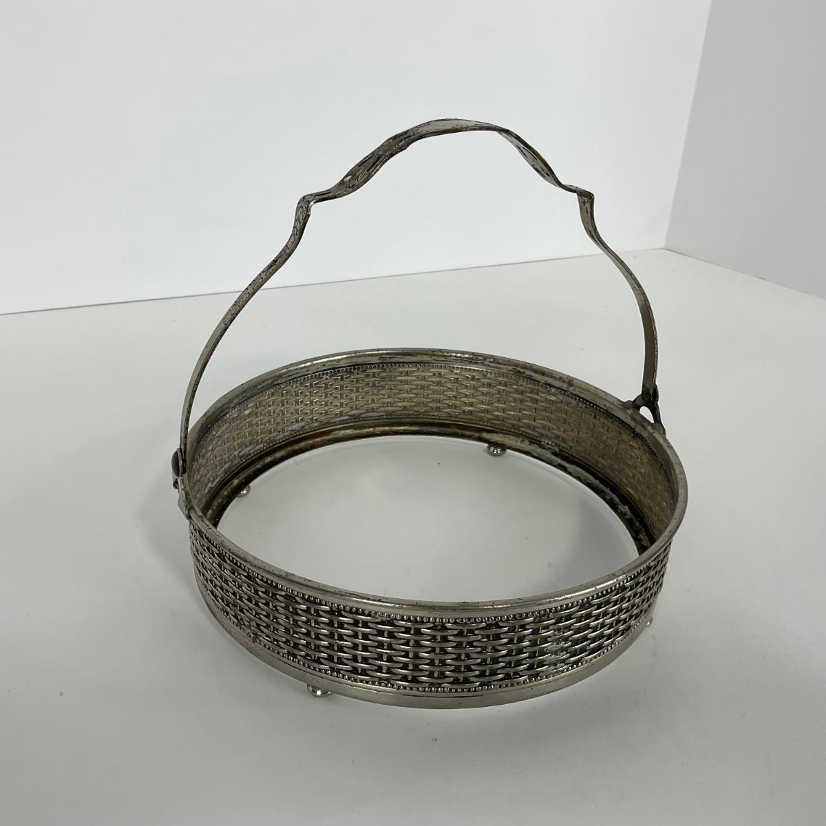 -67- GLASSWARE | Divided Clear Glass Dish With Metal Holder & Handle