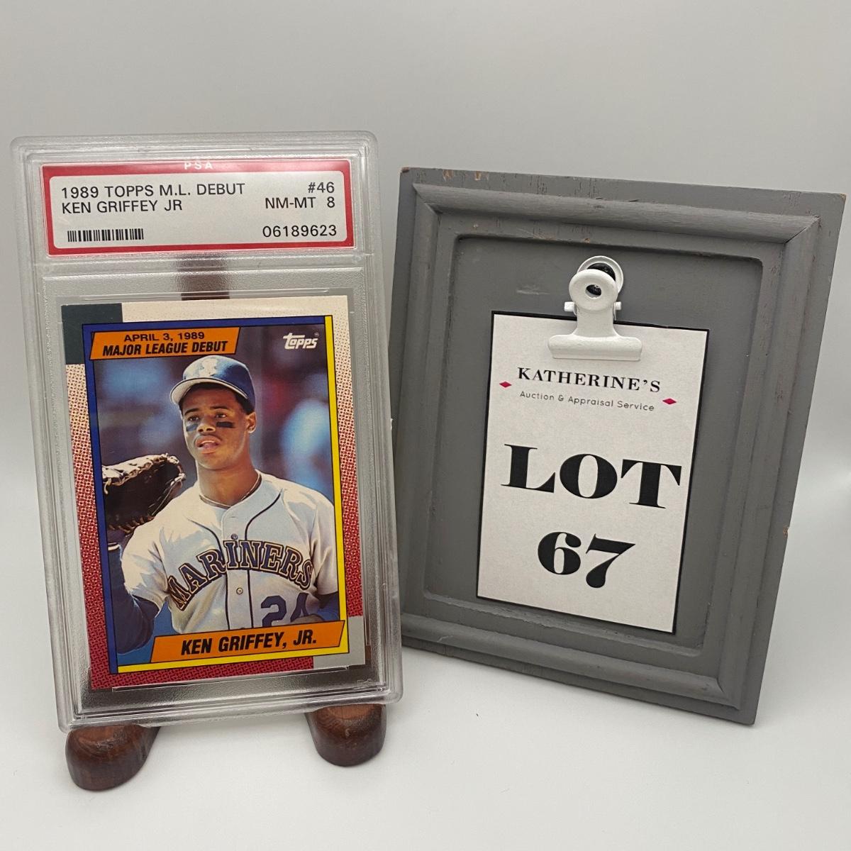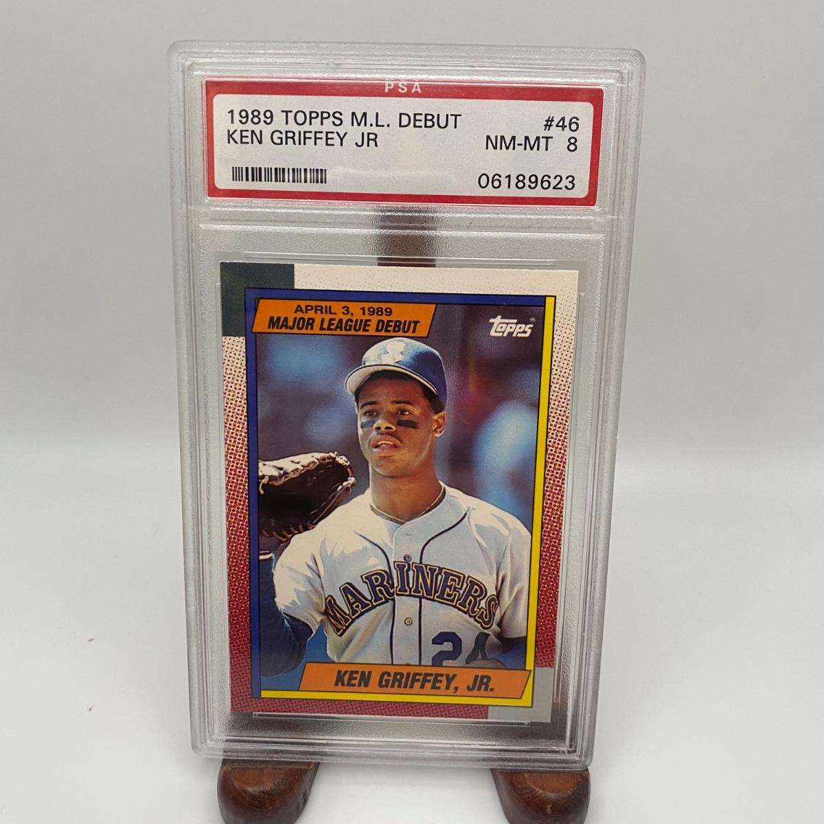 1989 Topps M.L. Debut Graded Ken Griffey Jr. nothing much-MT 8 card. Please see photos for details and condition. ::: Shipping is available on this lot. If you require shipping you must let us know at the close of the auction. We will coordinate with you after the item has been won. Shipping fees will include insurance up to or exceeding the value of all items being mailed. If you have any questions regarding this lot please contact the auctioneer either via this website, by direct email or by phone. PICK UP TIMES and other important information can be found in the TERMS and DESCRIPTION of the auction. Please take a look for pertinent information. Thanks!