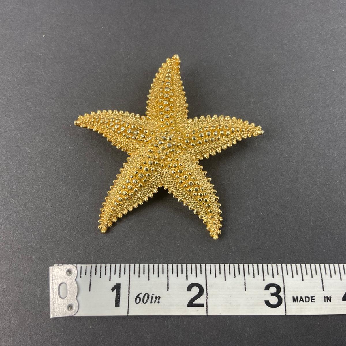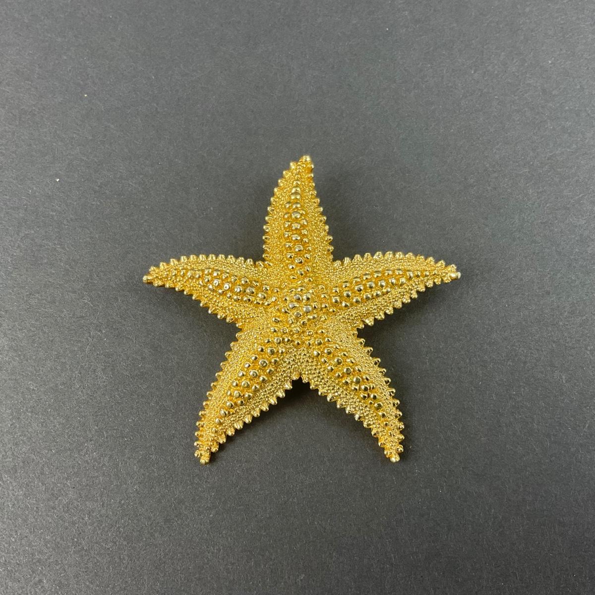 -67- MONET | Textured Gold Tone Starfish Brooch | Marked