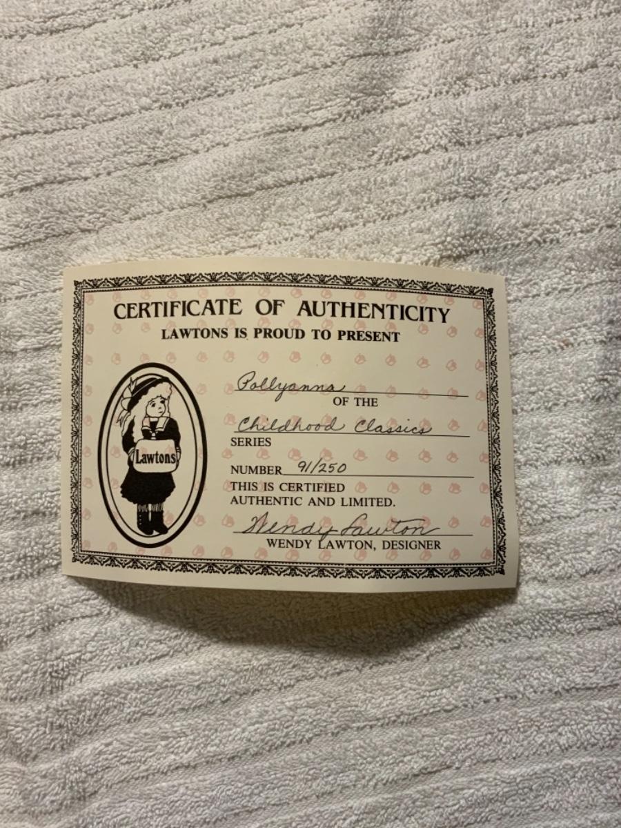 Certificate of Authenticity - Pollyanna Limited Edition 91/250