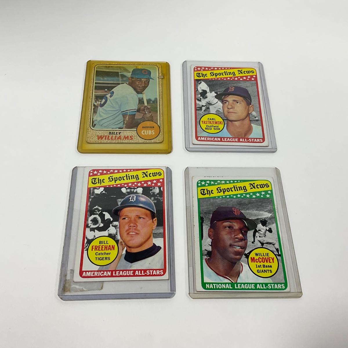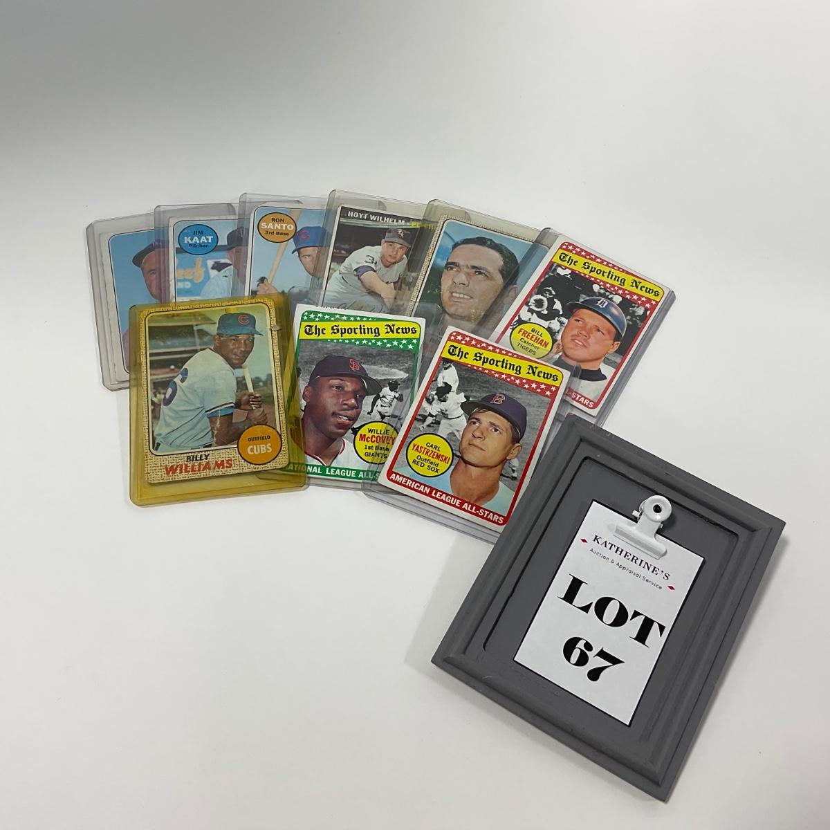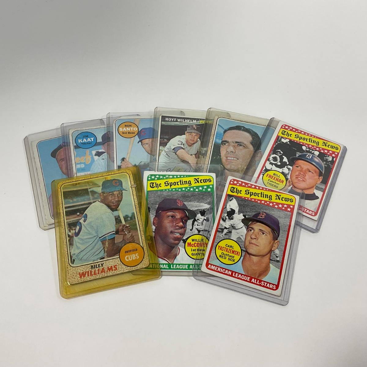 Nine vintage 1969 Topps baseball all stars cards in plastic sleeves. Please see photos for details and condition. ::: Shipping is available on this lot. If you require shipping you must let us know at the close of the auction. We will coordinate with you after the item has been won. Shipping fees will include insurance up to or exceeding the value of all items being mailed. If you have any questions regarding this lot please contact the auctioneer either via this website, by direct email or by phone. PICK UP TIMES and other important information can be found in the TERMS and DESCRIPTION of the auction. Please take a look for pertinent information. Thanks!
