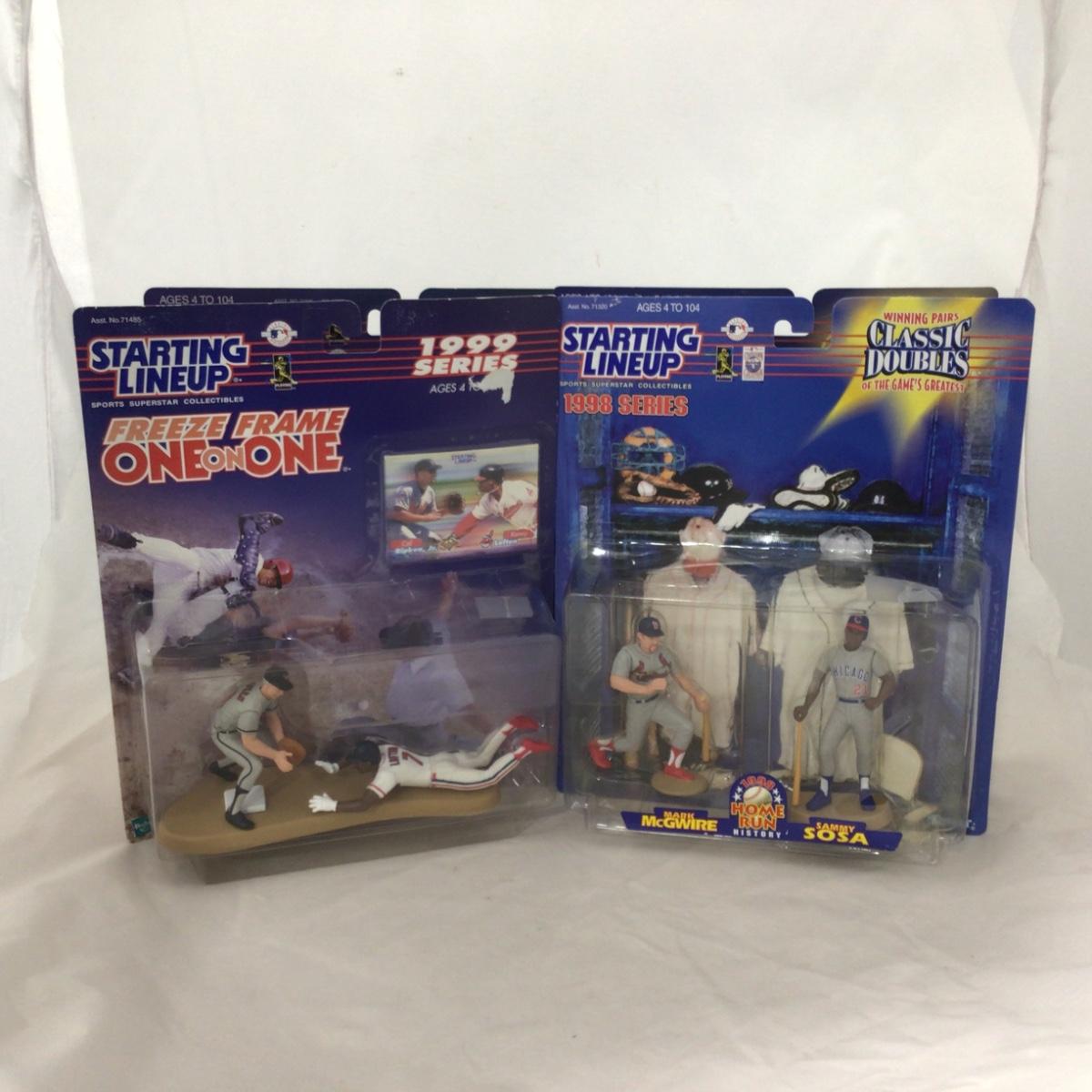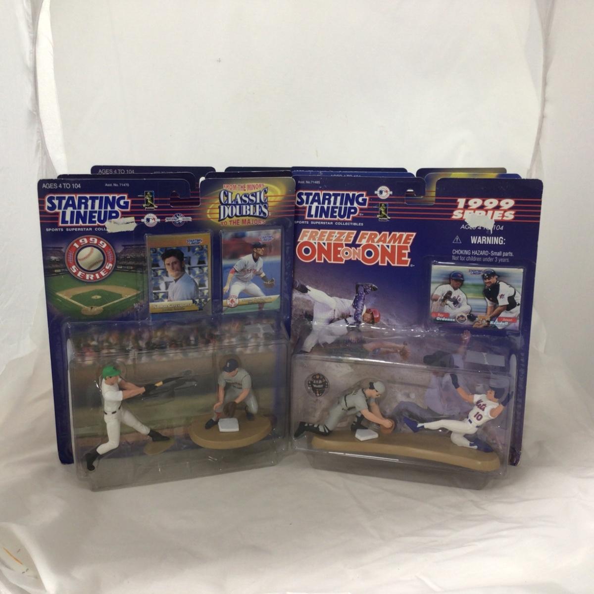 Six classic doubles baseball starting lineup figures. Please see photos for details and condition. ::: Shipping is available on this lot. If you require shipping you must let us know at the close of the auction. We will coordinate with you after the item has been won. Shipping fees will include insurance up to or exceeding the value of all items being mailed. If you have any questions regarding this lot please contact the auctioneer either via this website, by direct email or by phone. PICK UP TIMES and other important information can be found in the TERMS and DESCRIPTION of the auction. Please take a look for pertinent information. Thanks!