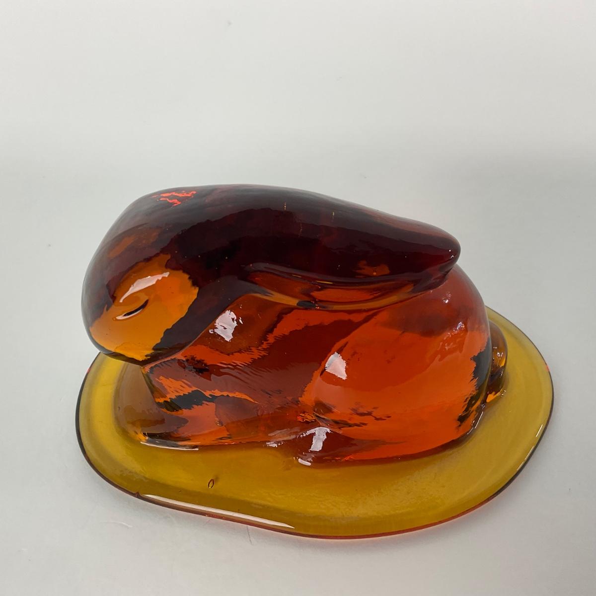 -67- VIKING | Mid Century Amber Crouching Rabbit