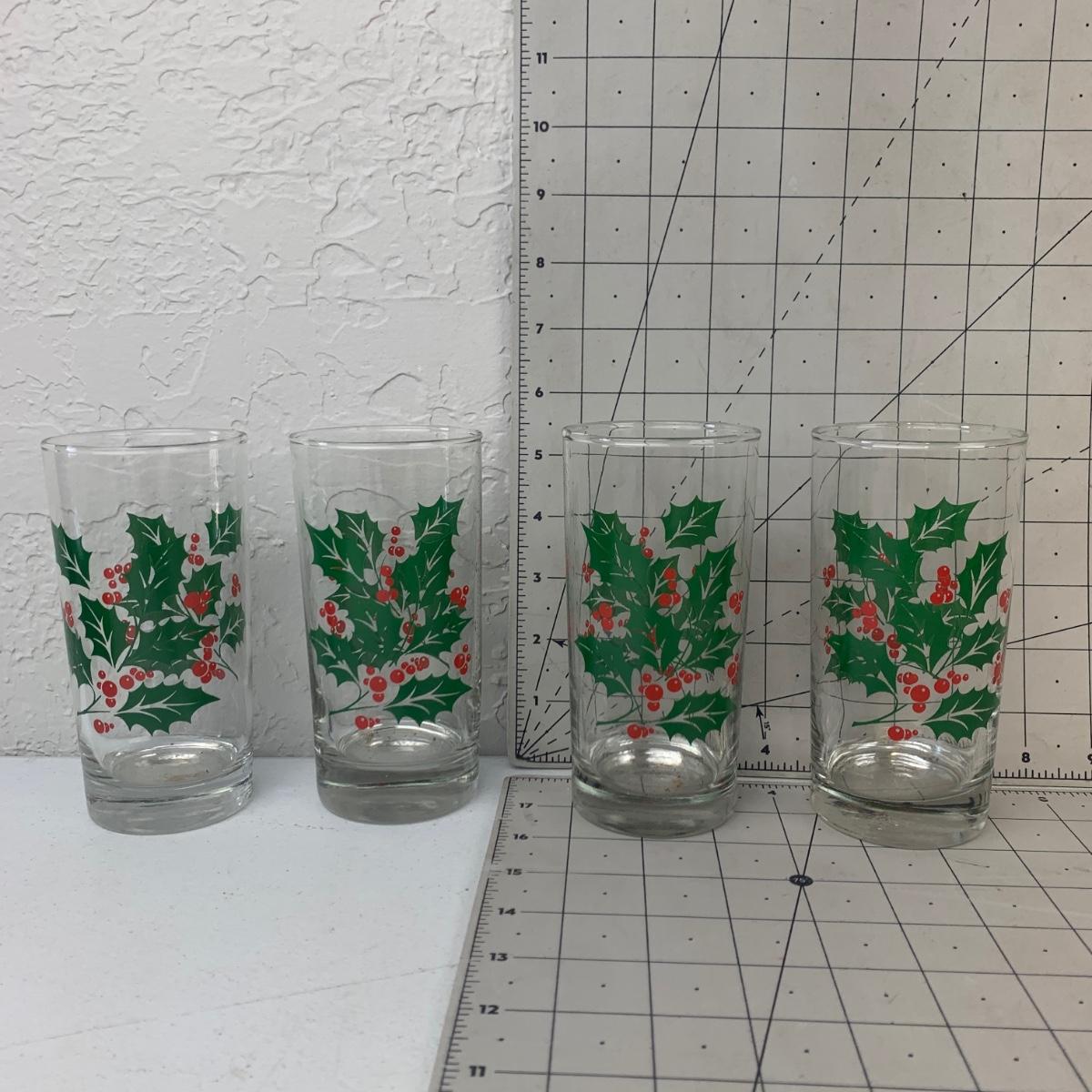 #67 Vintage Indiana Glass Holly & Berries Glasses