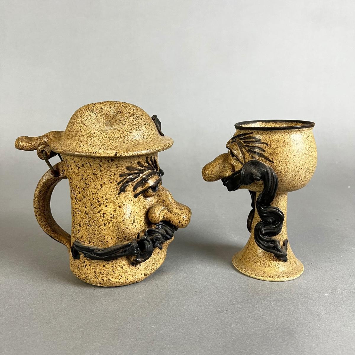 670 Vintage Handcrafted Stoneware Face Cups by Jim Kozlowski