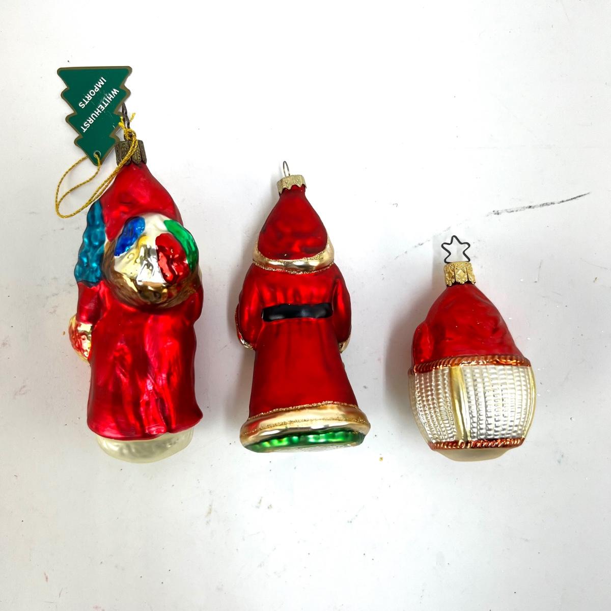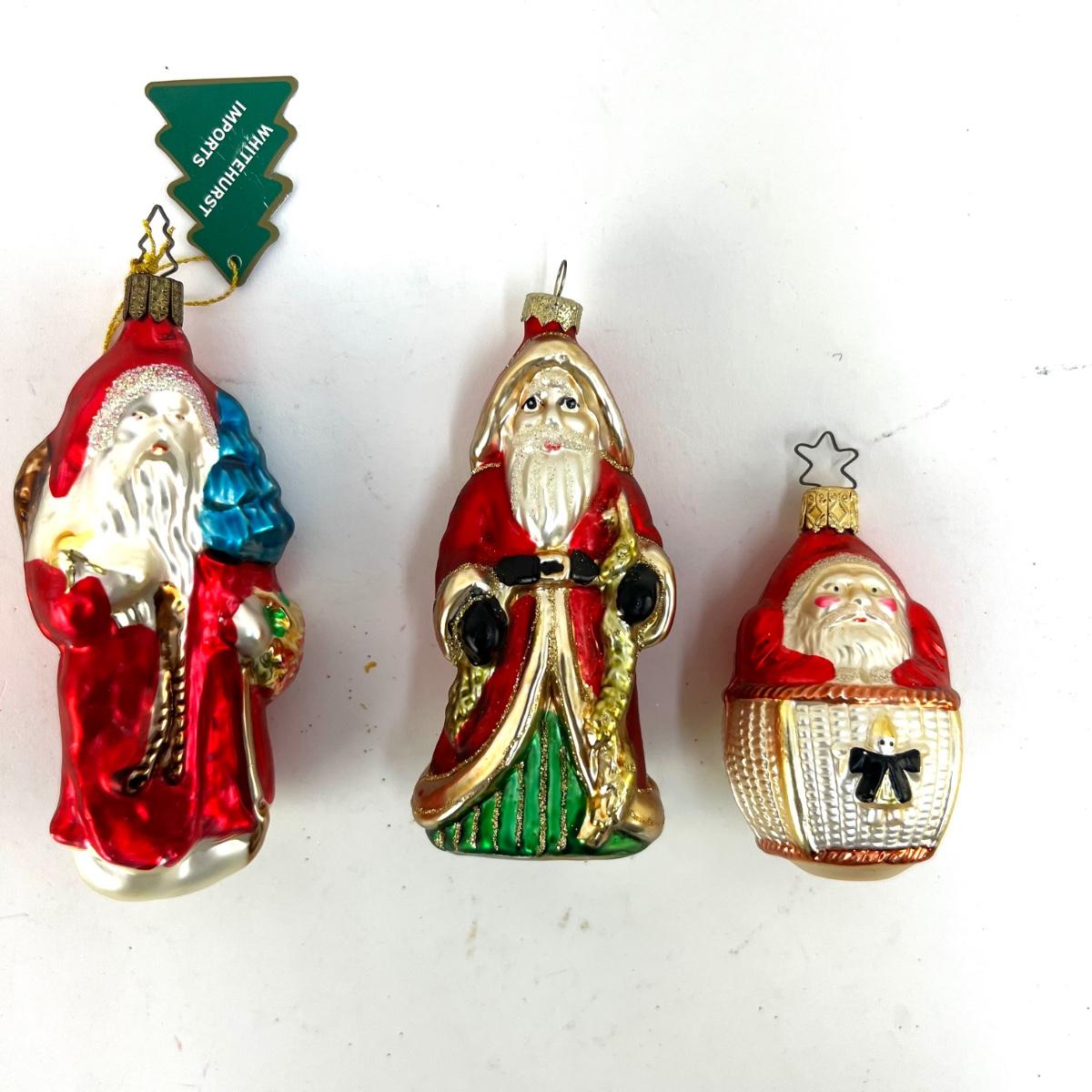 670 Lot of Three Glass Whitehurst Santa Ornaments
