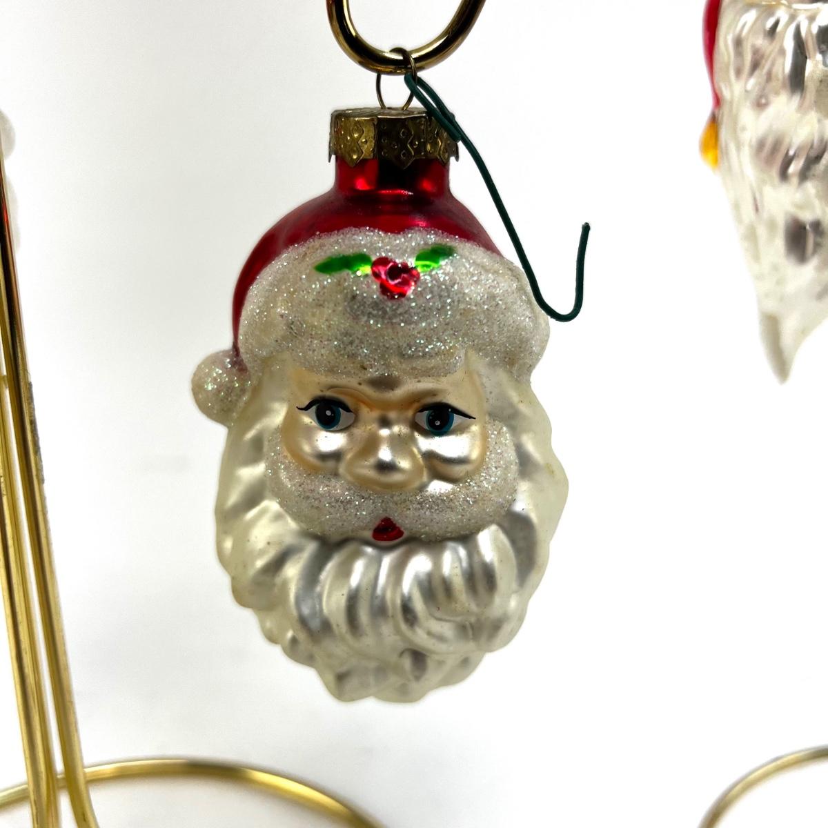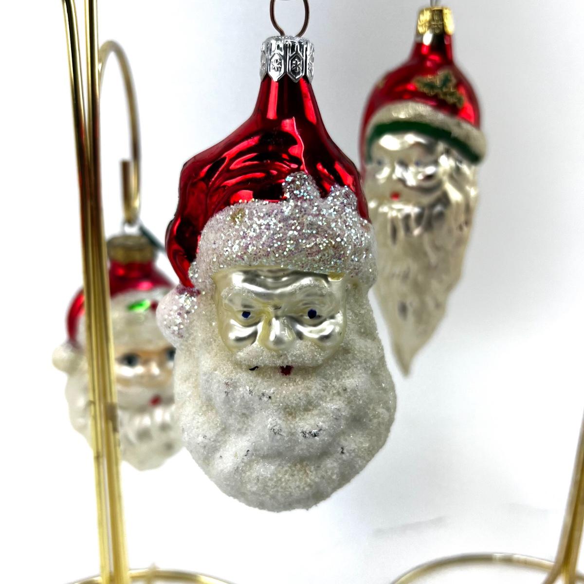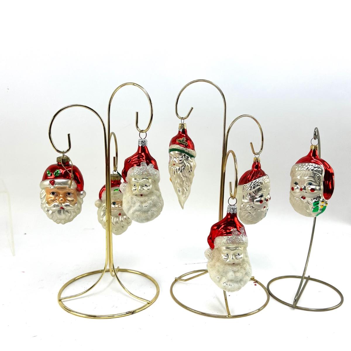672 Lot of Seven Handblown Glass Santa Face Ornaments