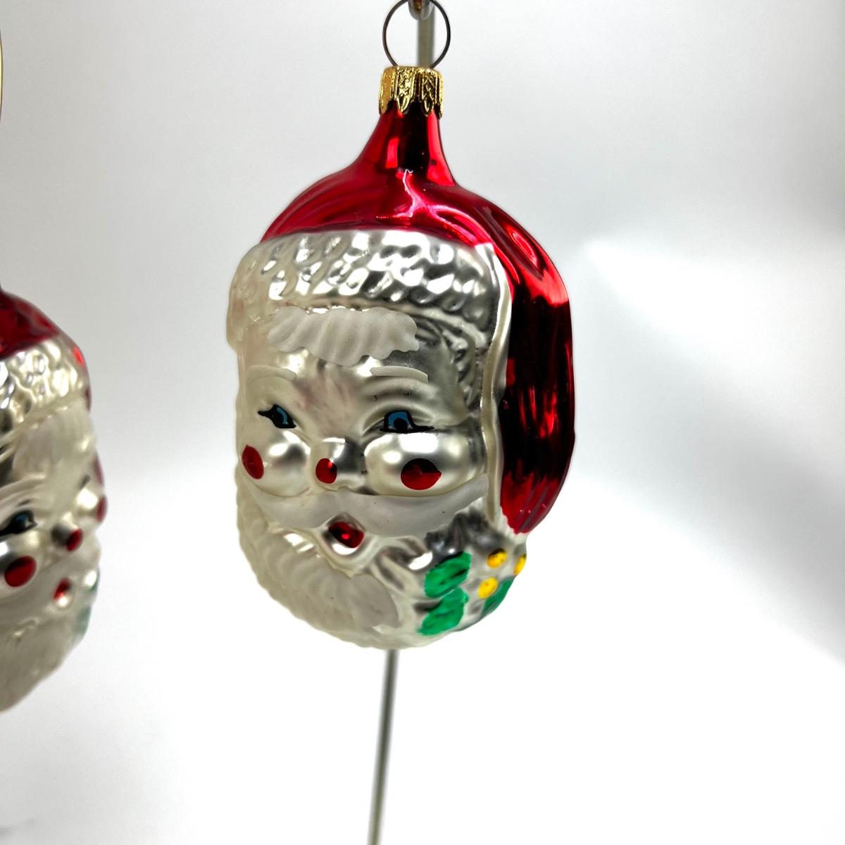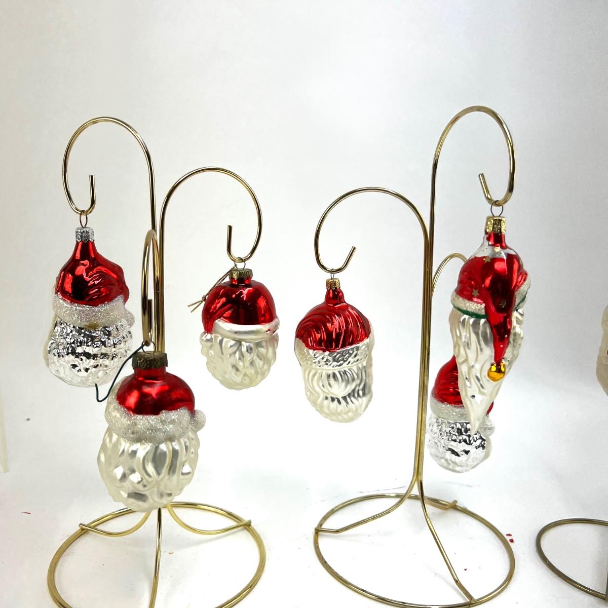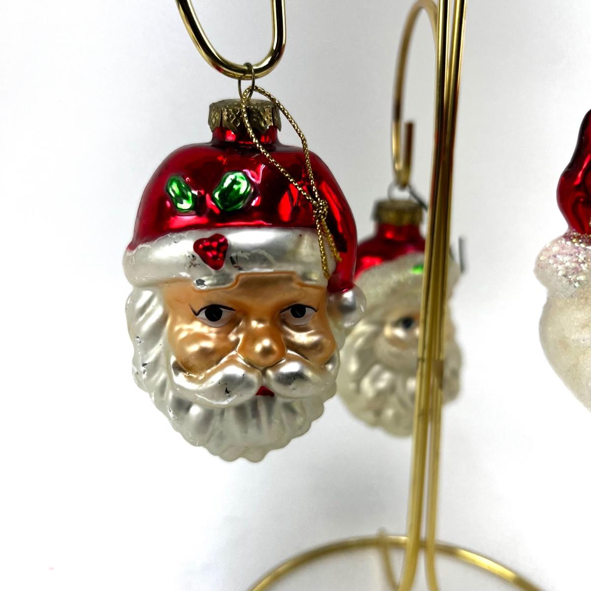 672 Lot of Seven Handblown Glass Santa Face Ornaments