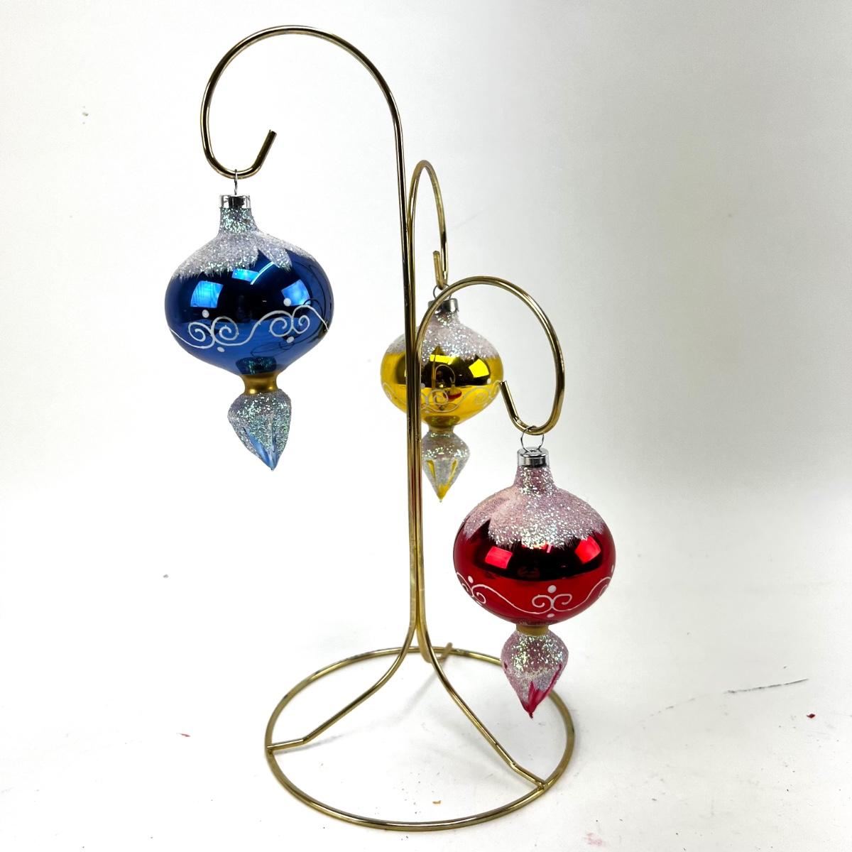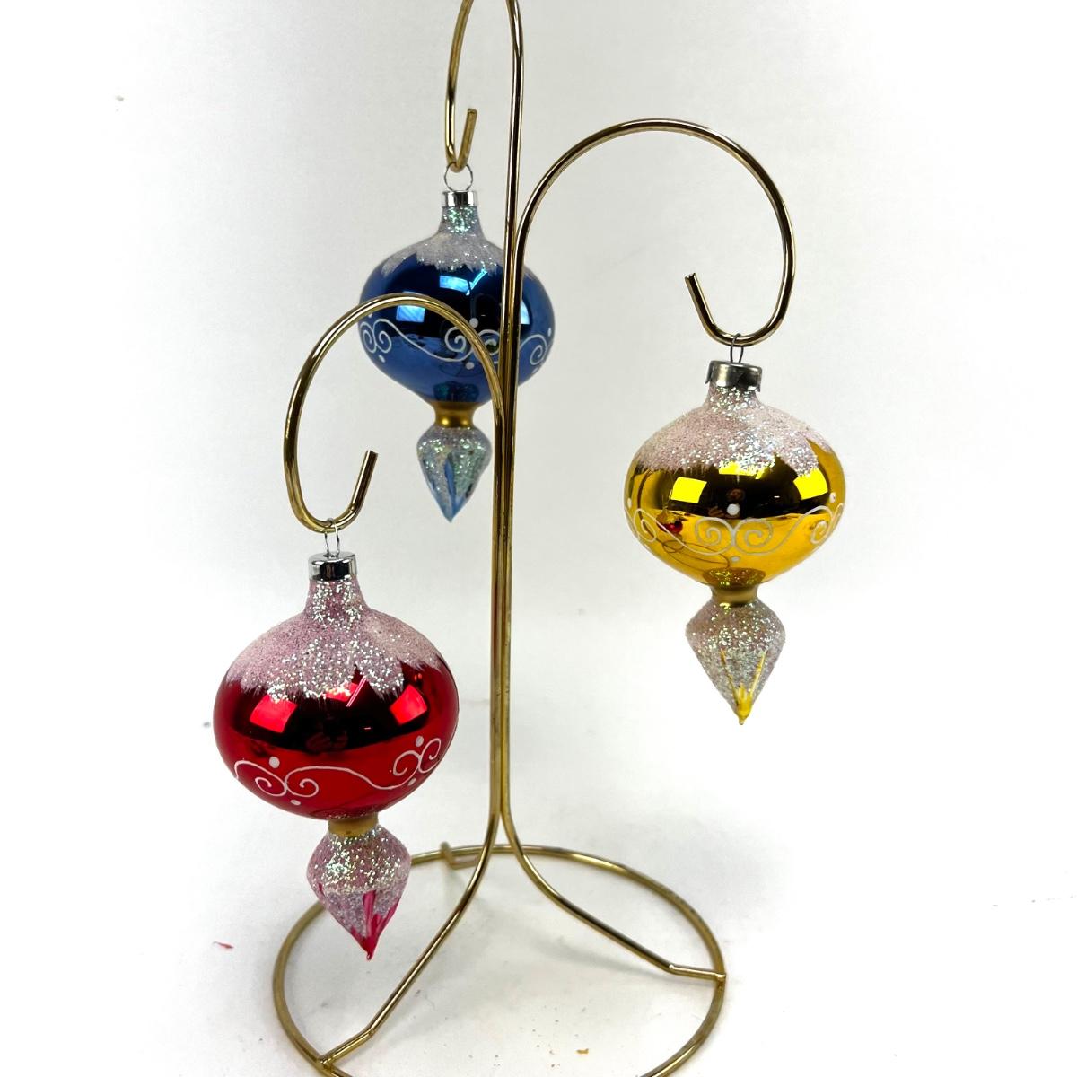 675 Set of Three Blue, Yellow, Red Teardrop Glass Ornaments