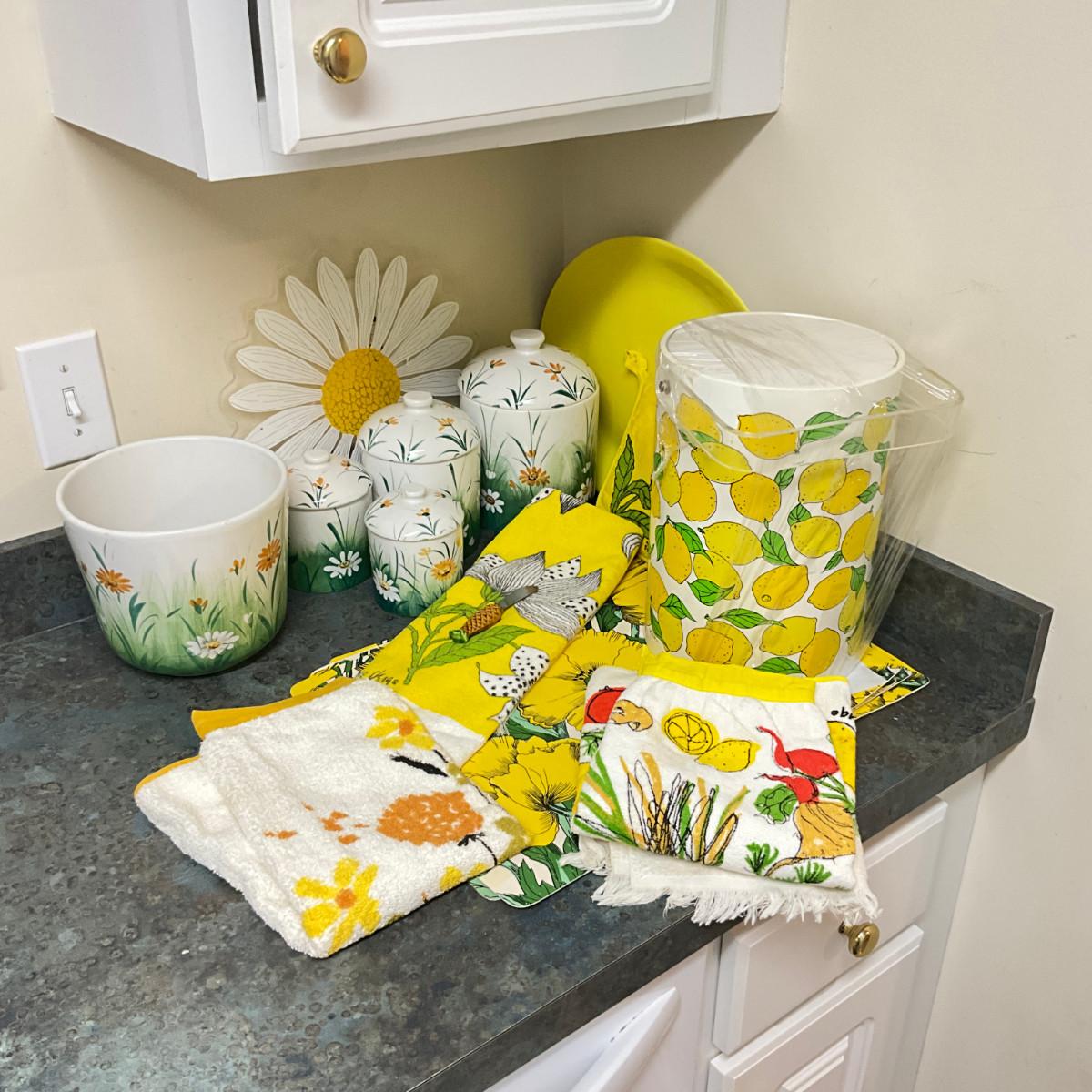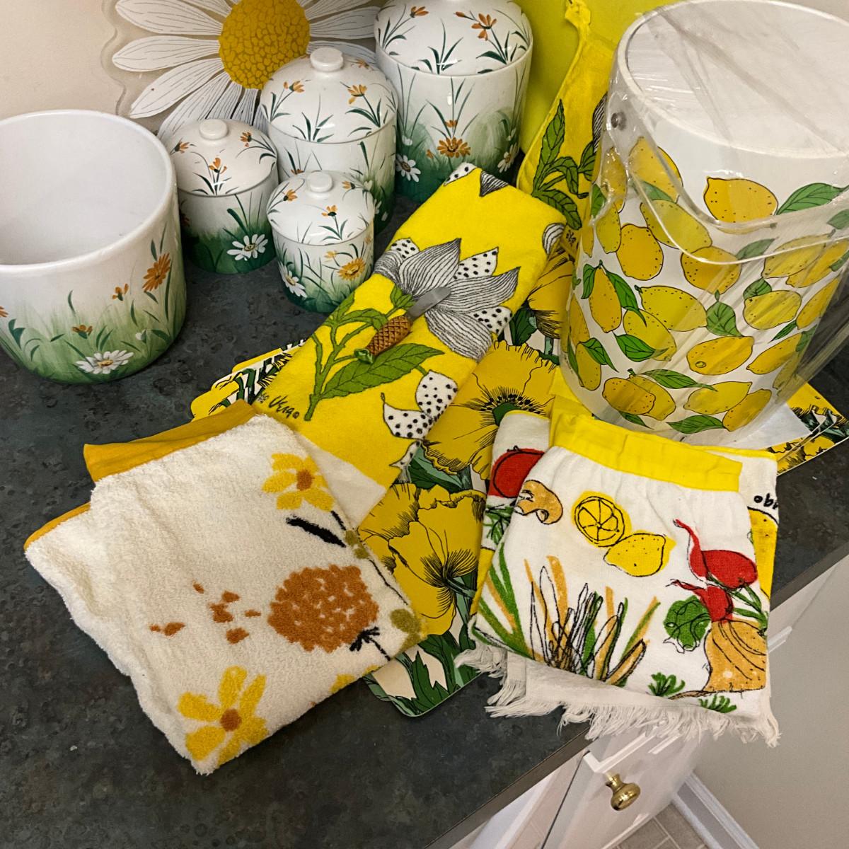 Large Lemon Pitcher, Multi-Hand Towel, 4 Floral Pots With Lids, Glass Flower Plate