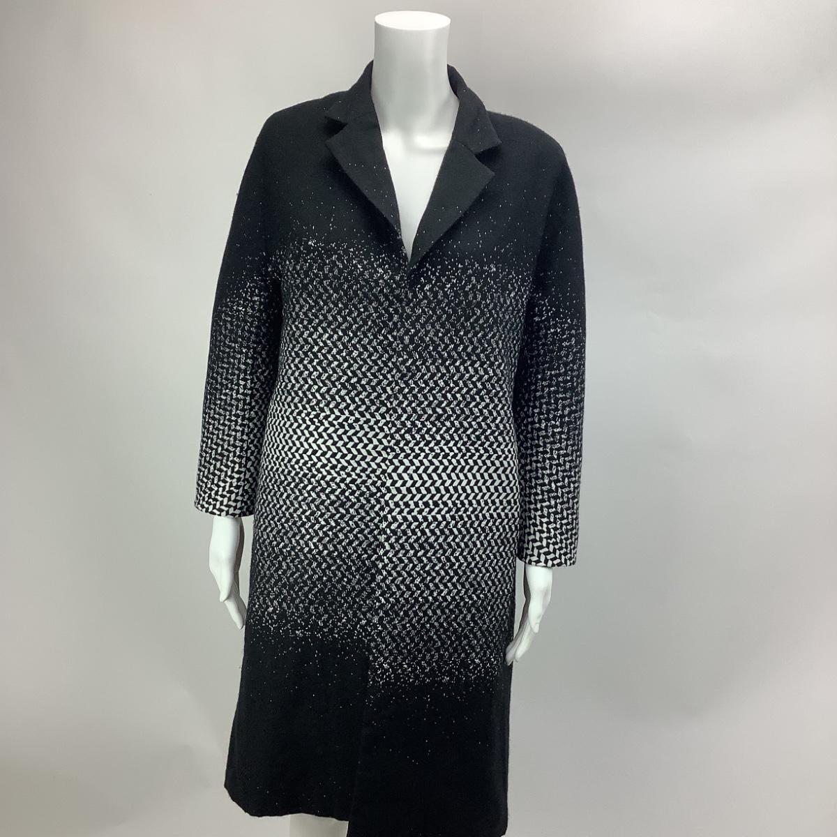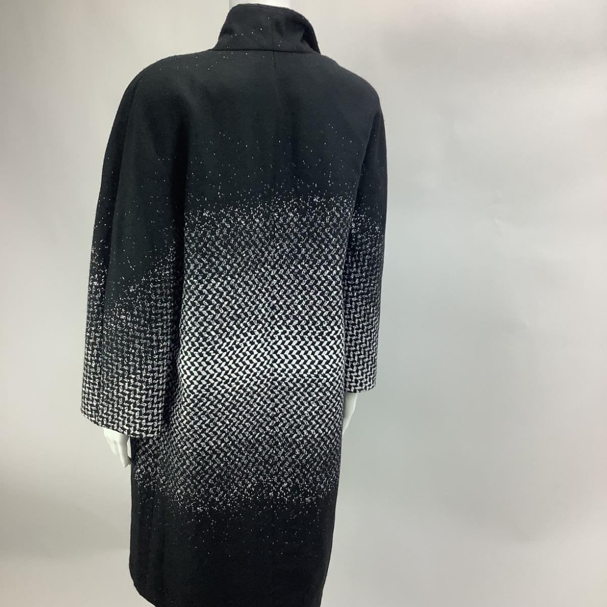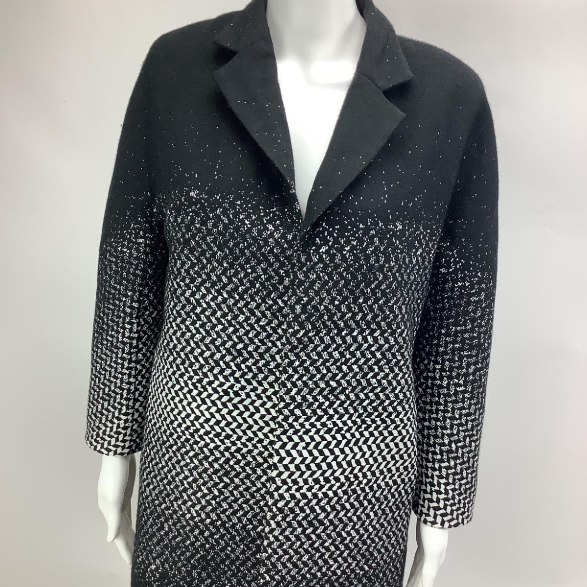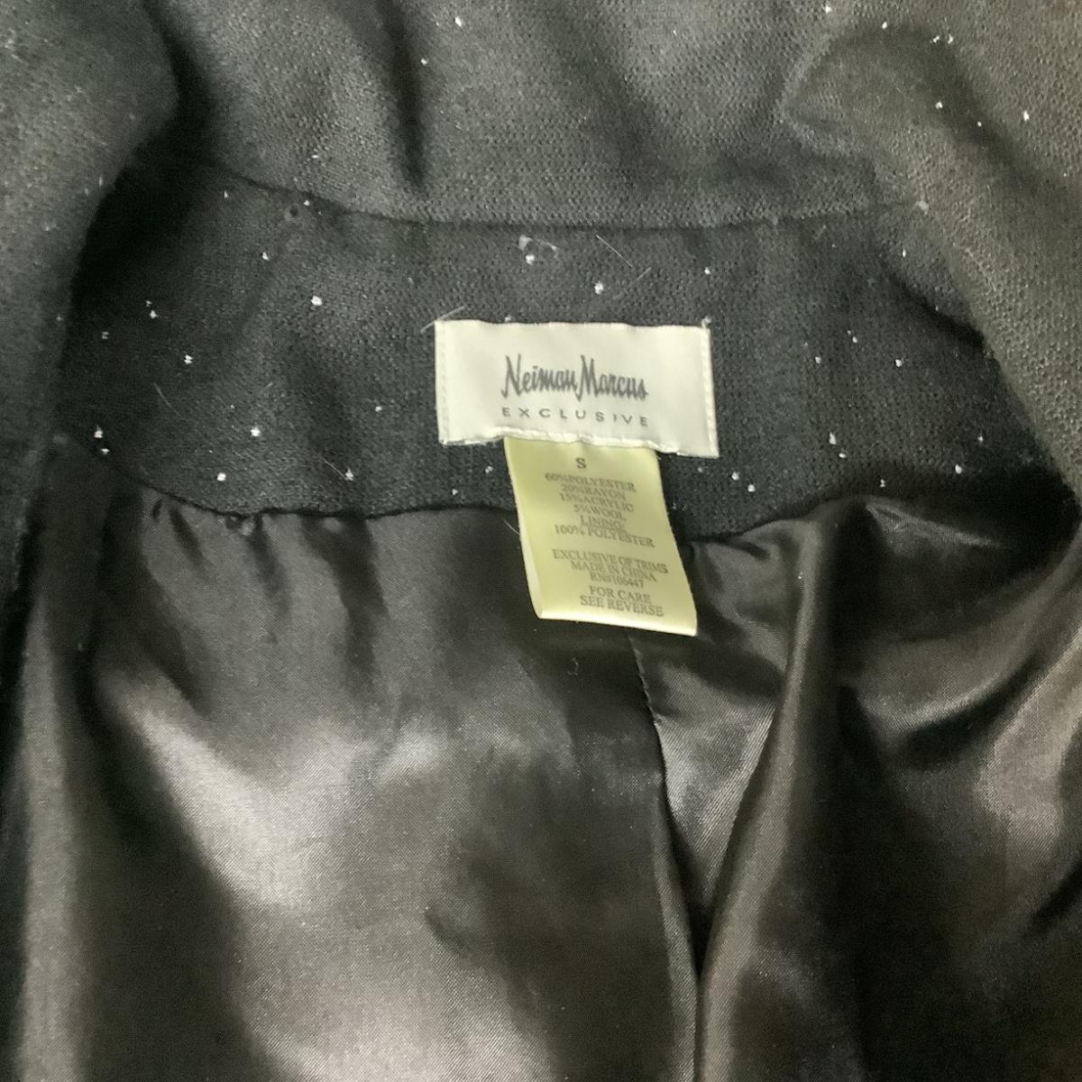 The jacket is size small, open with no closure, measures 20" from armpit to armpit, 37" overall length, 19.5" sleeve length.