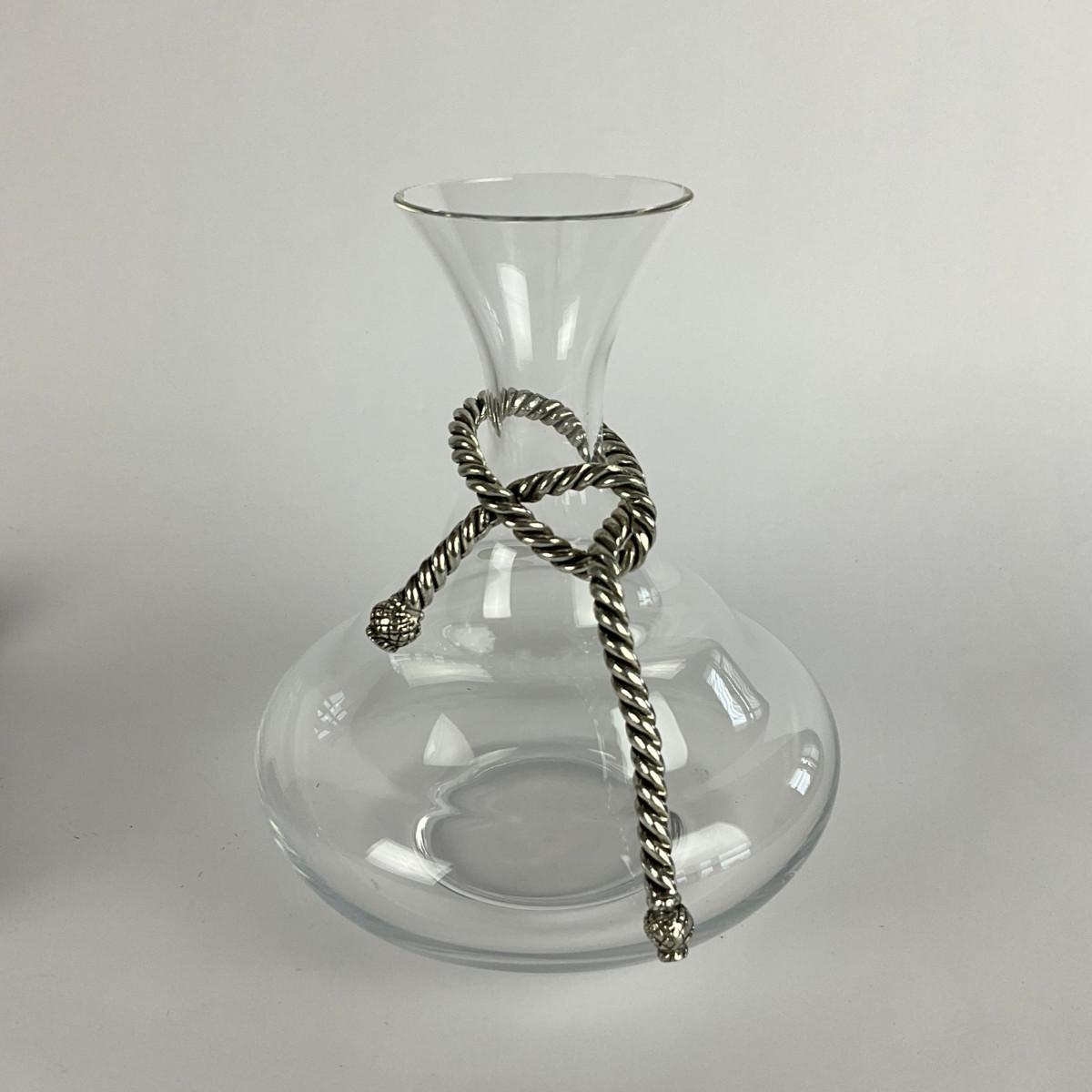 The decanter has an aluminum rope draped around it