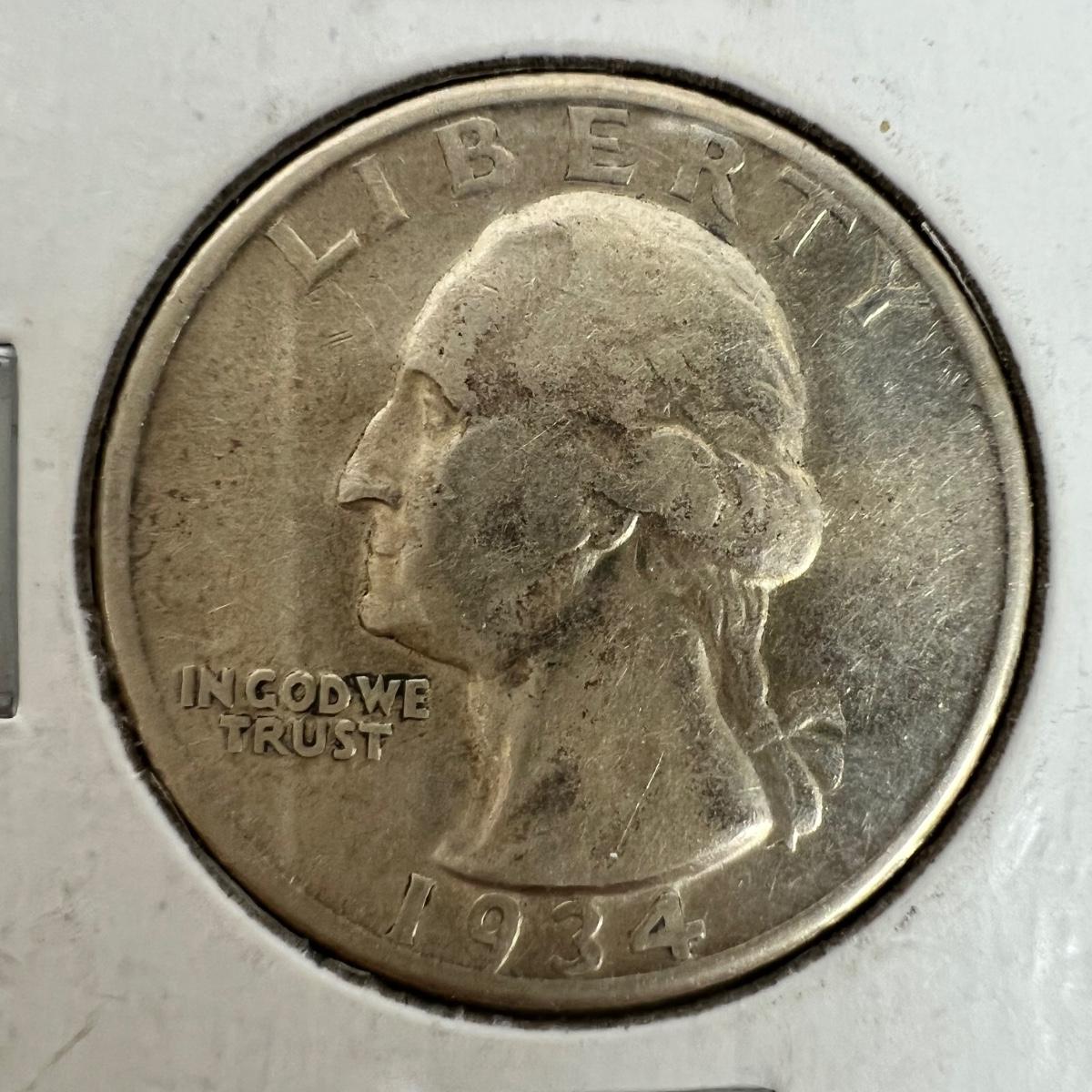 & 1934 Washington Quarter AU-50 w/ Heavy Motto.