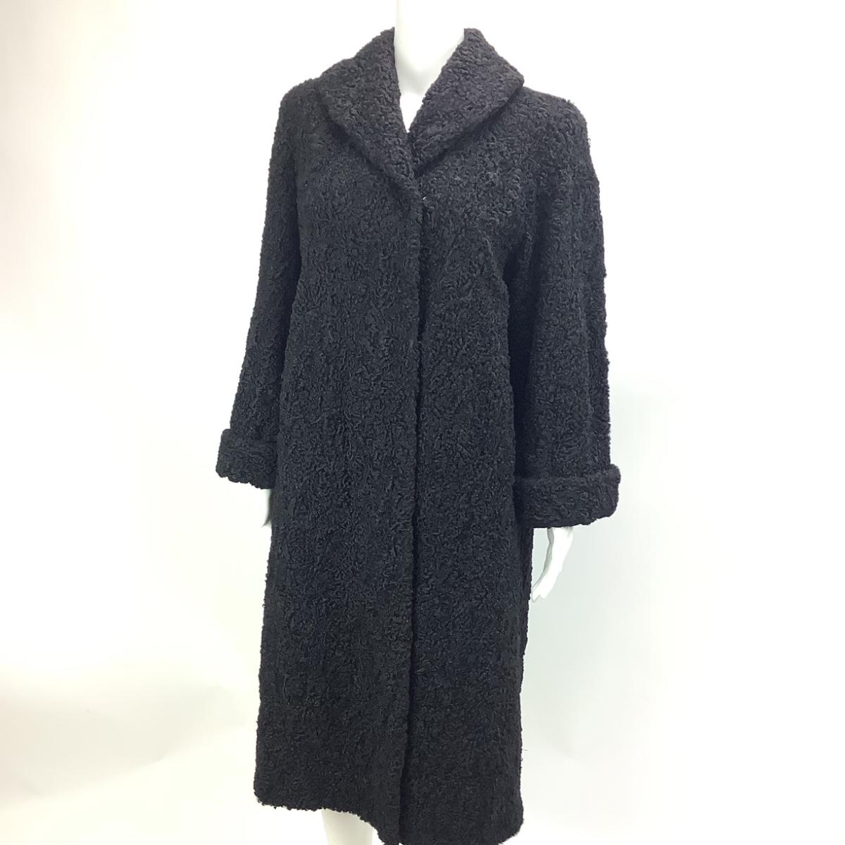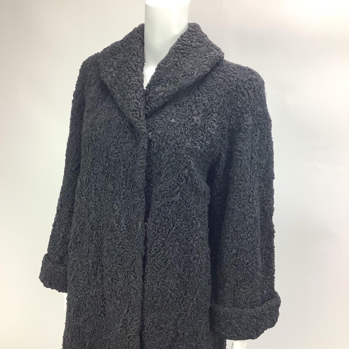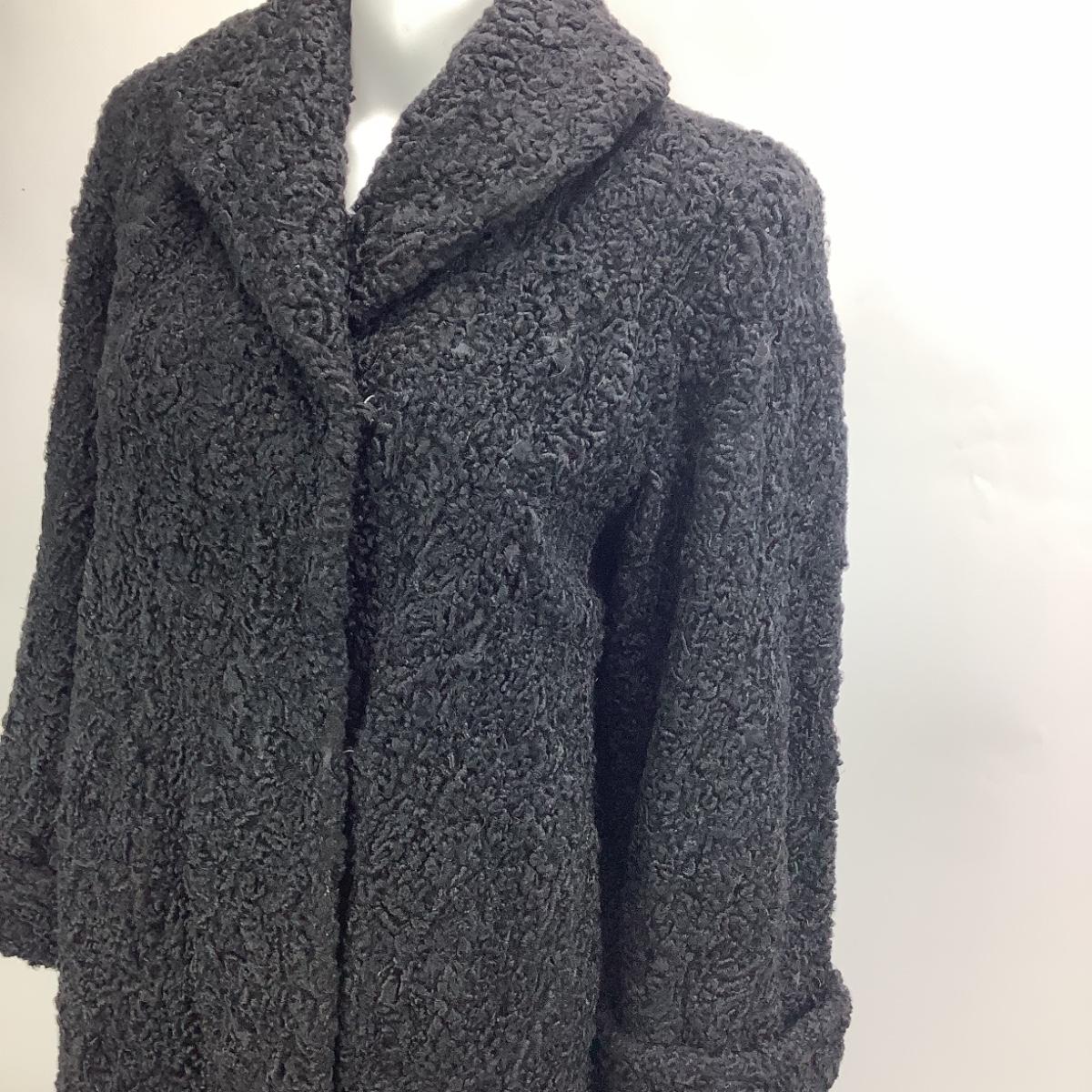 677 Vintage Black Lambs Wool Coat by T. Galistinos