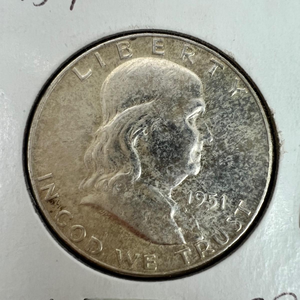 678  1955 Franklin Half Dollar MS-65 w/ Full Bell Lines, Toning & 1951 Franklin Half Dollar