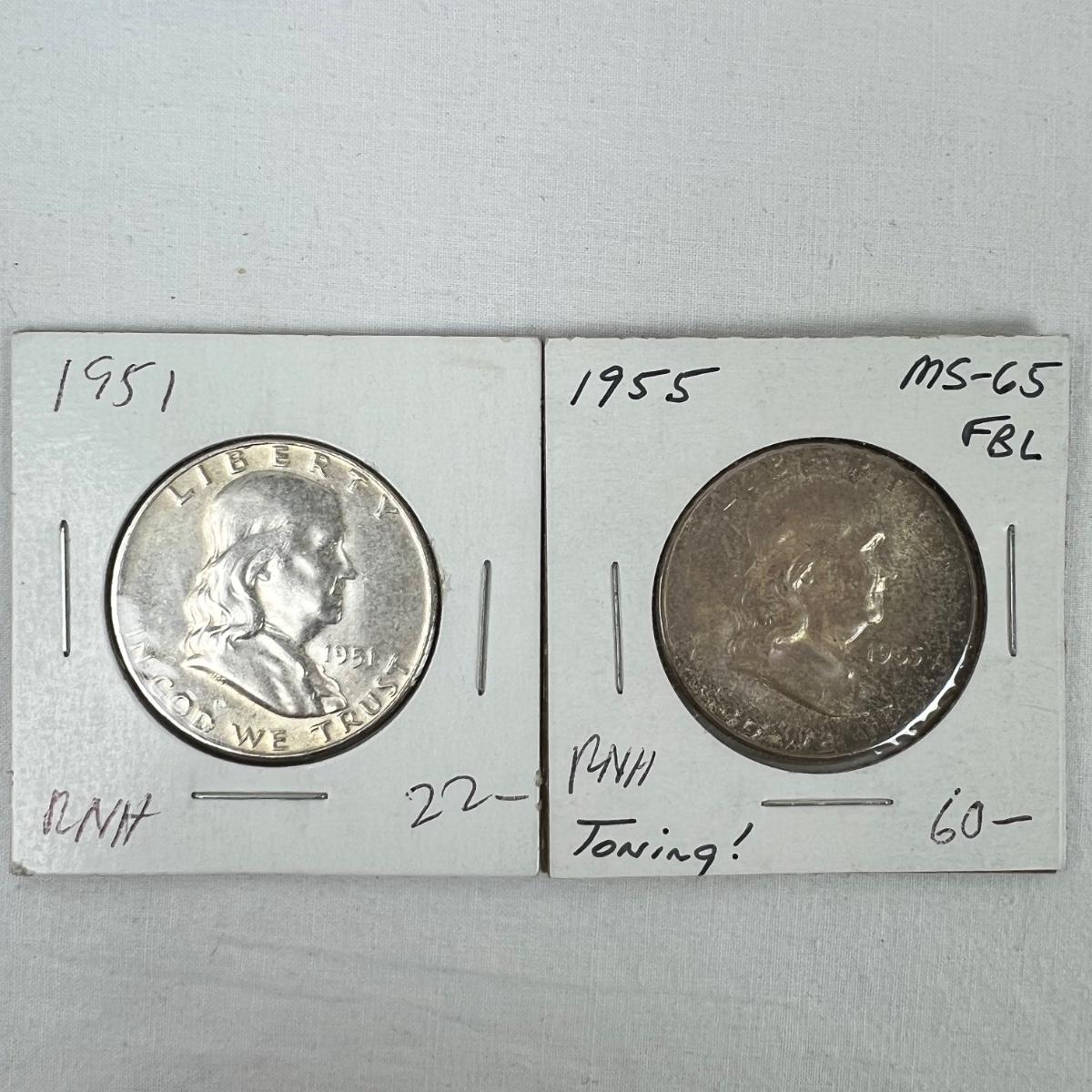 678 1955 Franklin Half Dollar MS-65 w/ Full Bell Lines, Toning & 1951 Franklin Half Dollar