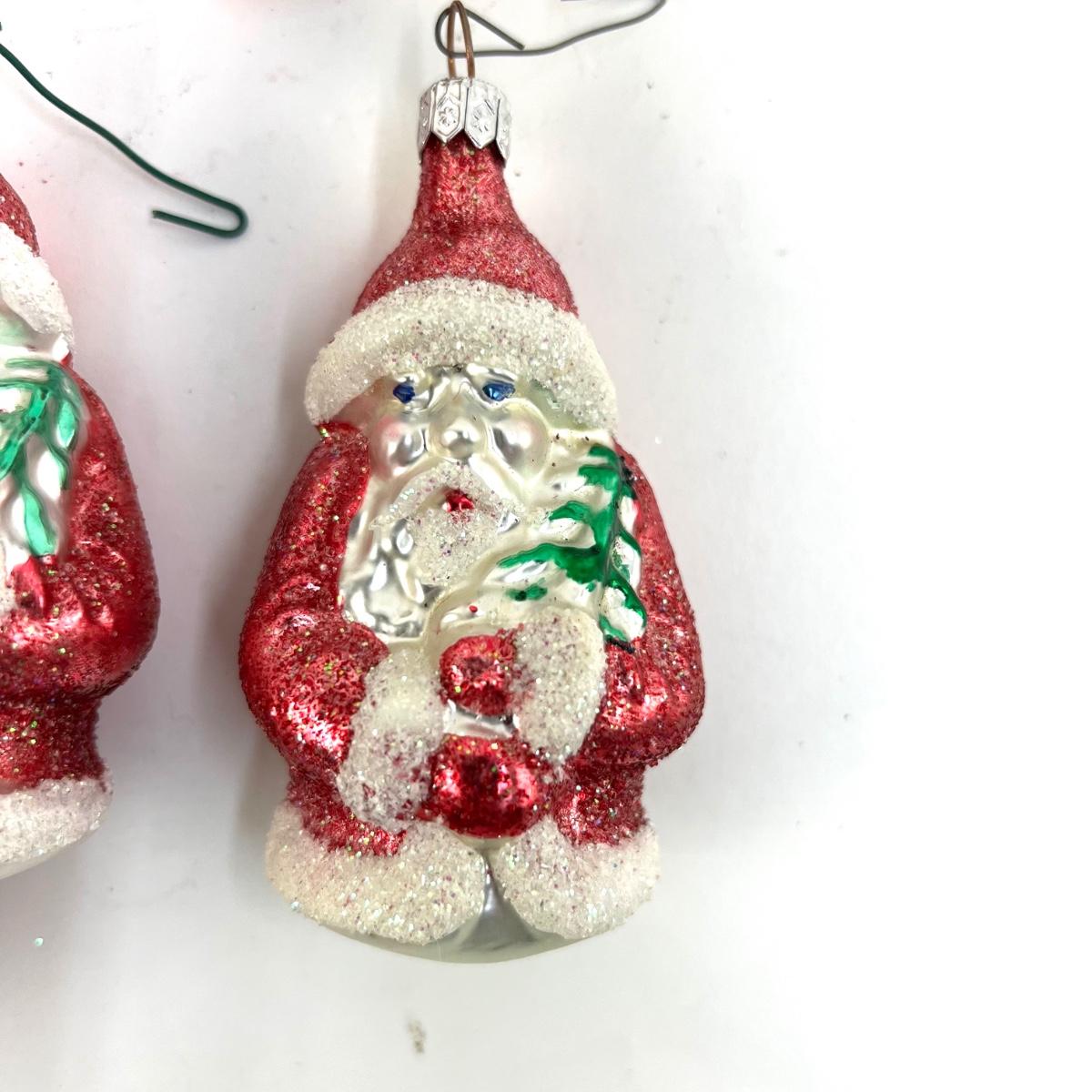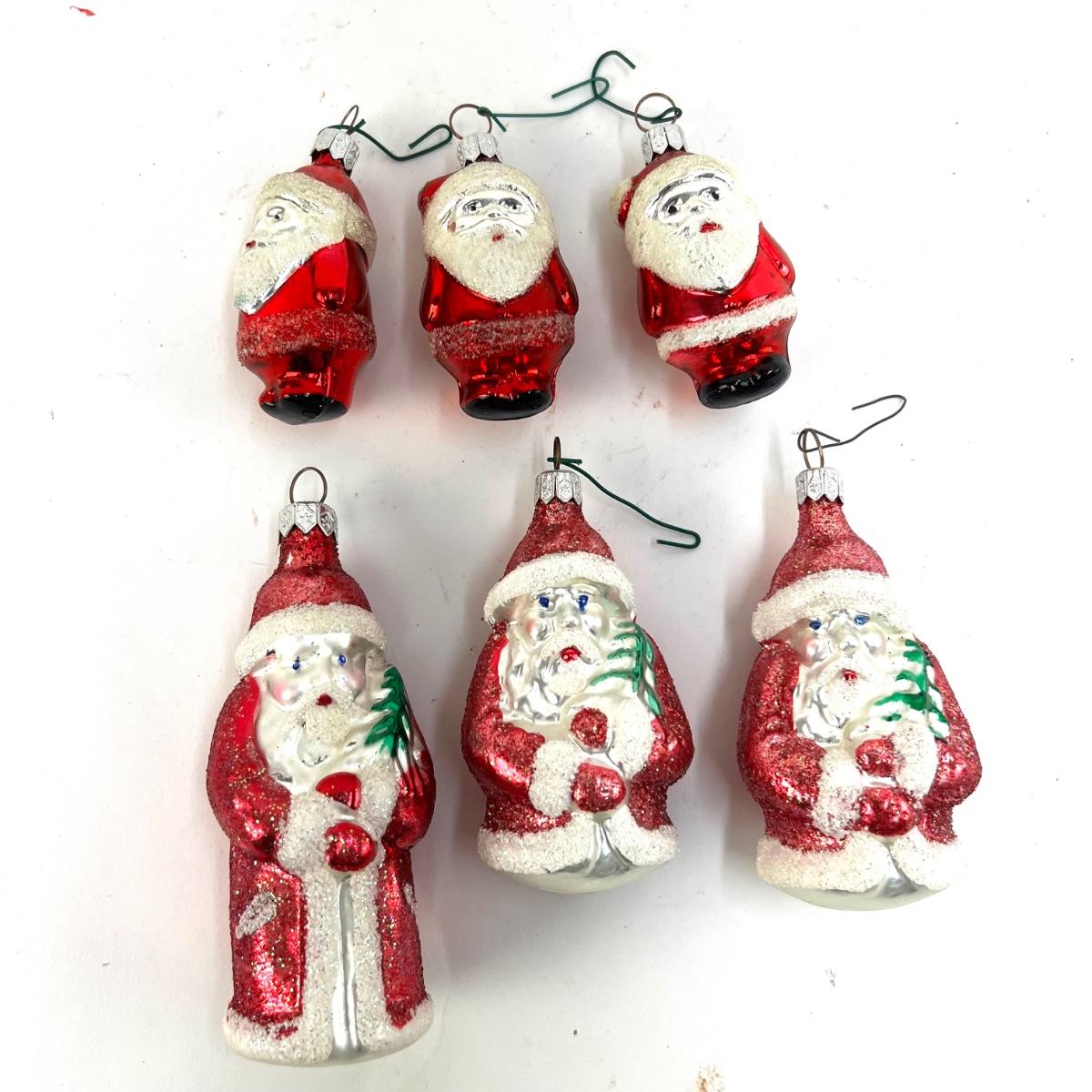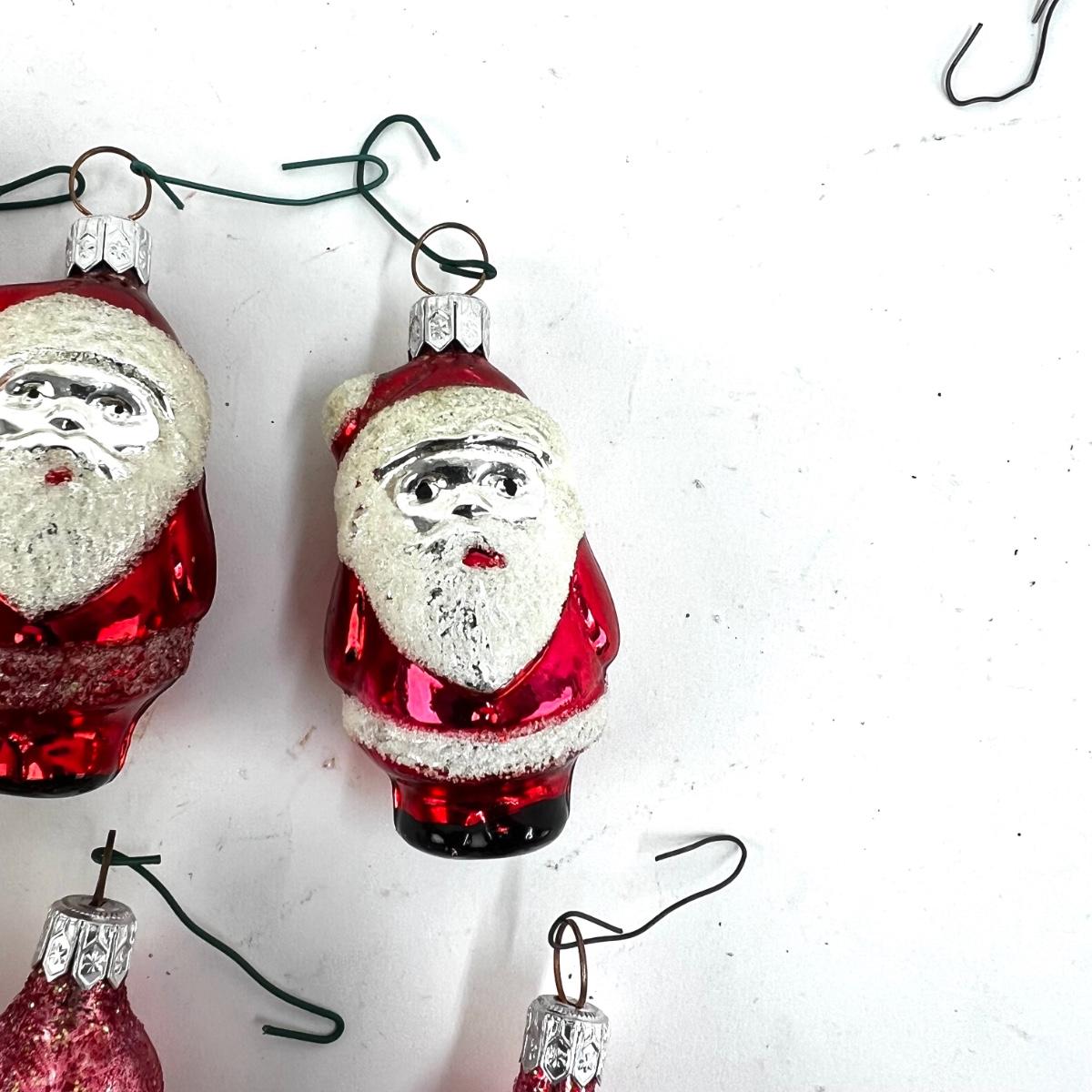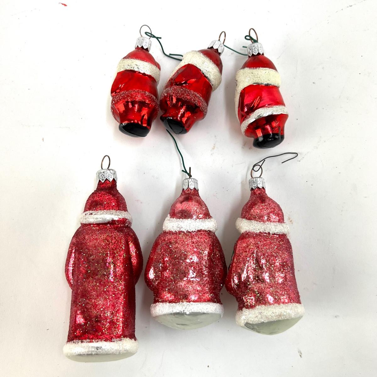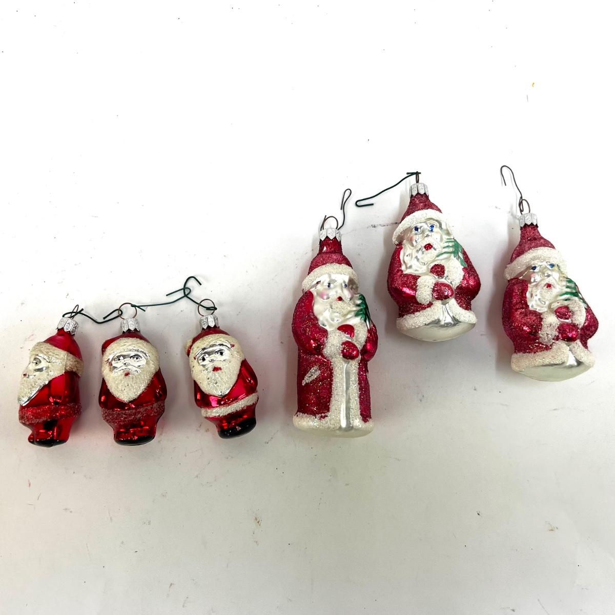 678 Lot of 6 Red and Pink Handblown Glass Santa Ornaments