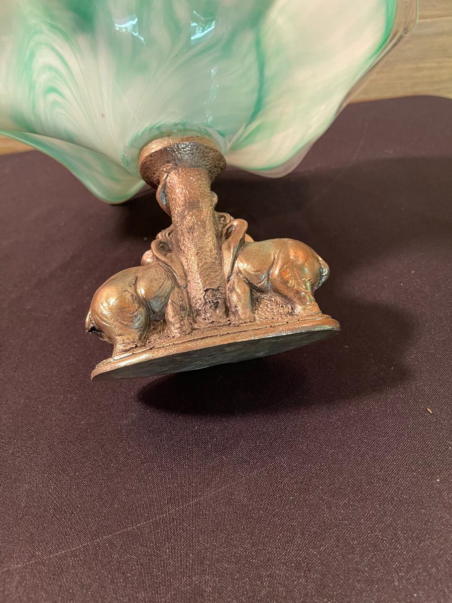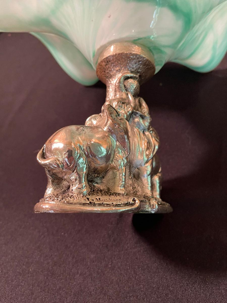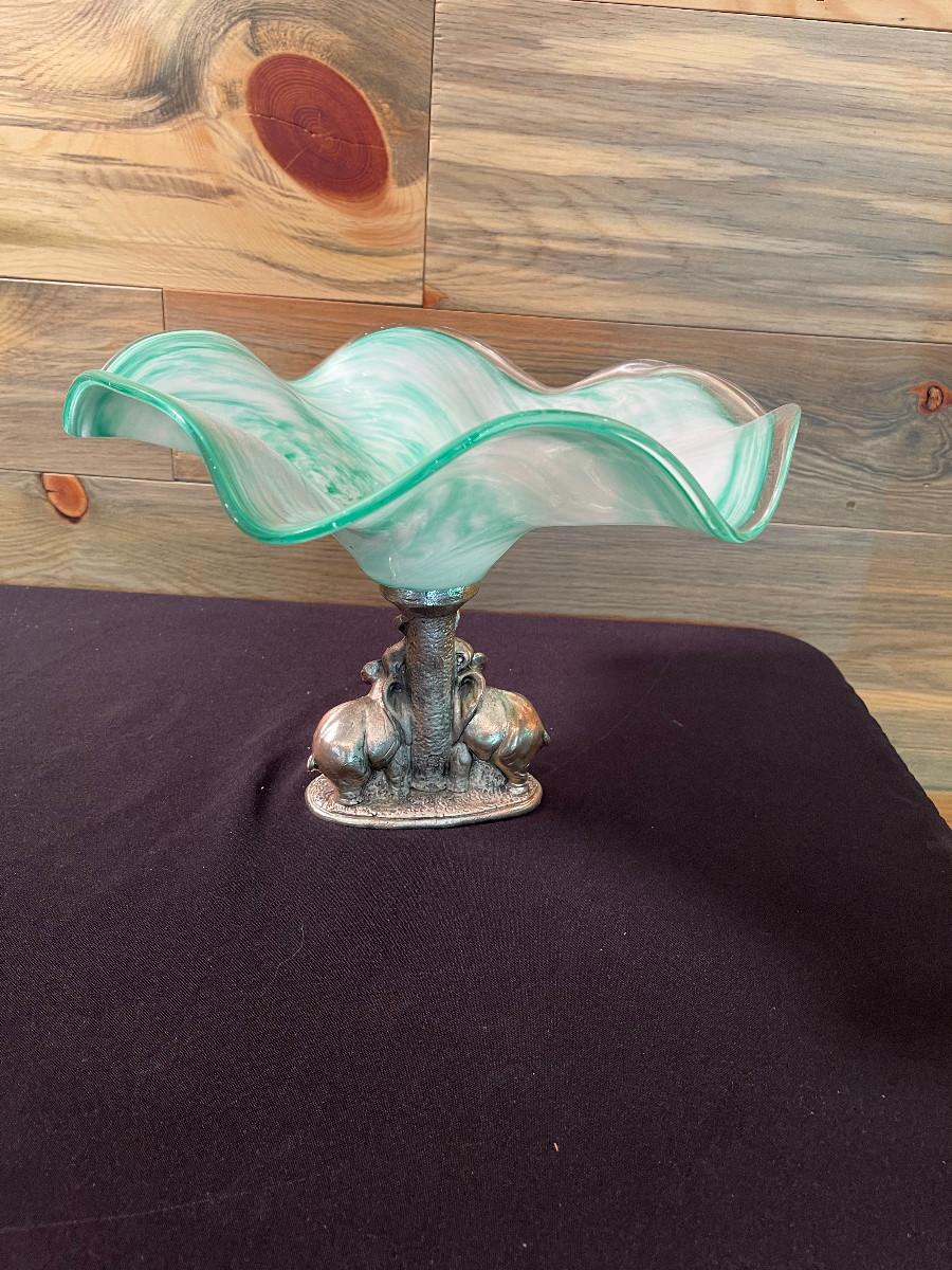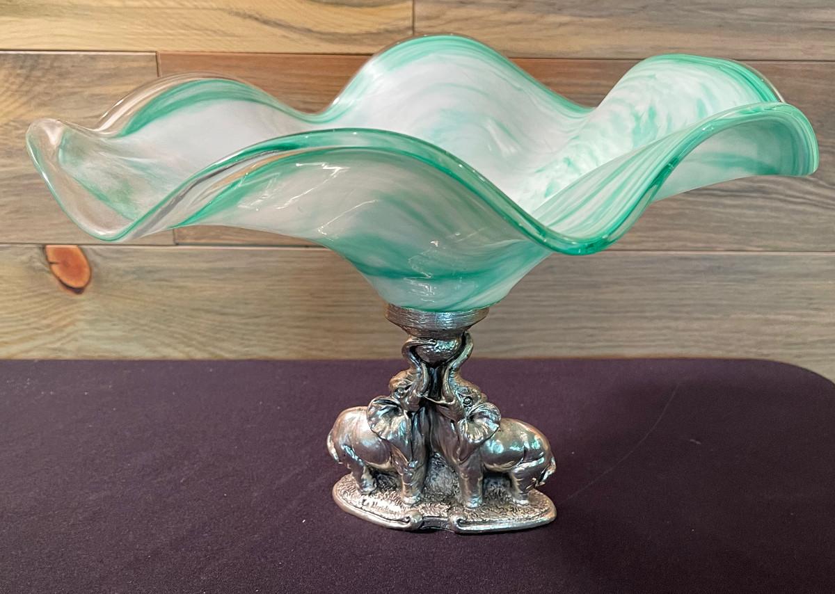 #68 Glass Bowl with White Brass Base of Elephants