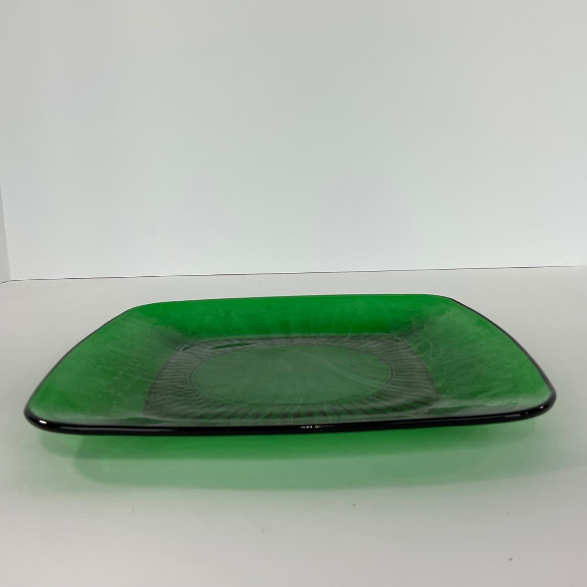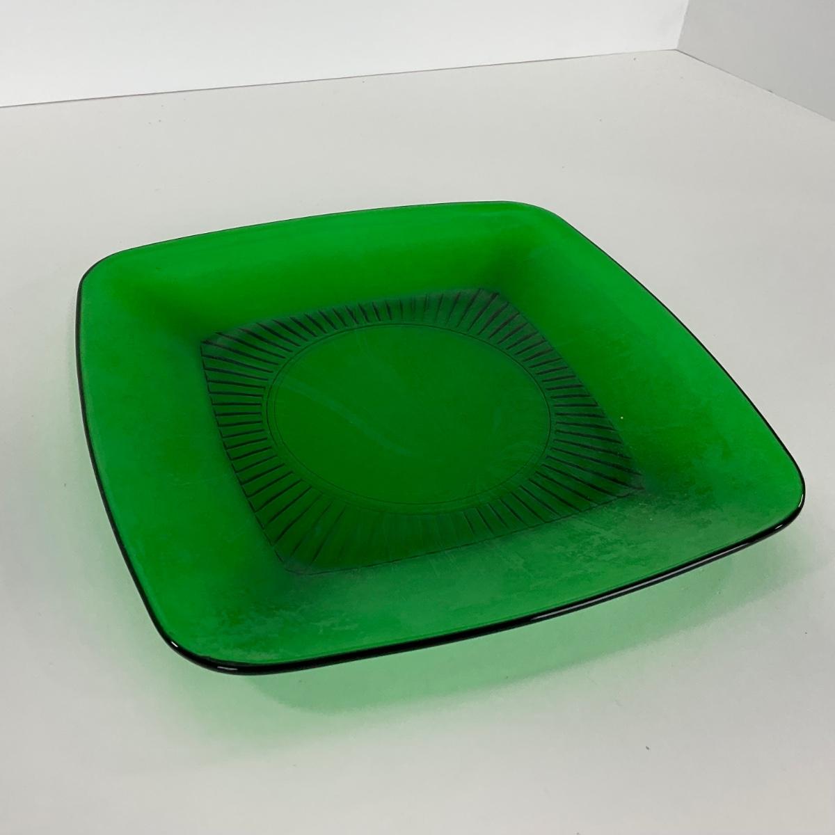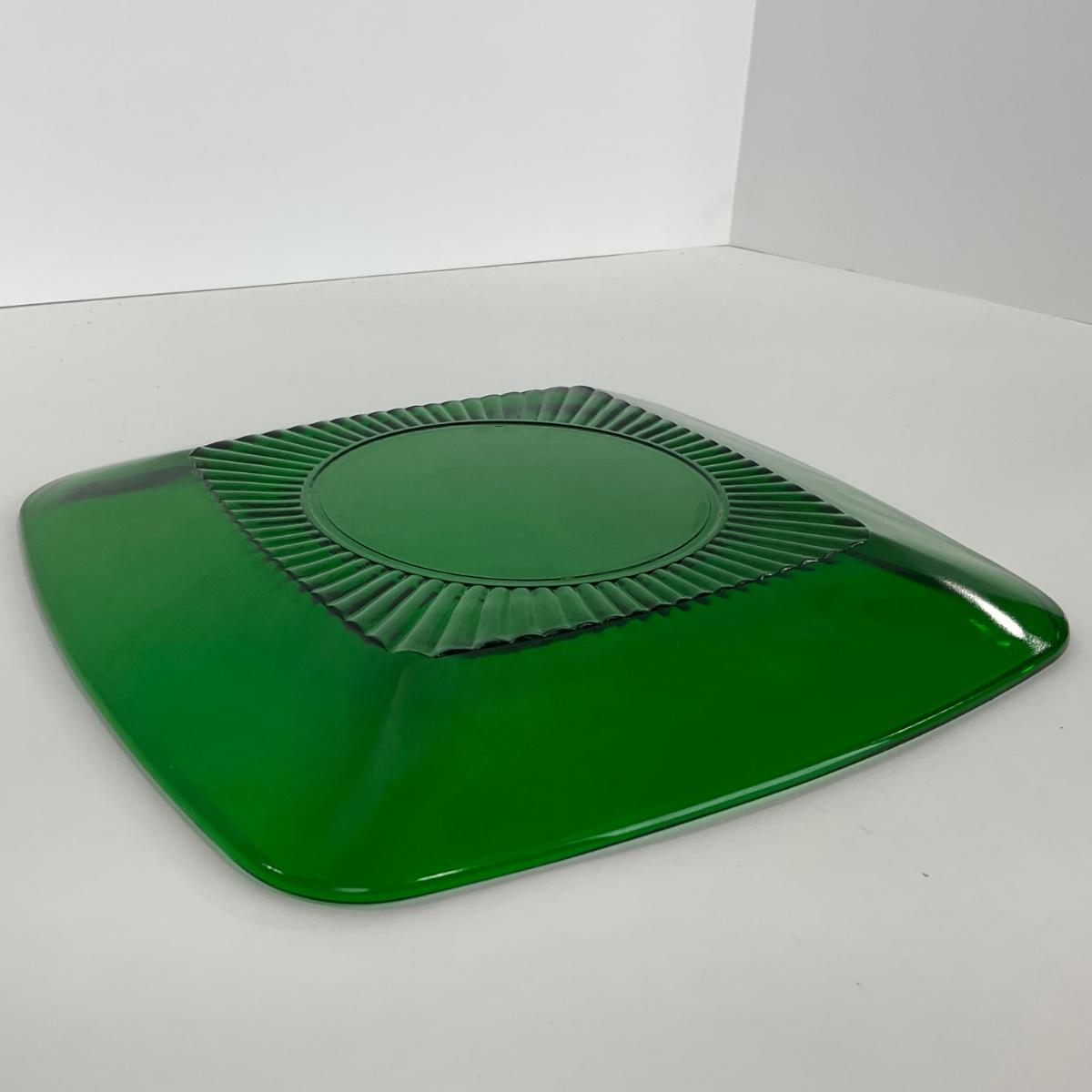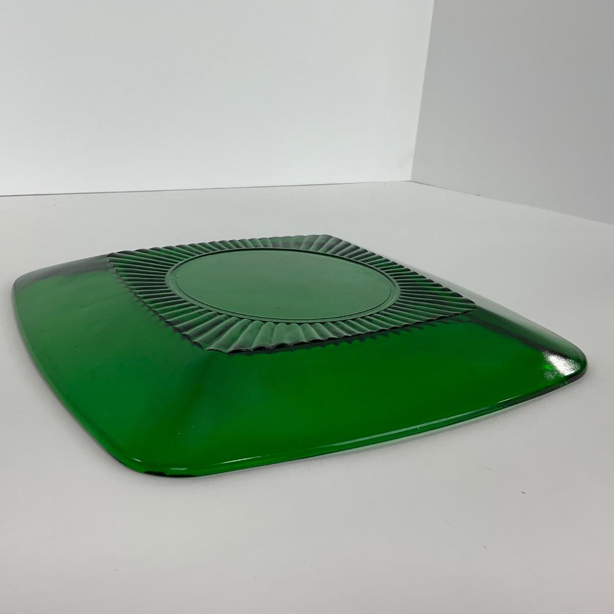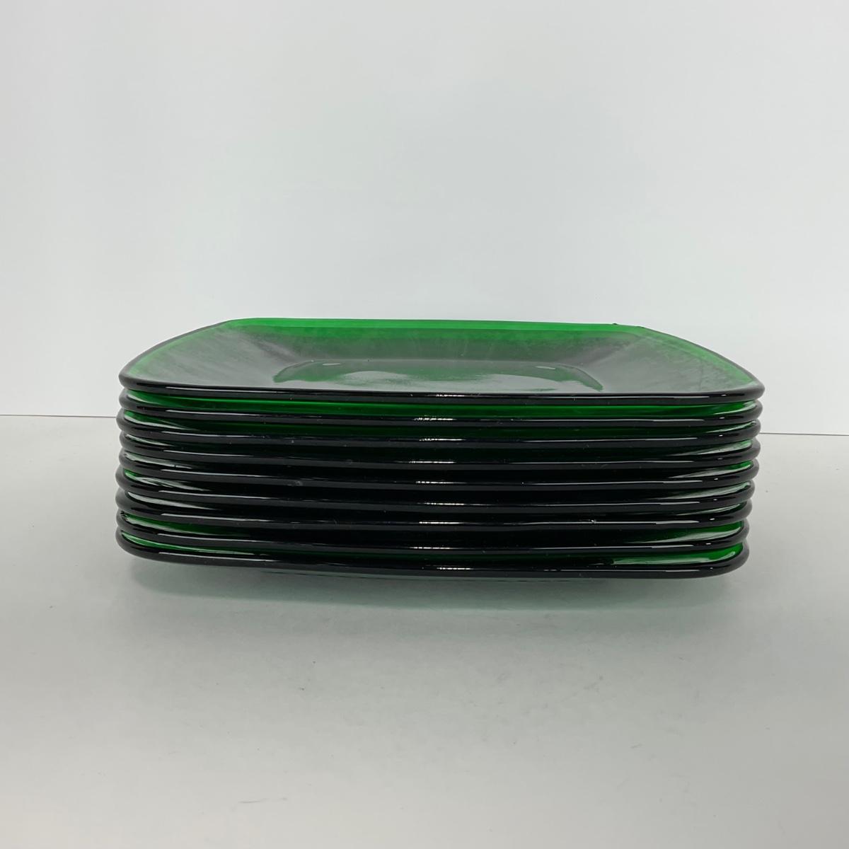 -68- GLASSWARE | Anchor Hocking Glass Co. | Forest Green Square Plates