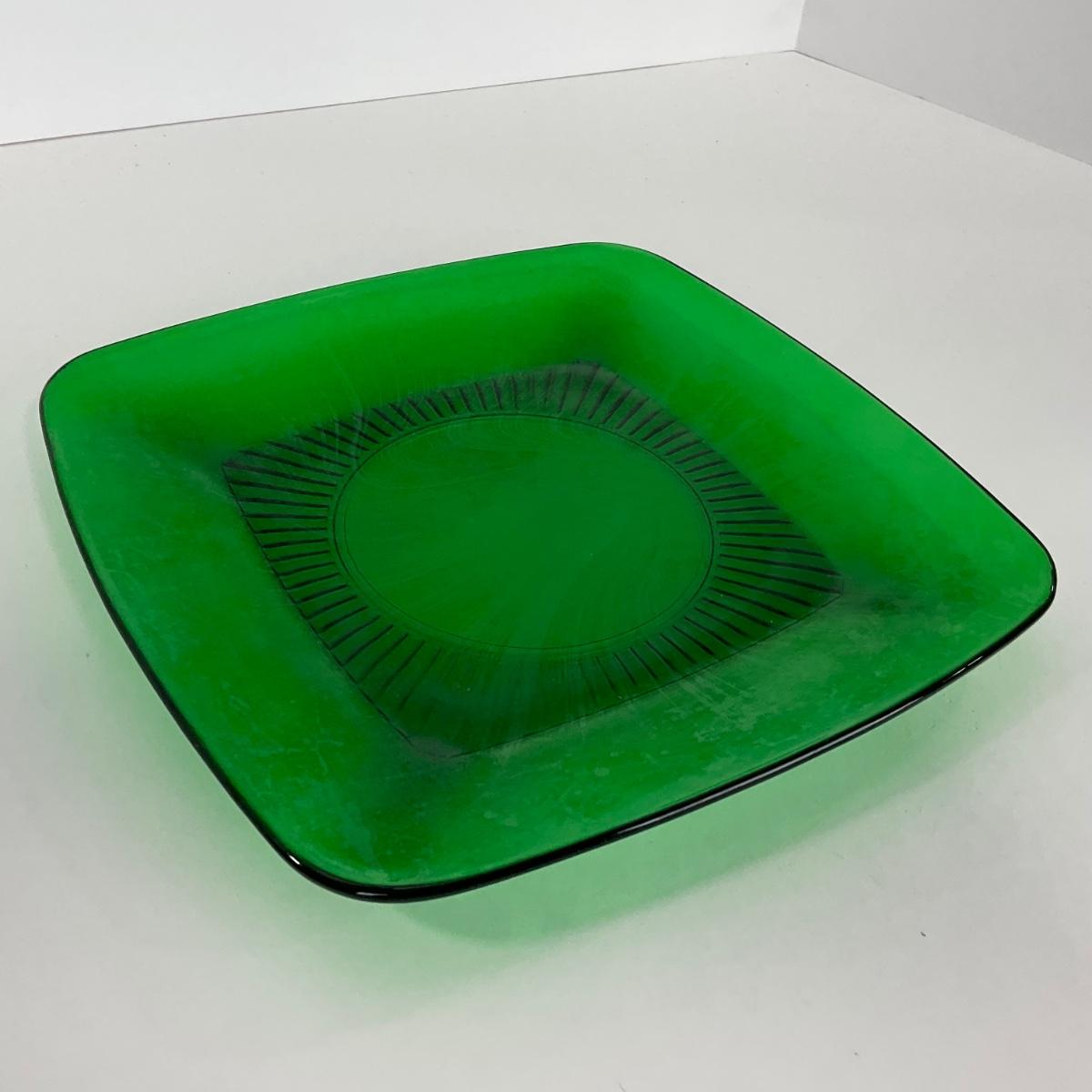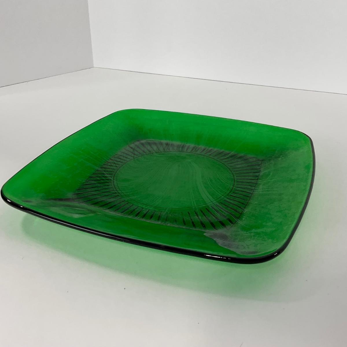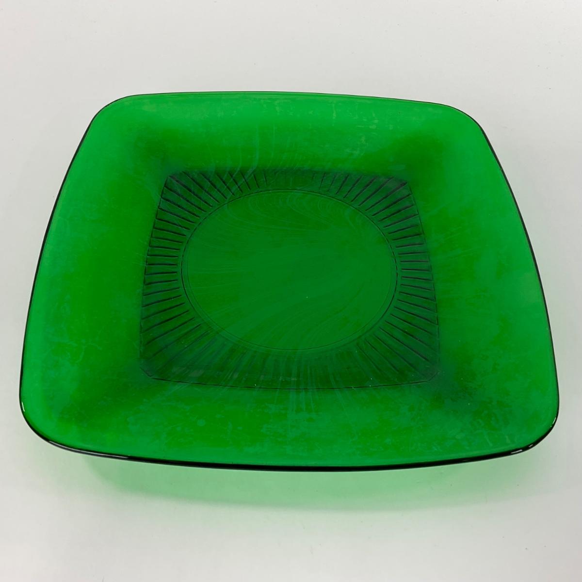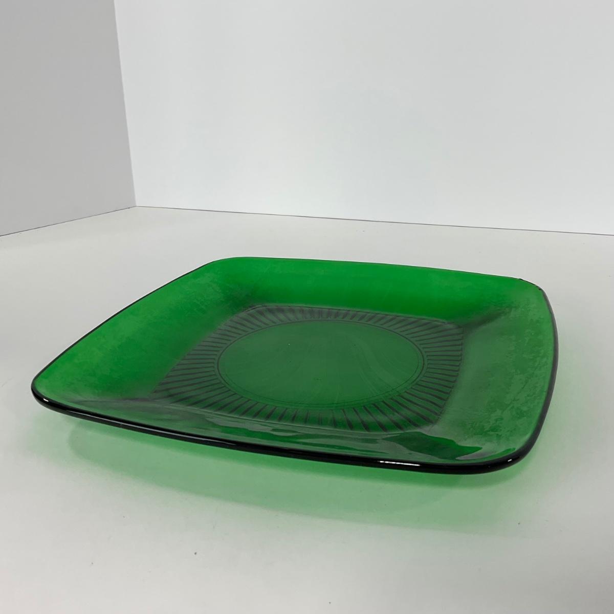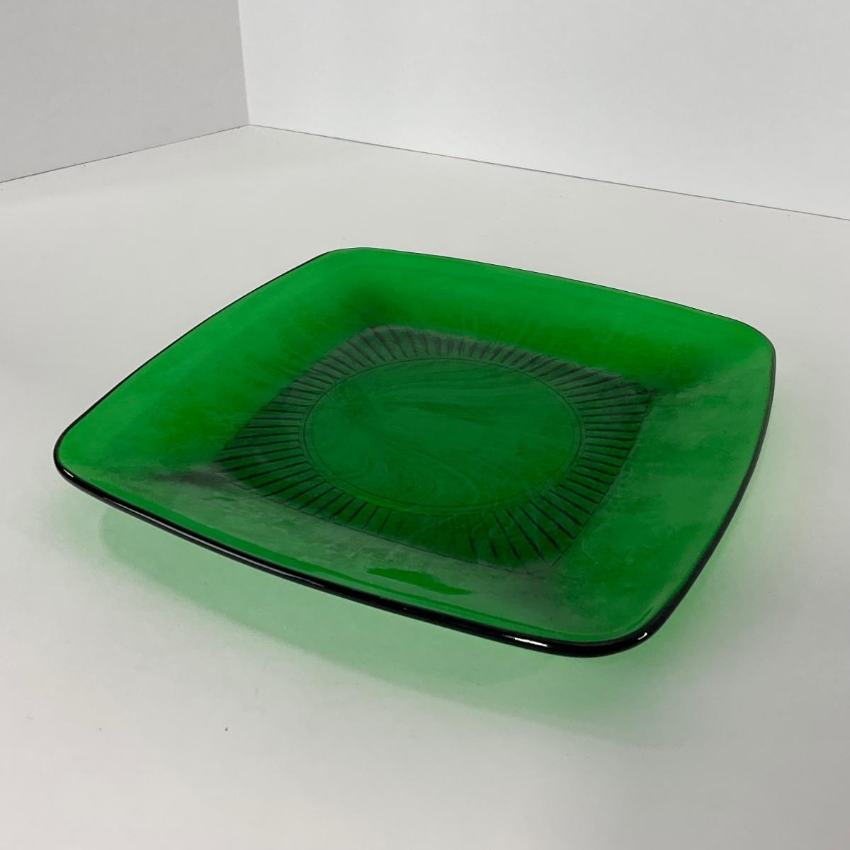 -68- GLASSWARE | Anchor Hocking Glass Co. | Forest Green Square Plates