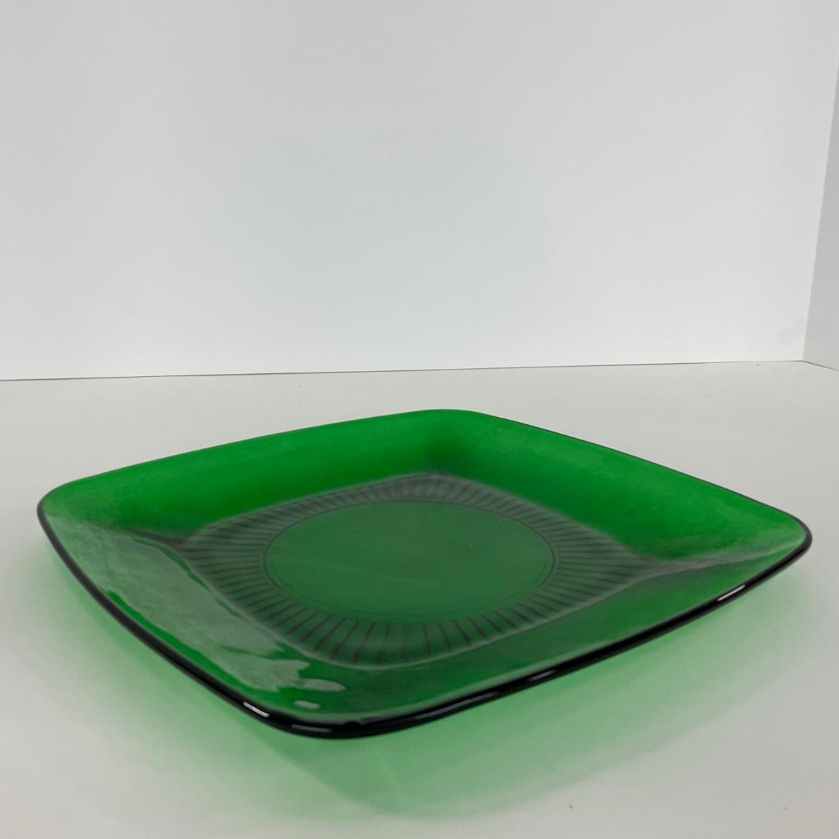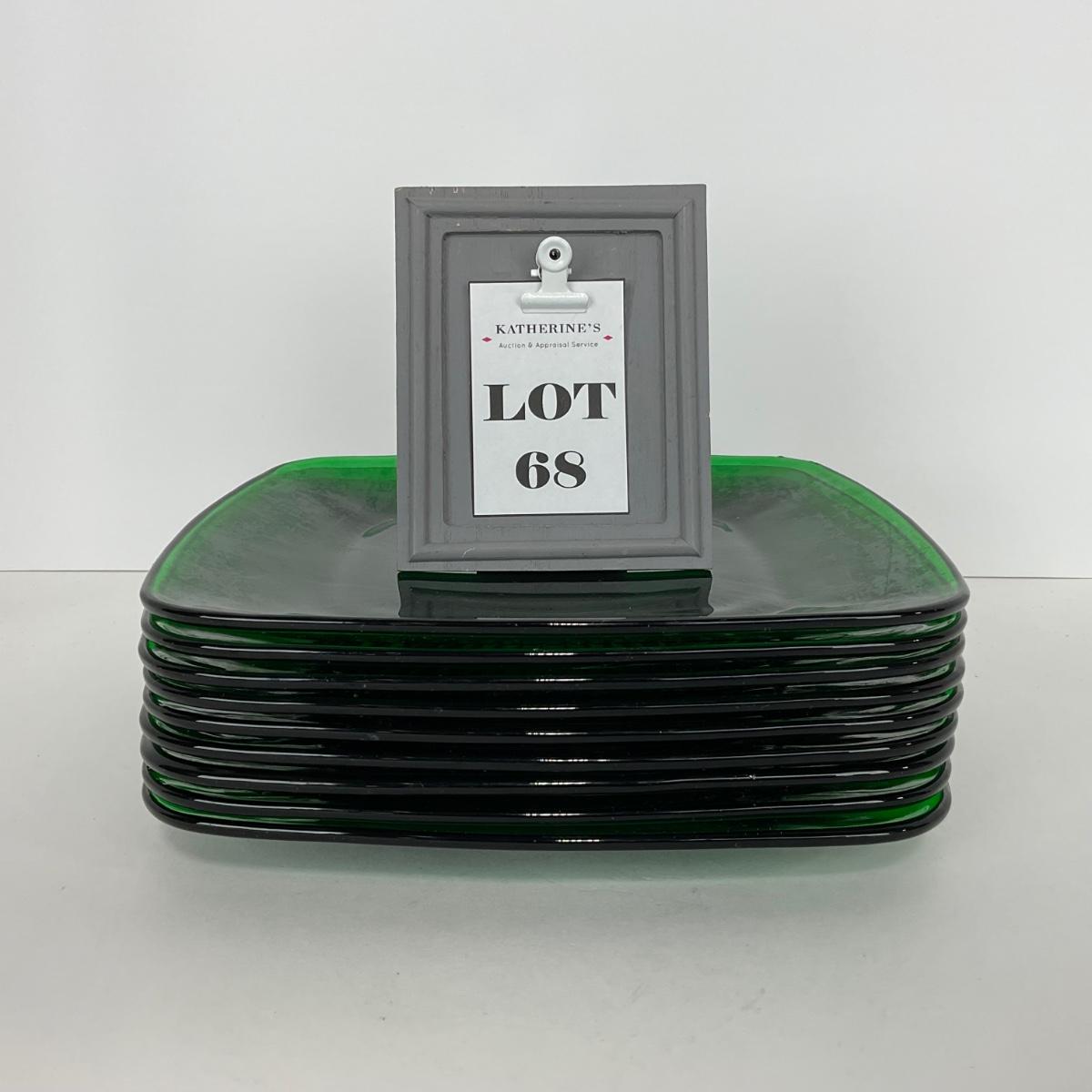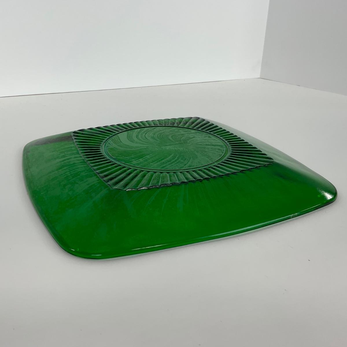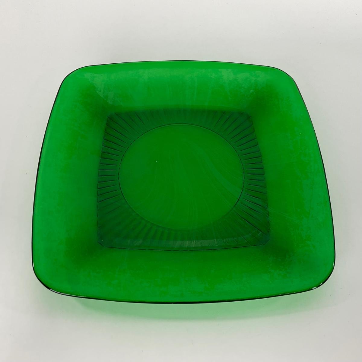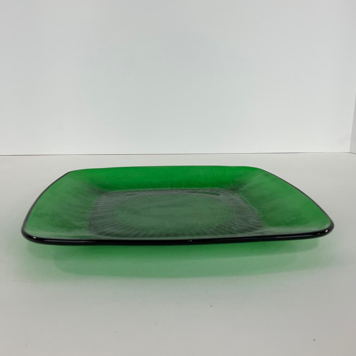 -68- GLASSWARE | Anchor Hocking Glass Co. | Forest Green Square Plates