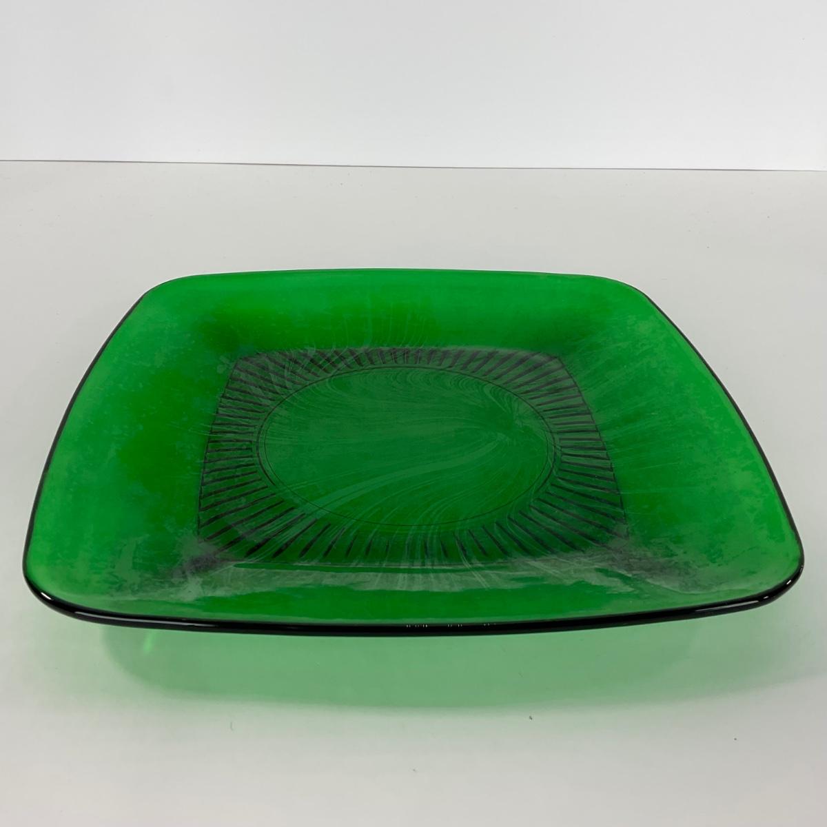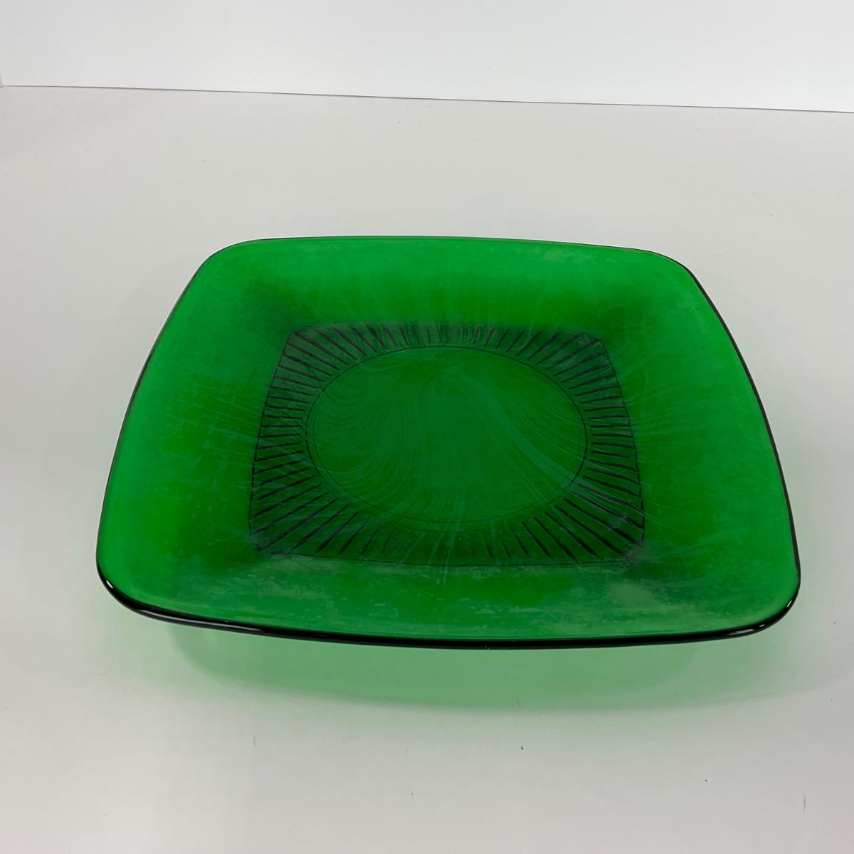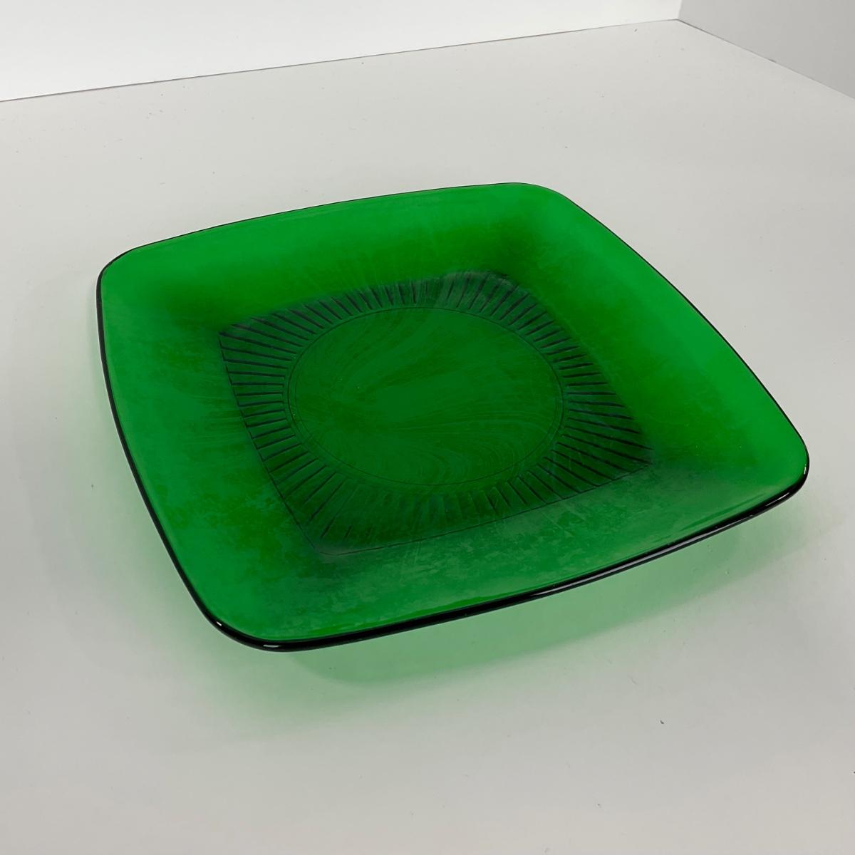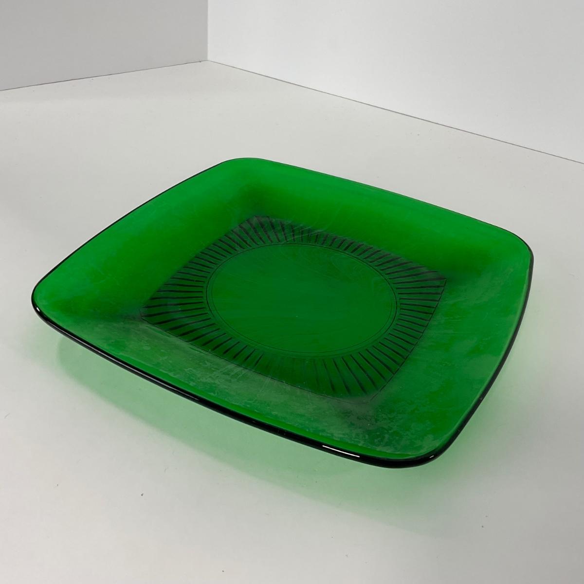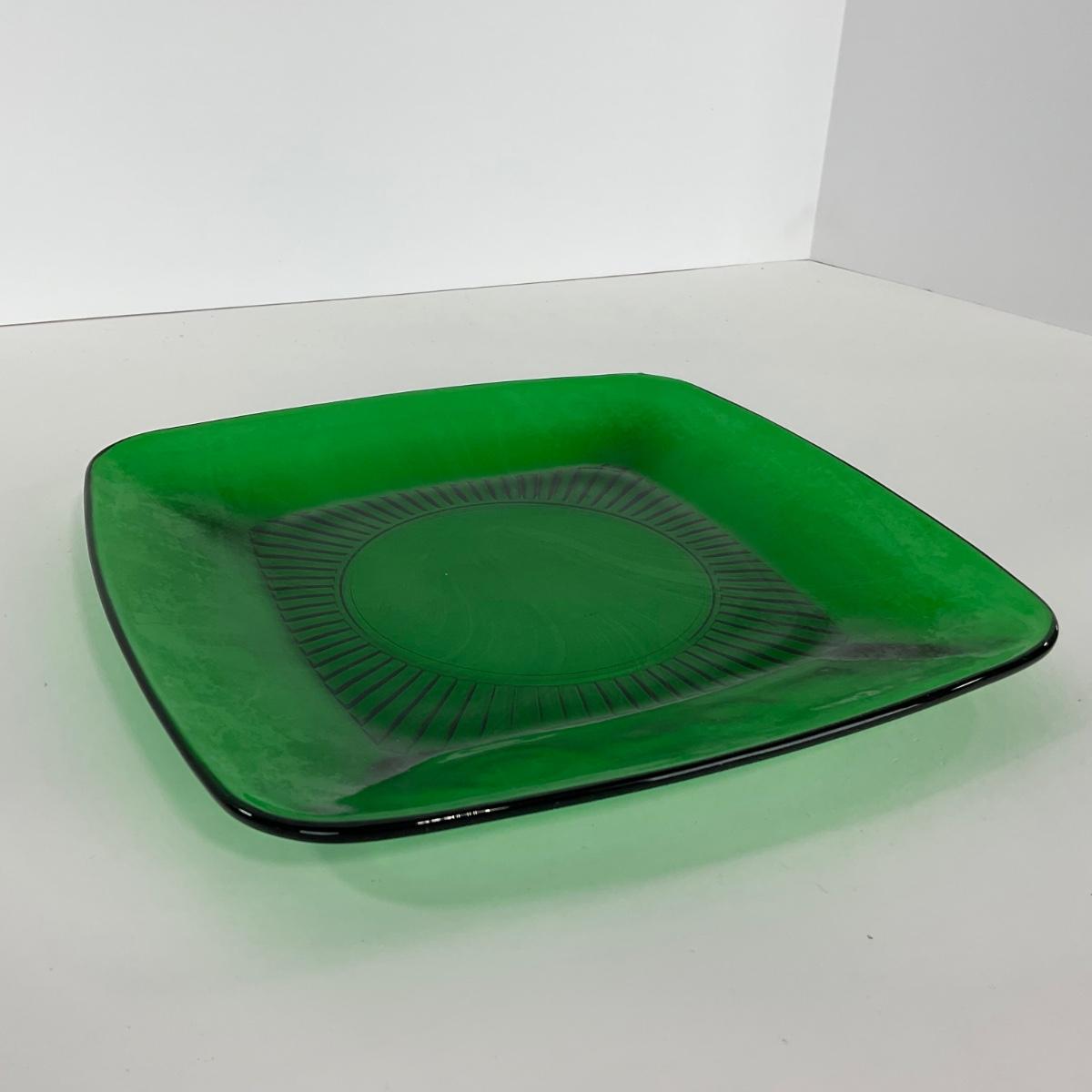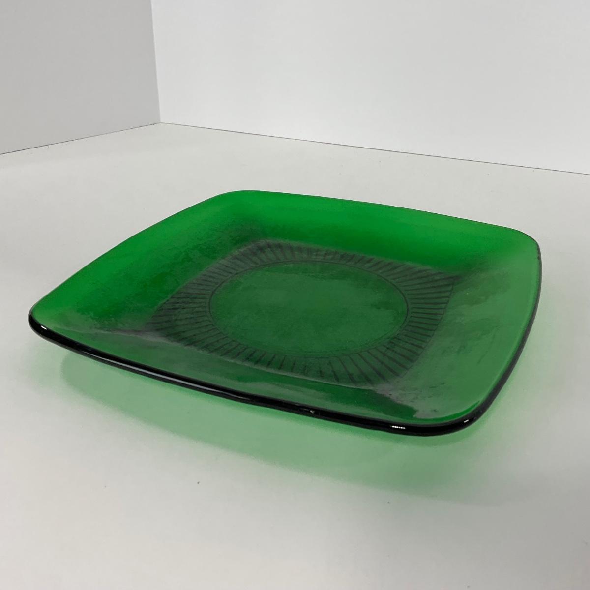-68- GLASSWARE | Anchor Hocking Glass Co. | Forest Green Square Plates