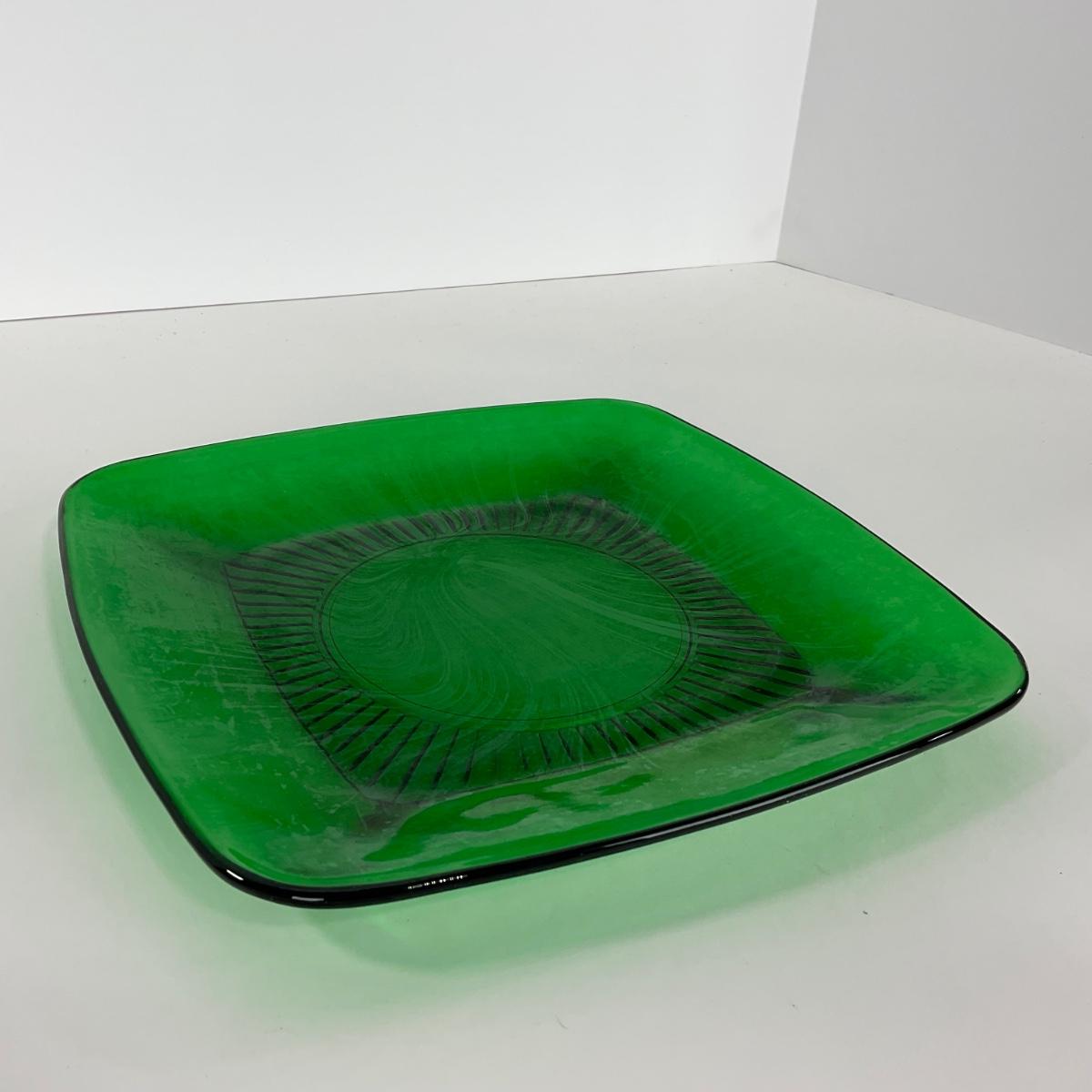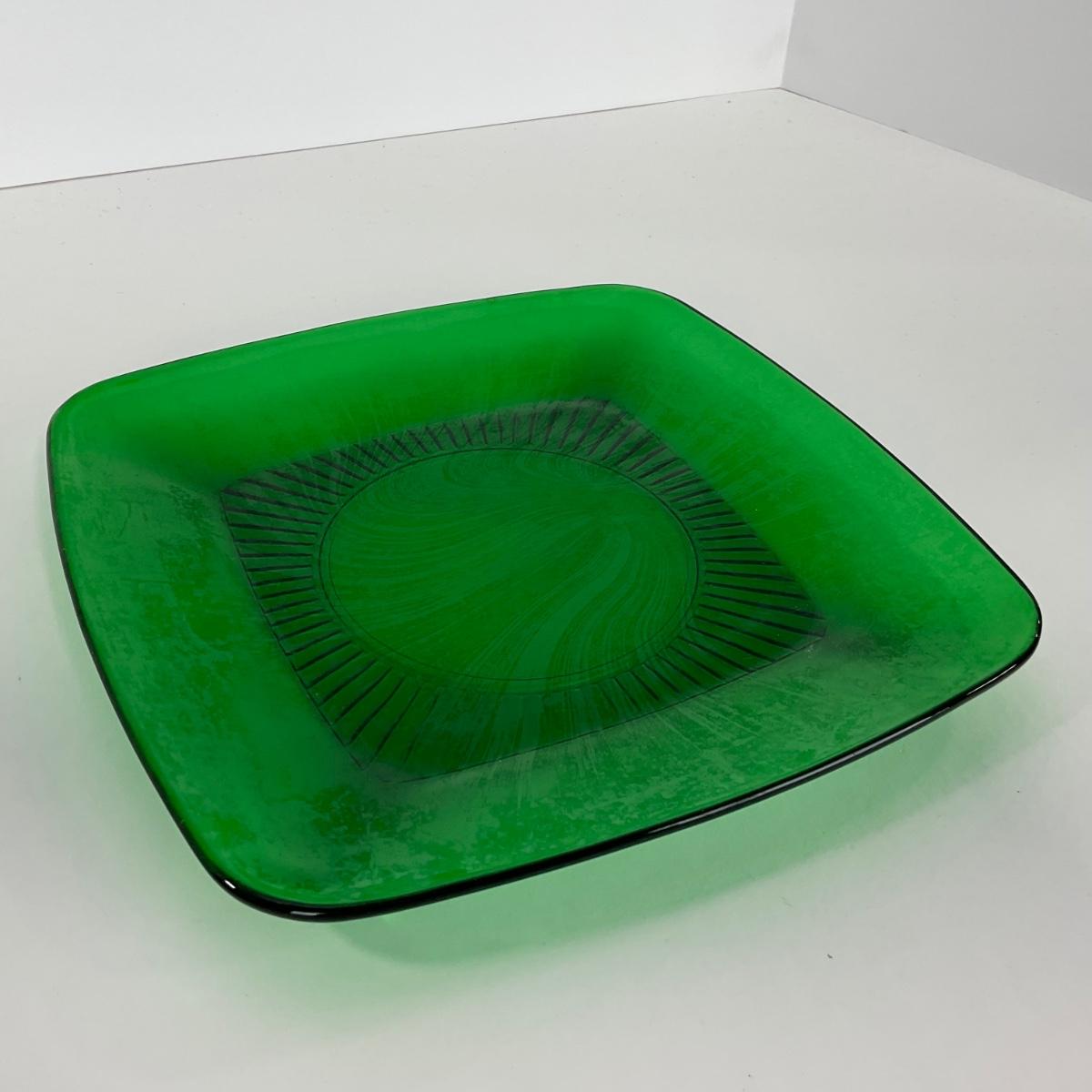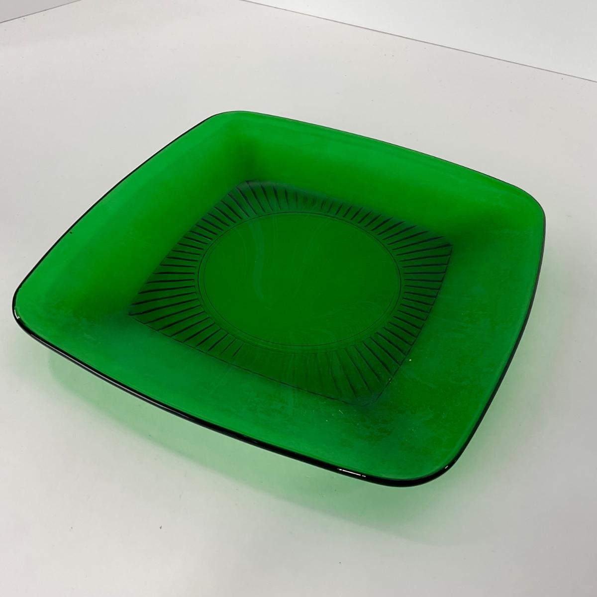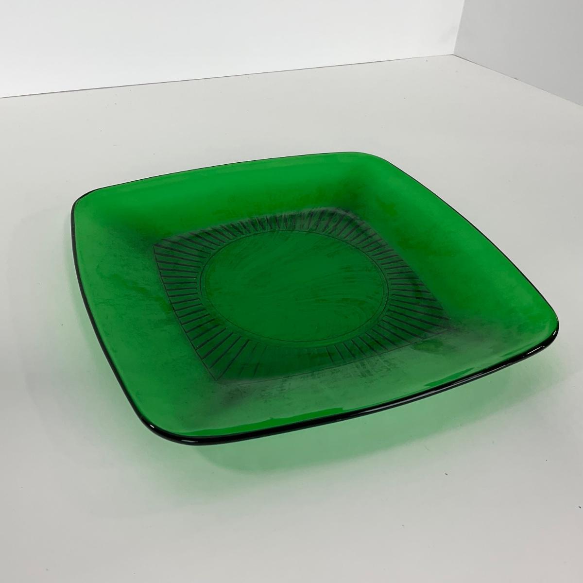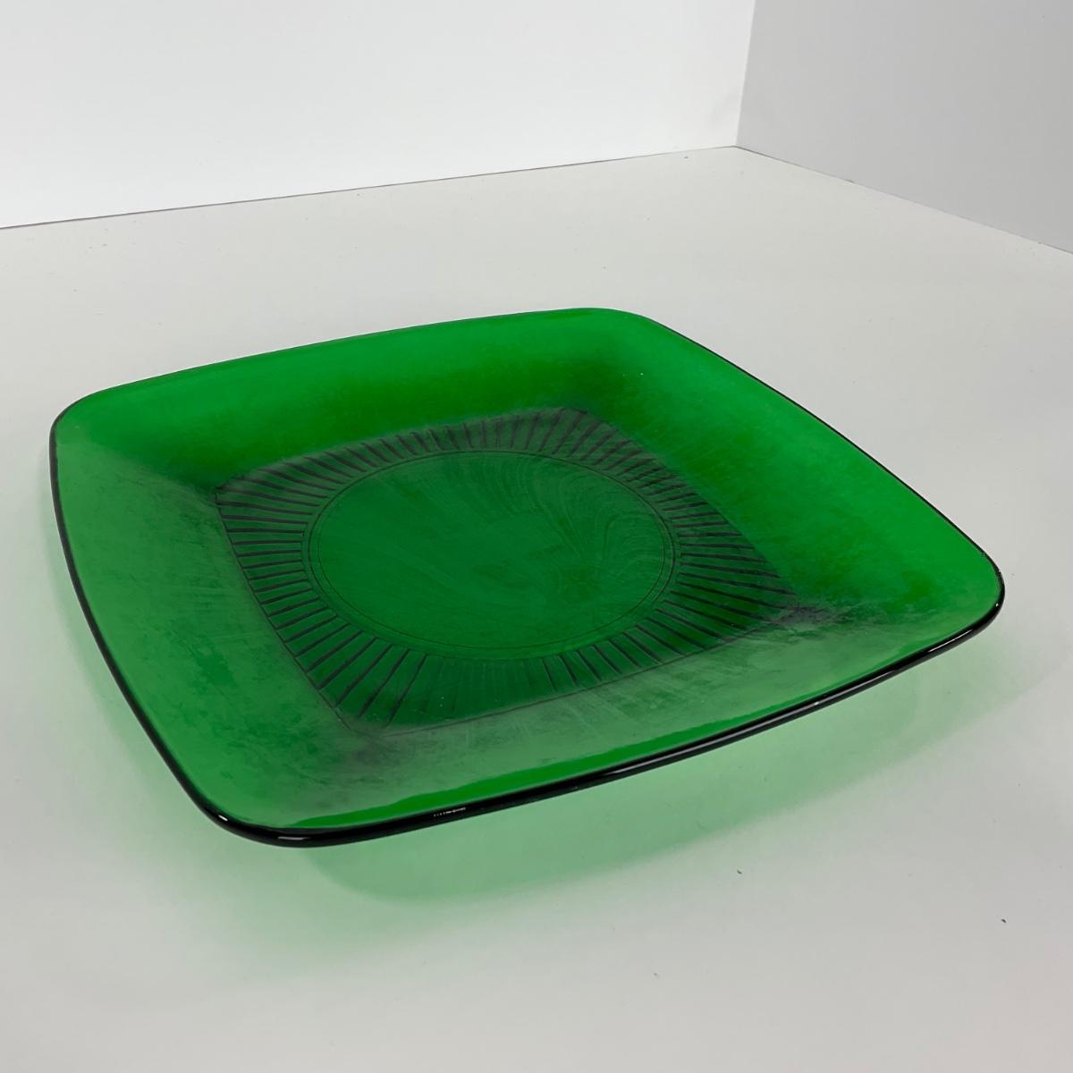-68- GLASSWARE | Anchor Hocking Glass Co. | Forest Green Square Plates