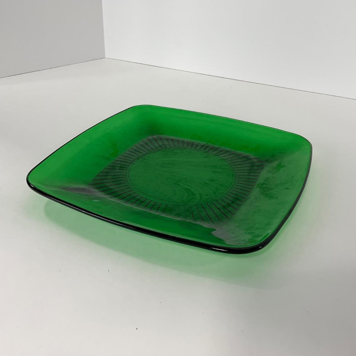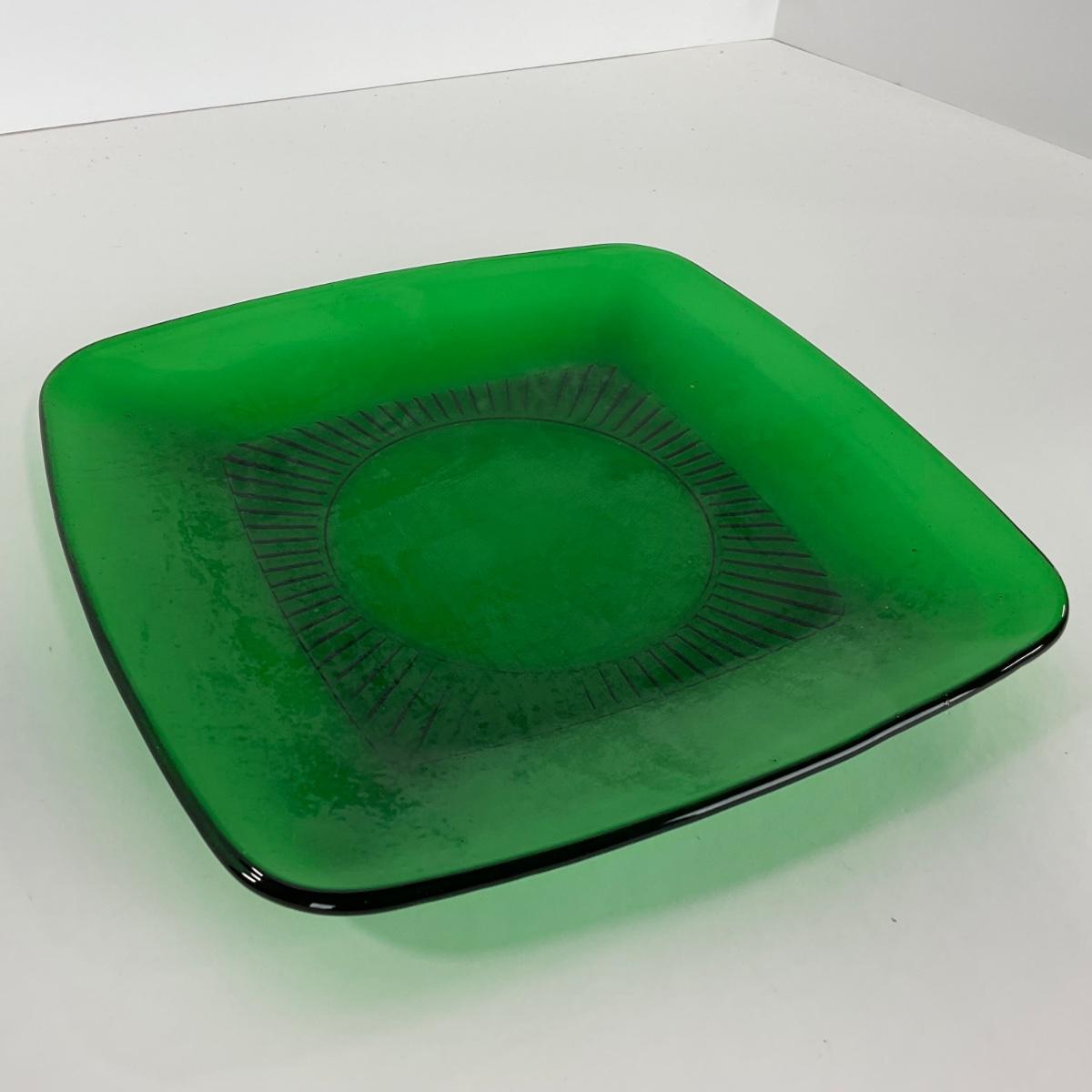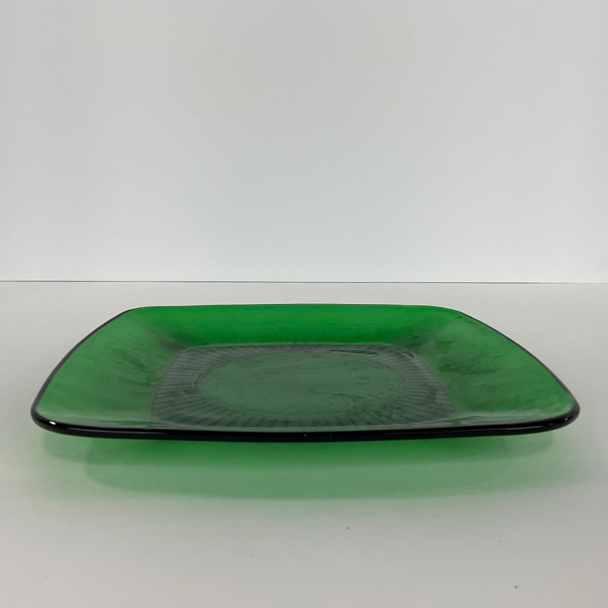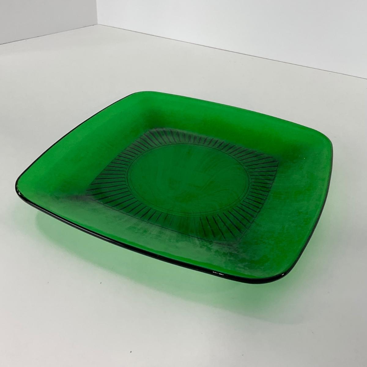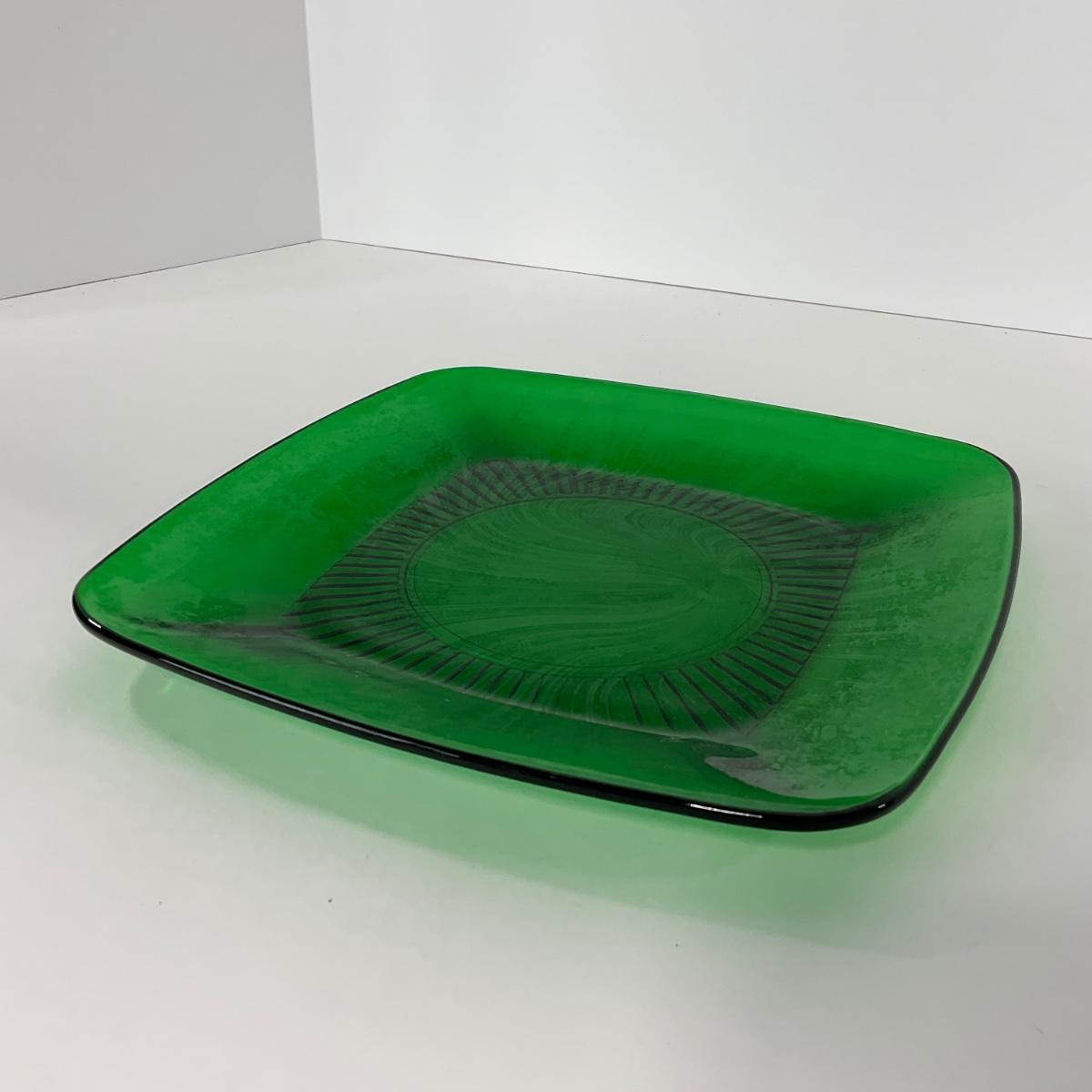 -68- GLASSWARE | Anchor Hocking Glass Co. | Forest Green Square Plates
