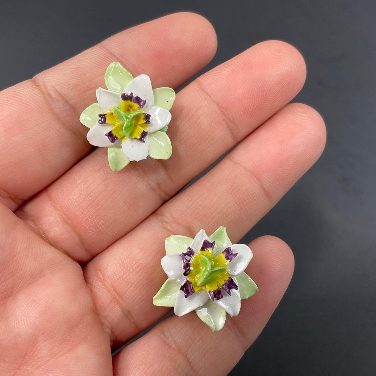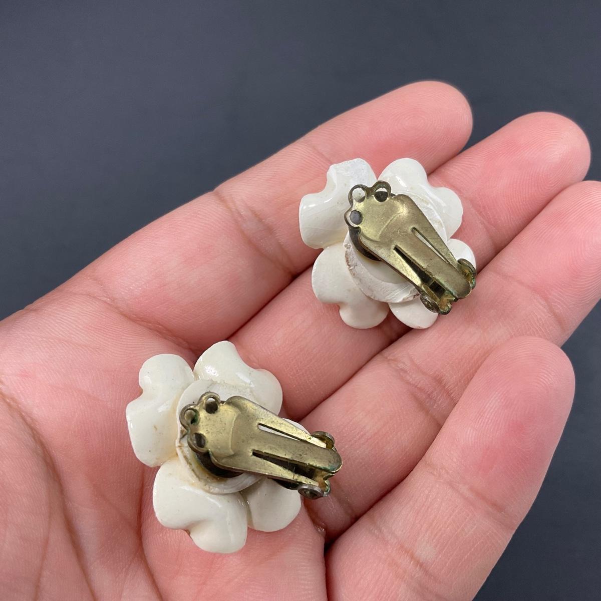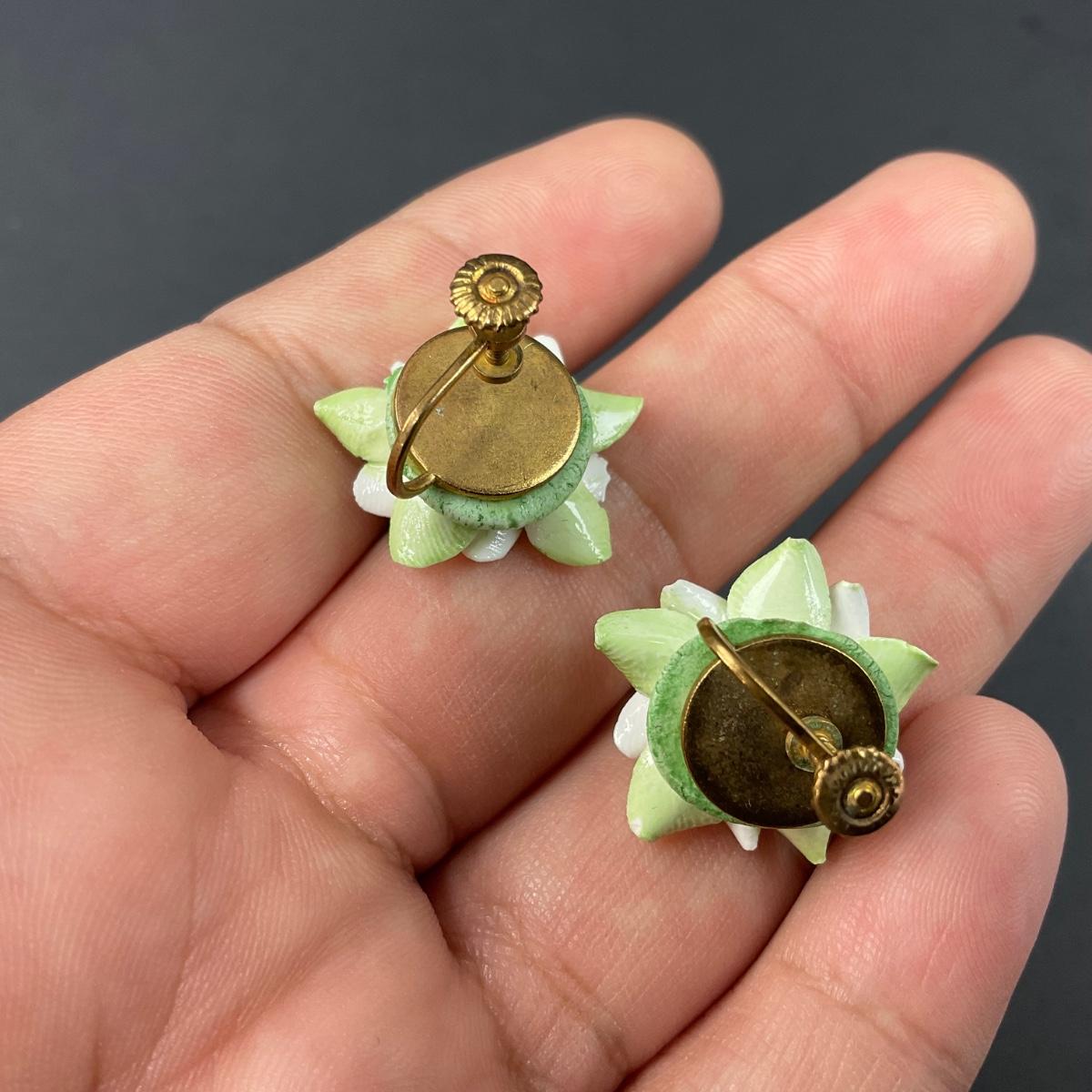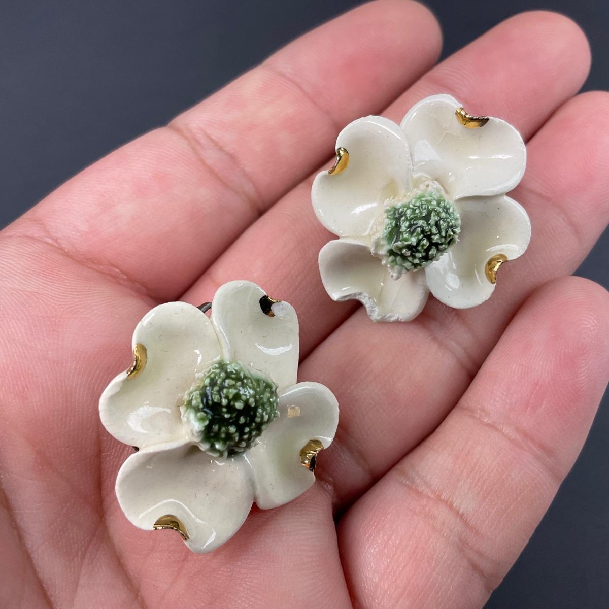 Three pair of vintage porcelain post earrings. All pairs have some slight chipping and damage. Please see photos for details and condition. Any condition statement is given as a courtesy to a client, is an opinion, and should not be treated as a statement of fact. Reference to condition written, oral or within a condition report shall not be regarded as a full account of condition and may not include all defects, alterations, or restorations. Absence of a condition report does not imply a lot is flawless or lacking imperfections or damage. Katherine’s Auction & Appraisal Service shall have no responsibility for any error or omission. Returns shall not be accepted on the basis of condition. ::: Shipping is available on this lot. If you require shipping you must let us know at the close of the auction. We will coordinate with you after the item has been won. Shipping fees will include insurance up to or exceeding the value of all items being mailed. If you have any questions regarding this lot please contact the auctioneer either via this website, by direct email or by phone. PICK UP TIMES and other important information can be found in the TERMS and DESCRIPTION of the auction. Please take a look for pertinent information. Thanks!