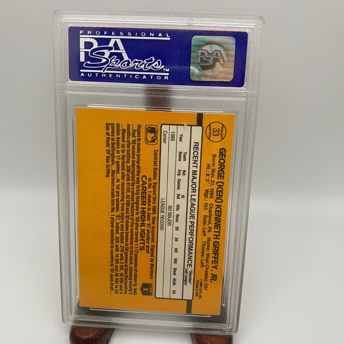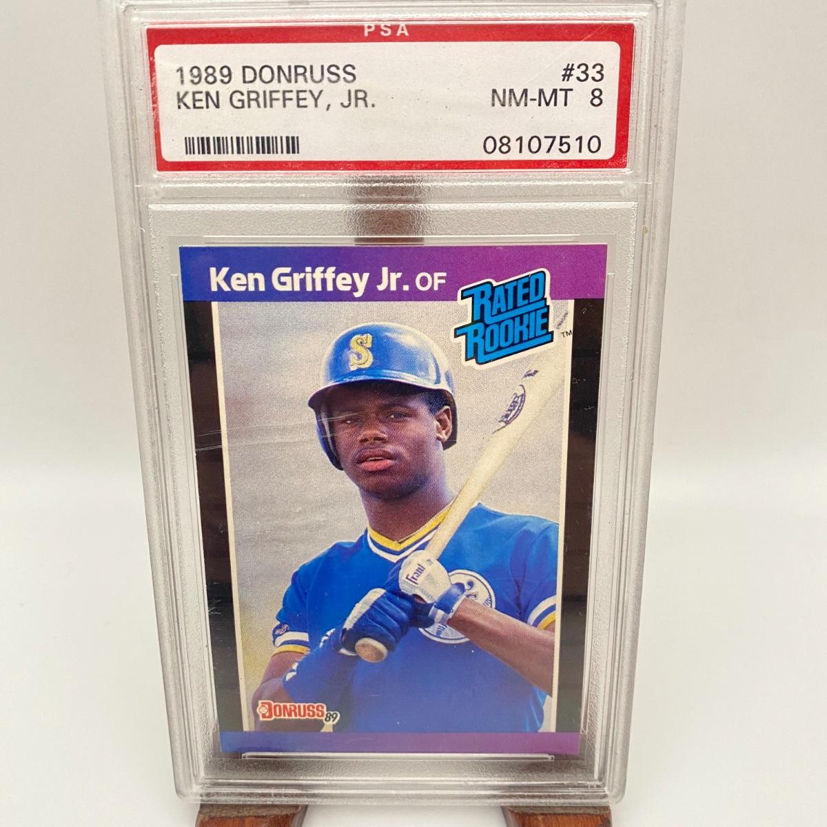1989 Donruss Ken Griffey Jr. Graded nothing much-MT 8 card. Please see photos for details and condition. ::: Shipping is available on this lot. If you require shipping you must let us know at the close of the auction. We will coordinate with you after the item has been won. Shipping fees will include insurance up to or exceeding the value of all items being mailed. If you have any questions regarding this lot please contact the auctioneer either via this website, by direct email or by phone. PICK UP TIMES and other important information can be found in the TERMS and DESCRIPTION of the auction. Please take a look for pertinent information. Thanks!