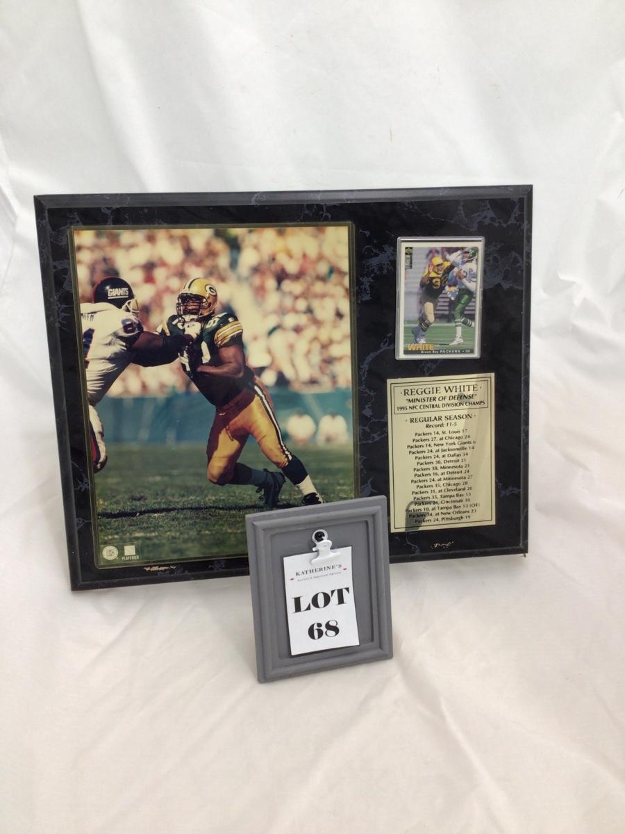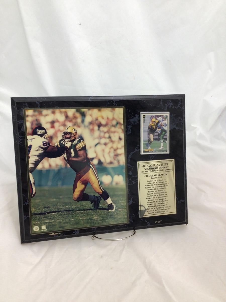 Reggie White wall plaque with card. 12 inches by 15 inches. Some damage pictured. Please see photos for details and condition. ::: Shipping is available on this lot. If you require shipping you must let us know at the close of the auction. We will coordinate with you after the item has been won. Shipping fees will include insurance up to or exceeding the value of all items being mailed. If you have any questions regarding this lot please contact the auctioneer either via this website, by direct email or by phone. PICK UP TIMES and other important information can be found in the TERMS and DESCRIPTION of the auction. Please take a look for pertinent information. Thanks!