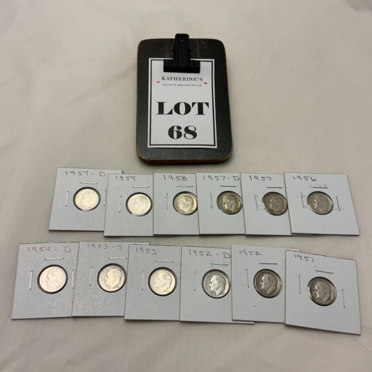 [68] Twelve Roosevelt Dimes | 1951-1959