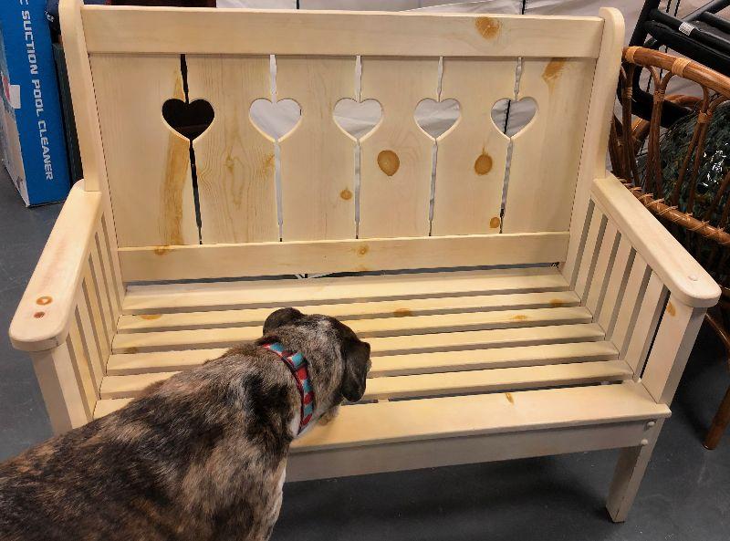 #68 Wooden Bench with Cut out HEARTS
