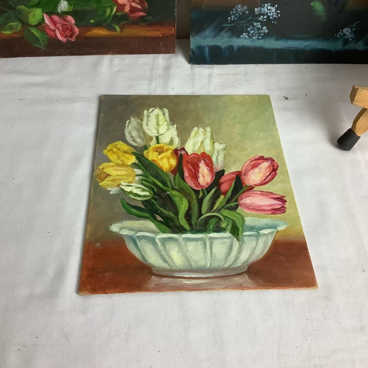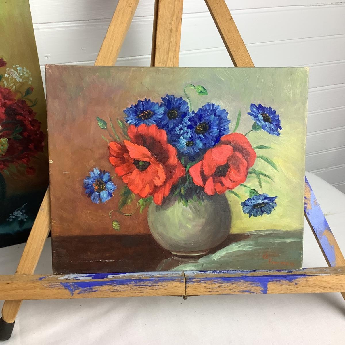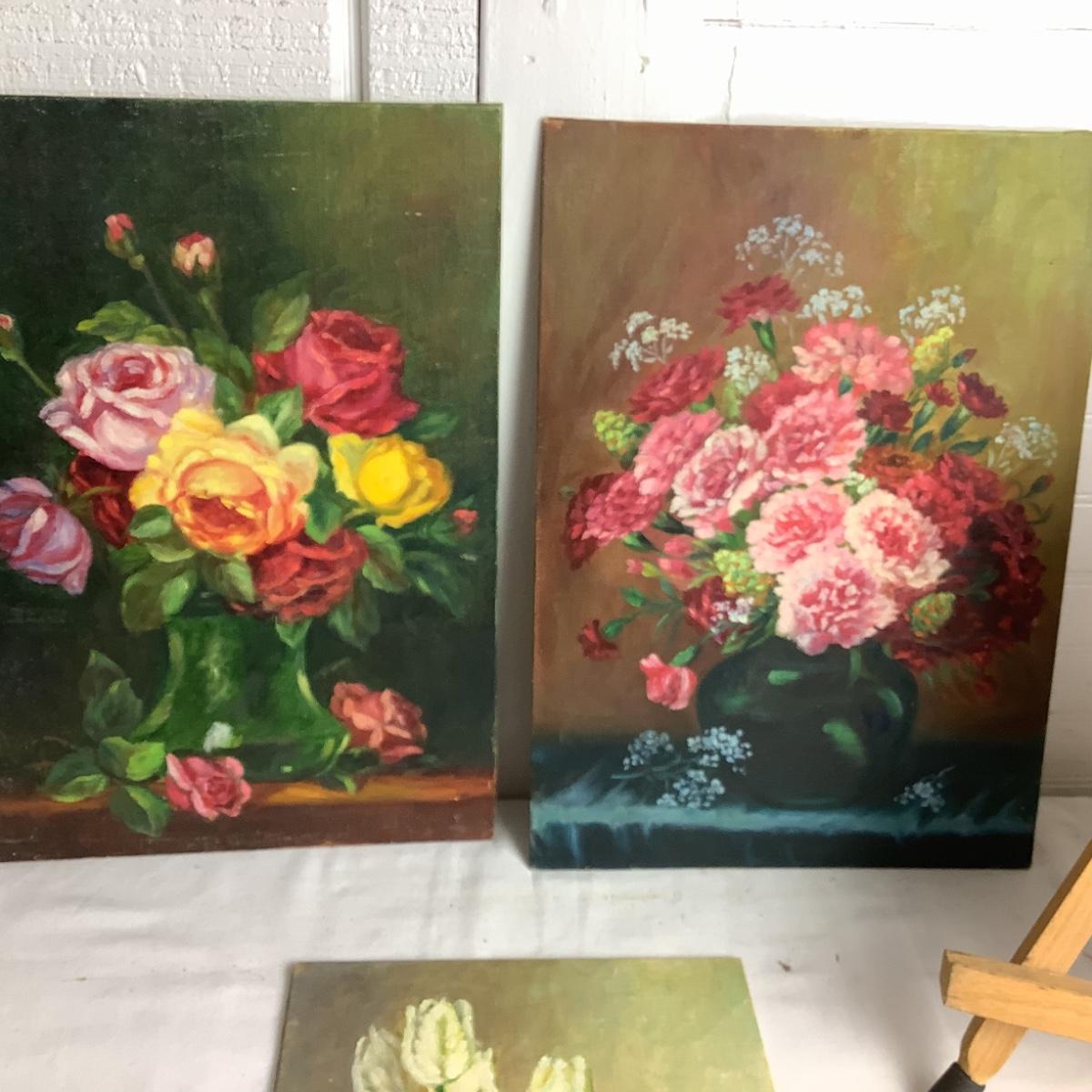 U680 Art Easel & Floral Paintings by Gladys Freeman