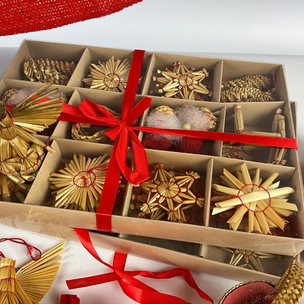 680 Swedish Holboll Christmas Straw Ornaments With Burlap Decor