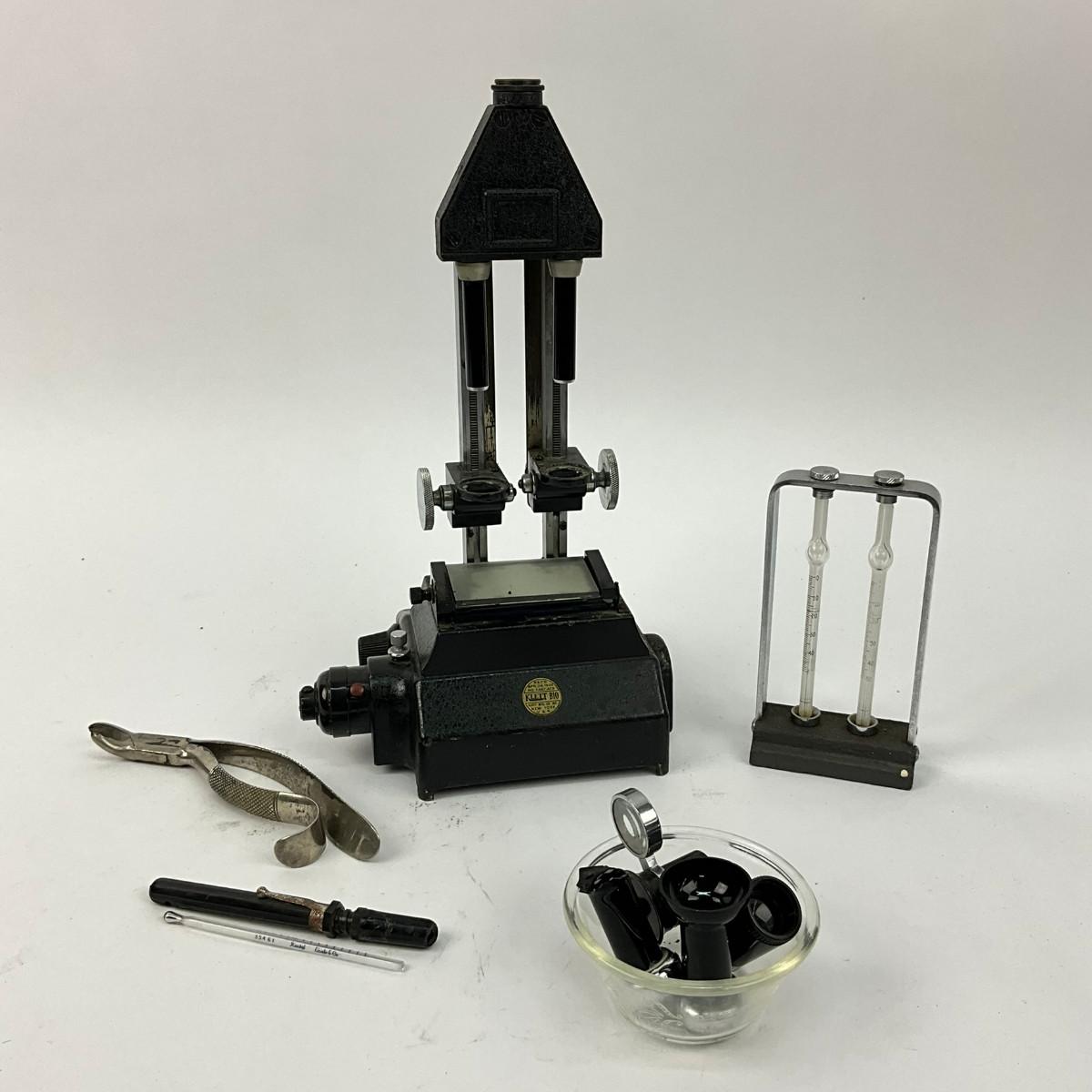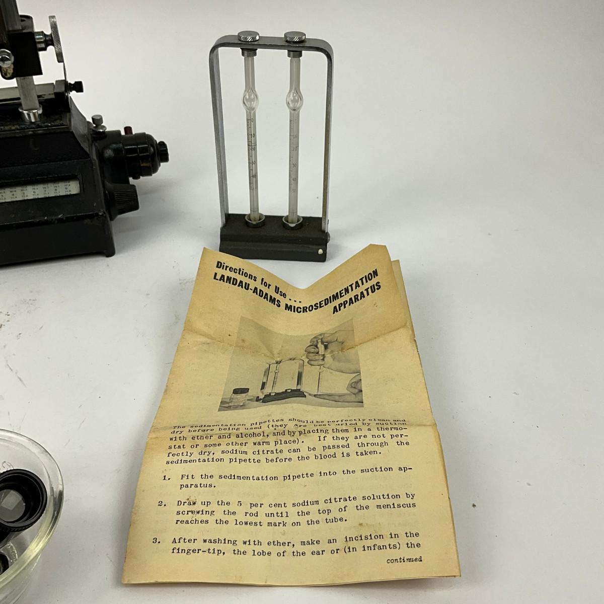 Kleet Bio-Colormeter Microscope, vintage tooth pull extractor, wiring to microscope is removed, Landu-Adams microsedetation apparatus