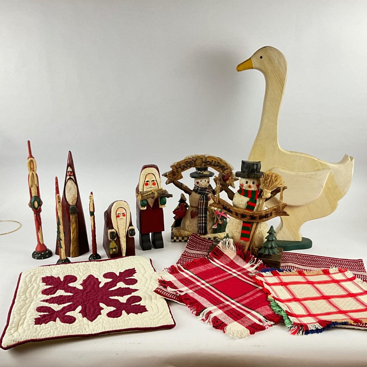 683 Folk Art Wood Carved Santa & Goose Home Decor