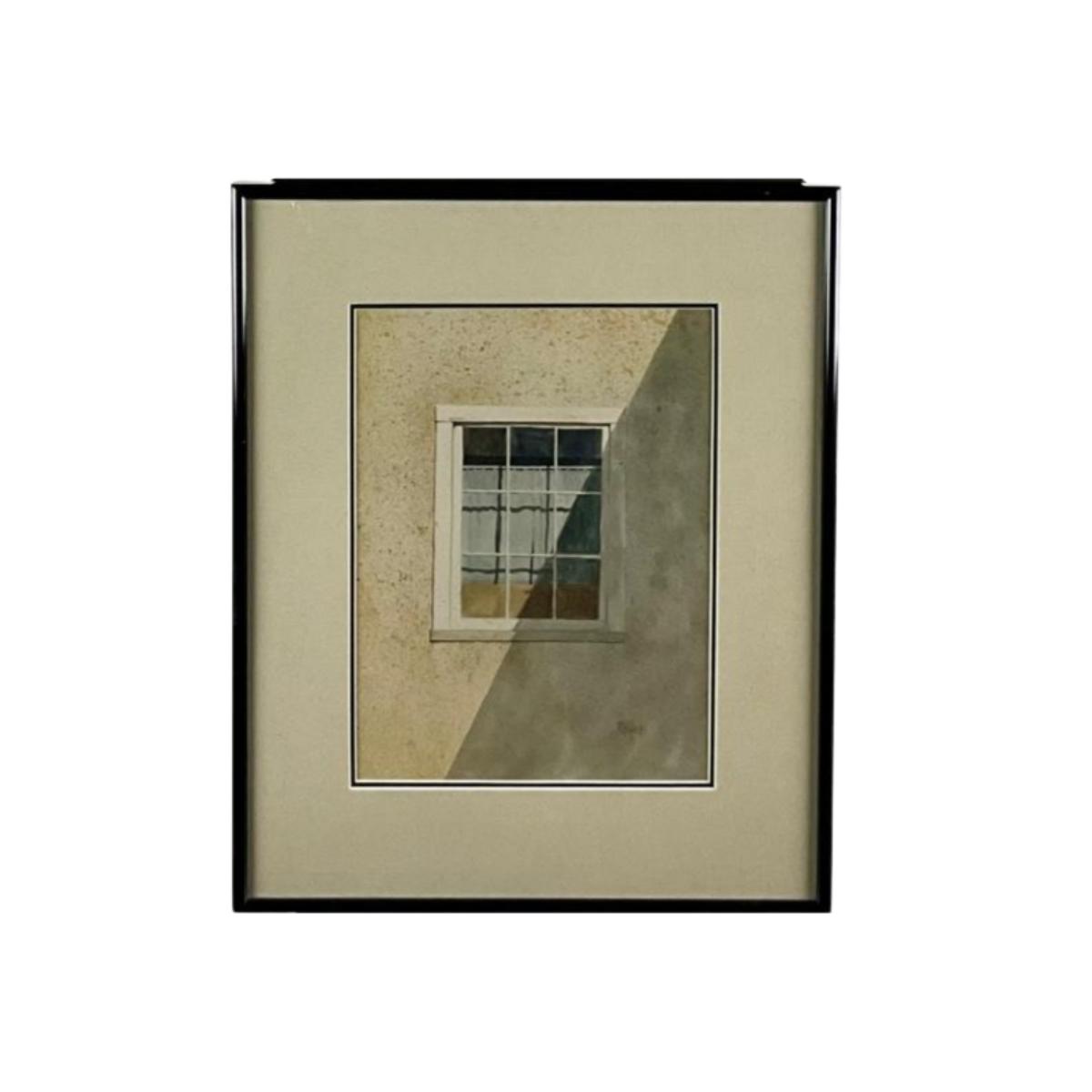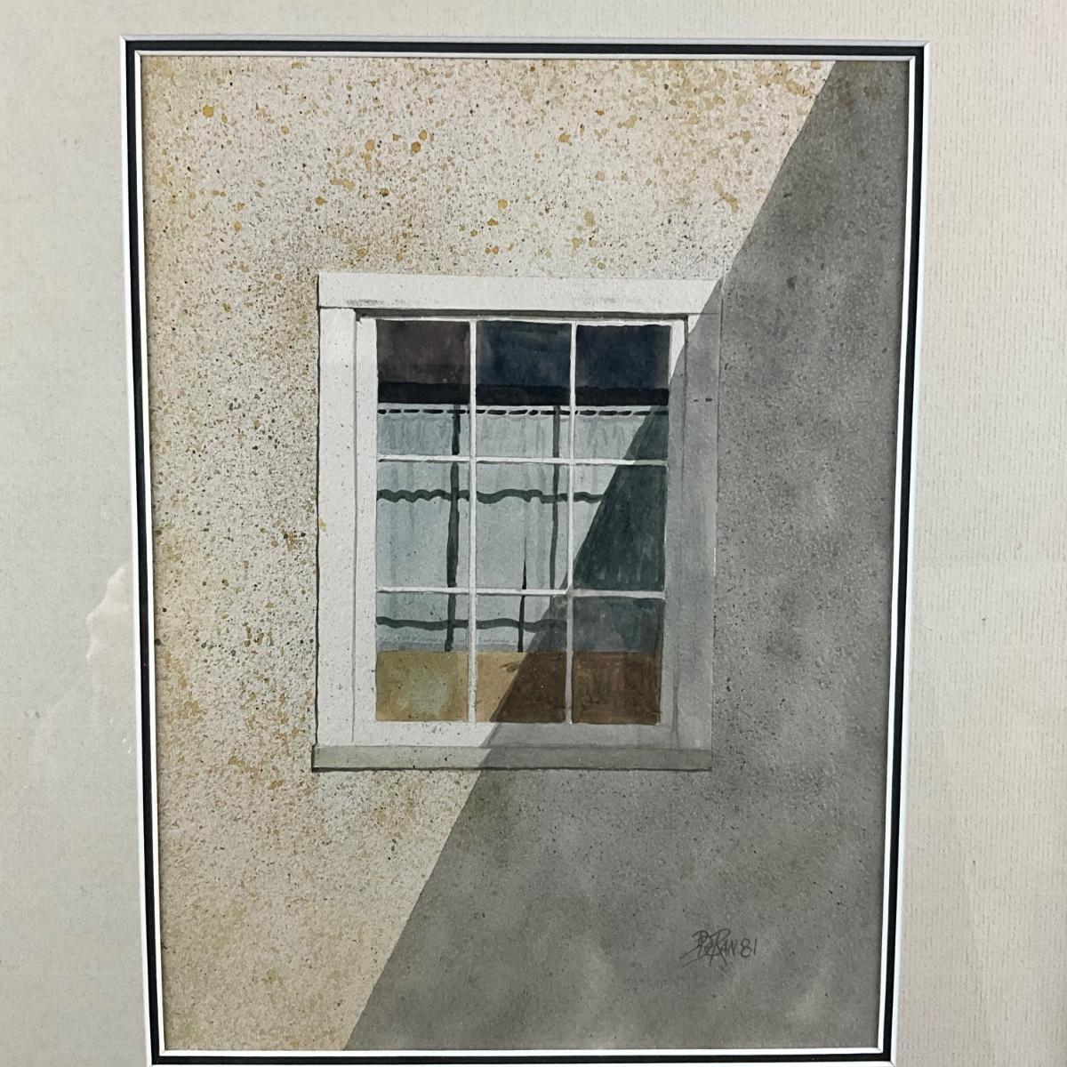 Watercolor is a minimal window still life with shade measuring 14" x 17".