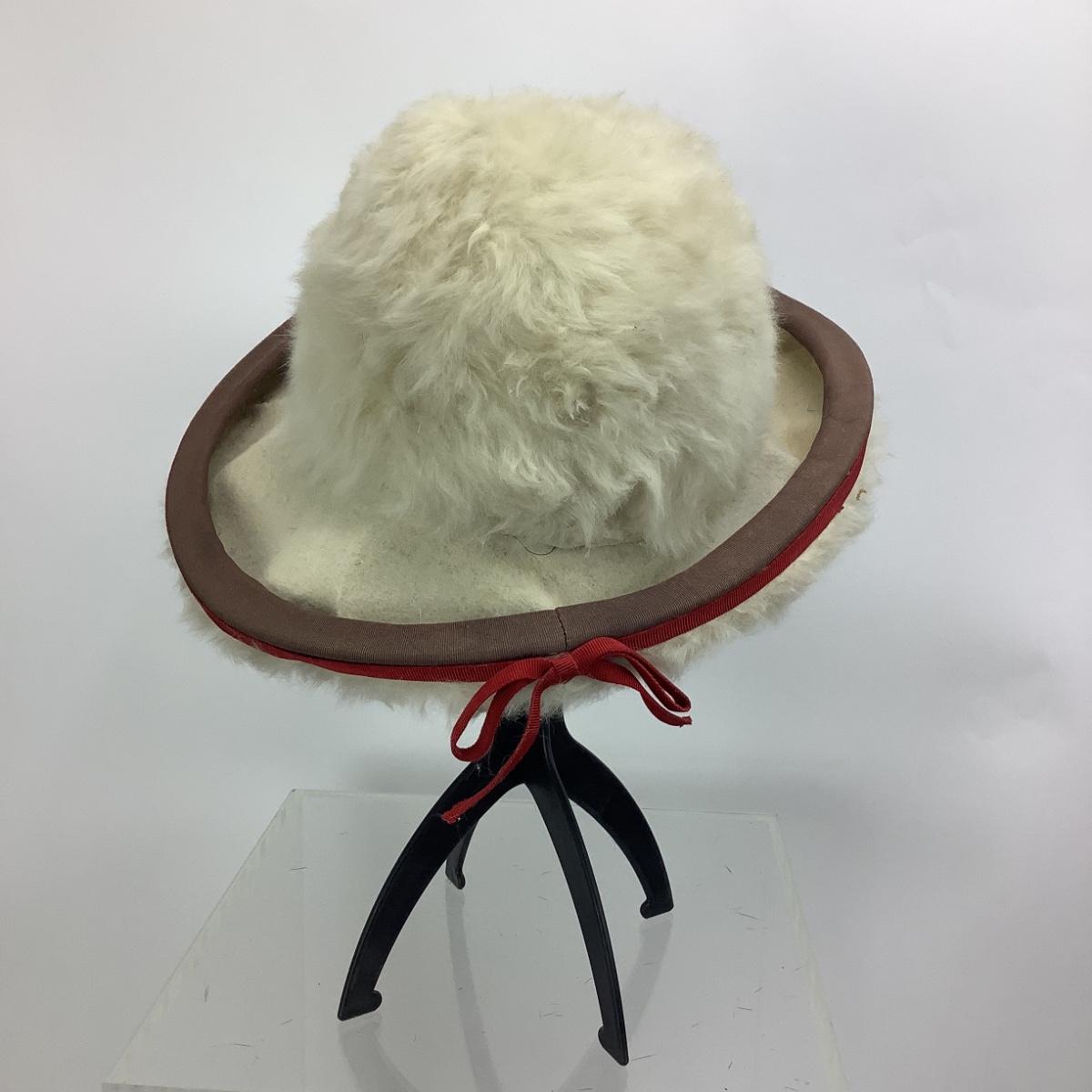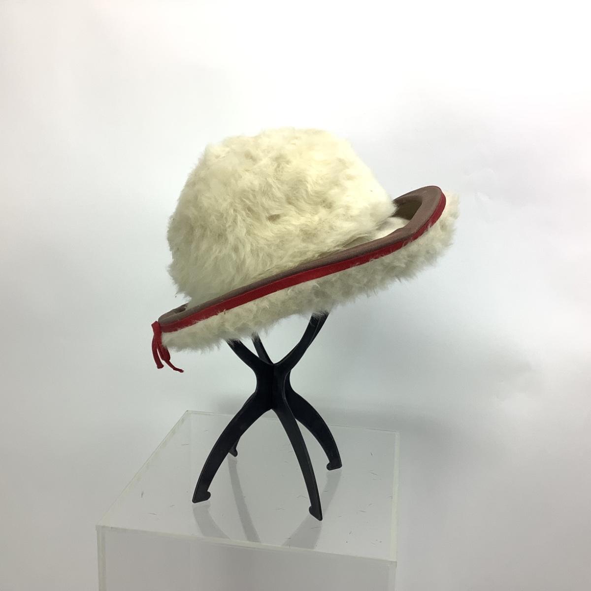 Hat is rabbit fur, measures 7" diameter inside the hat and from brim to brim 12" diameter.