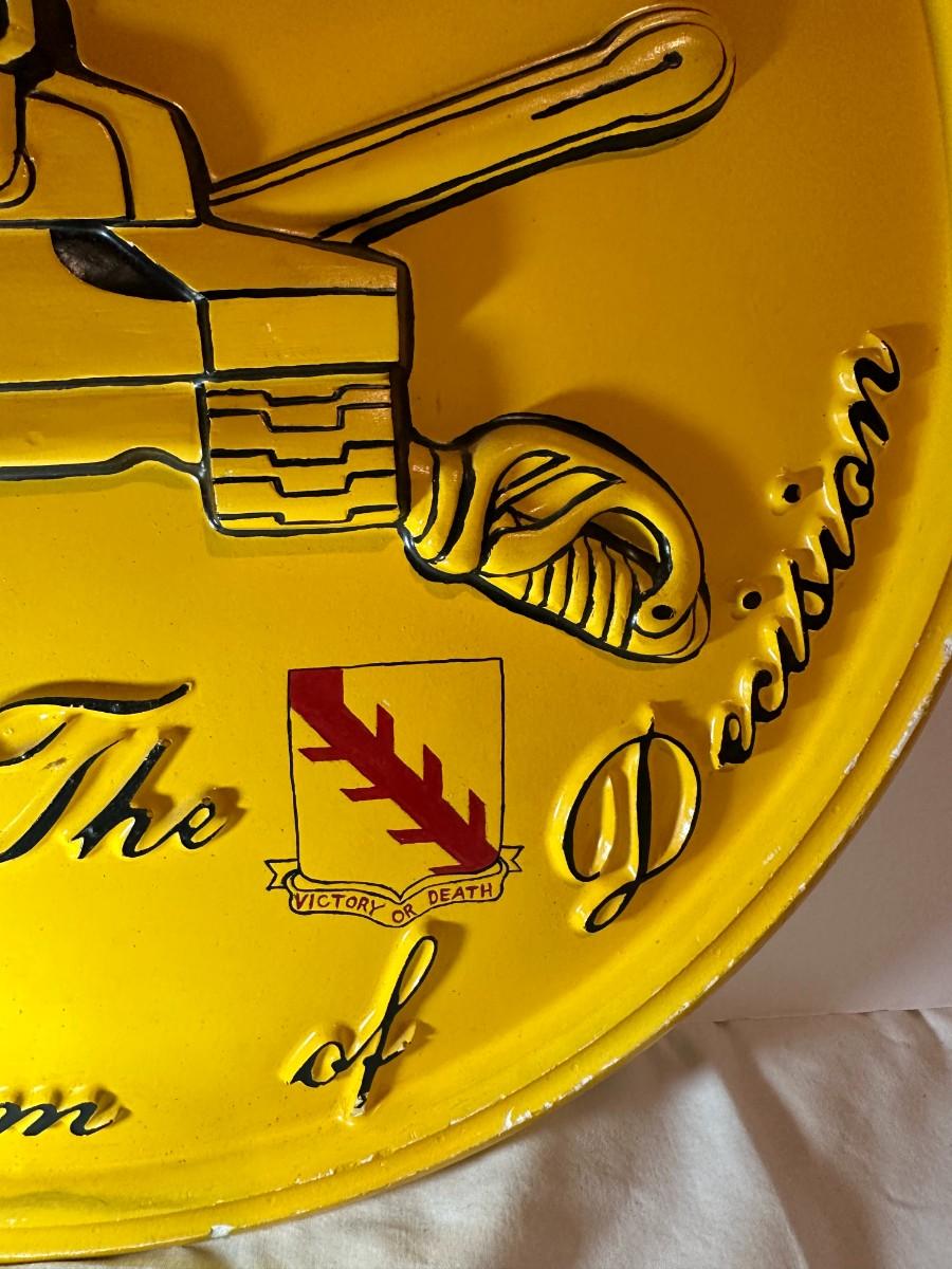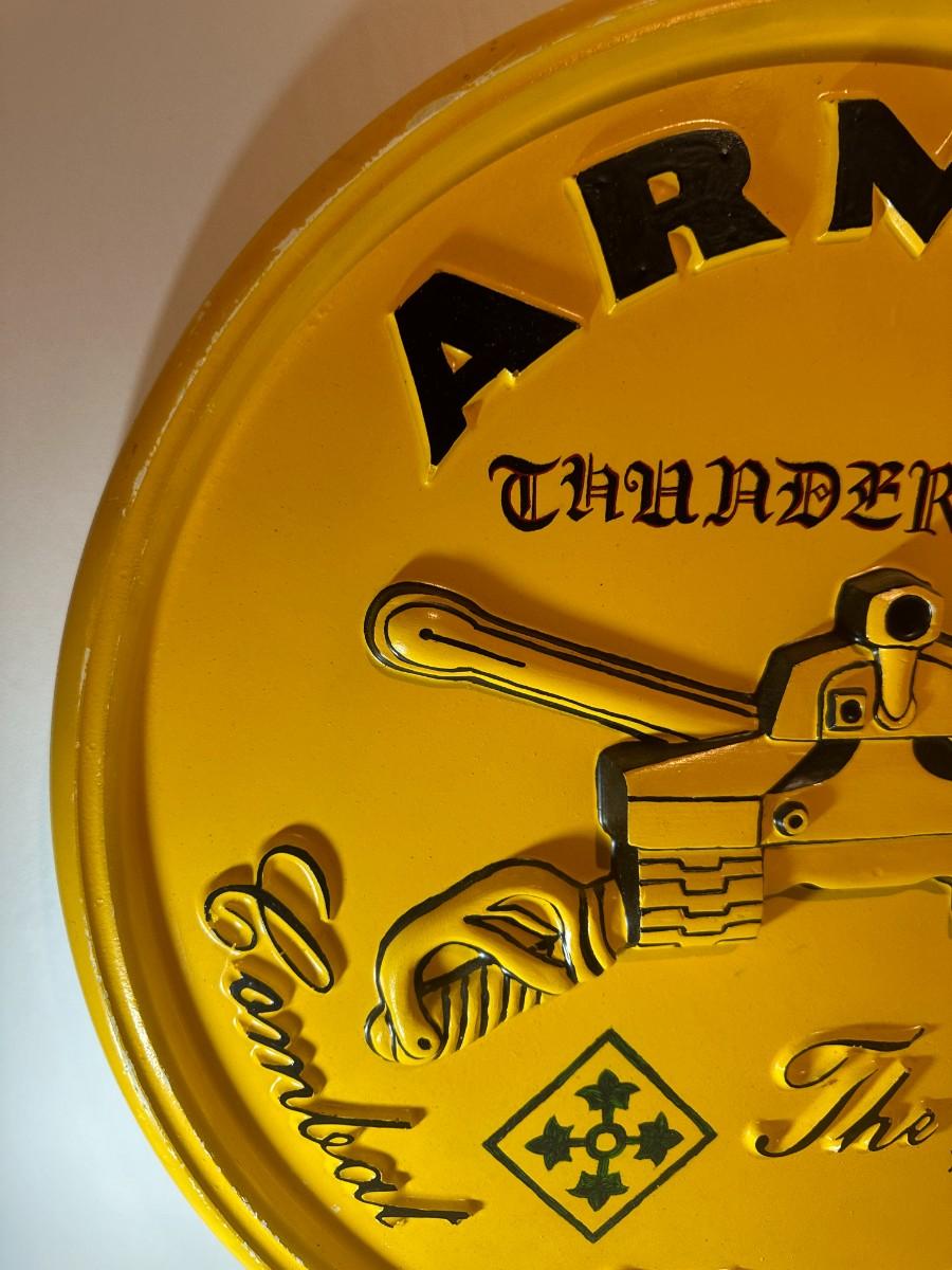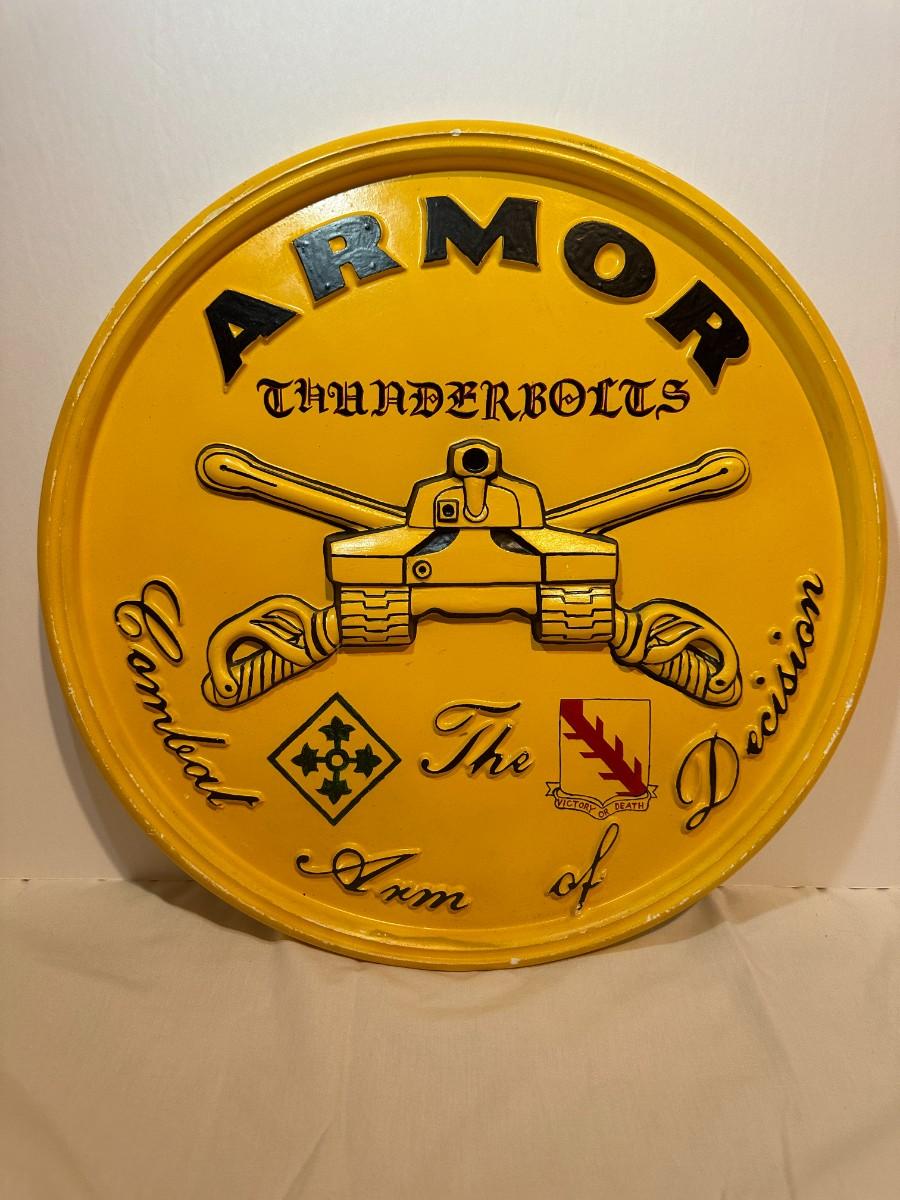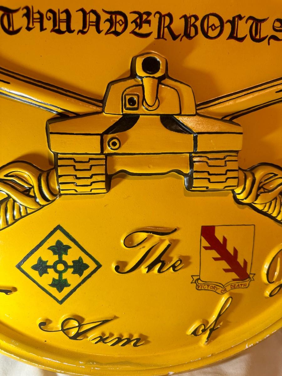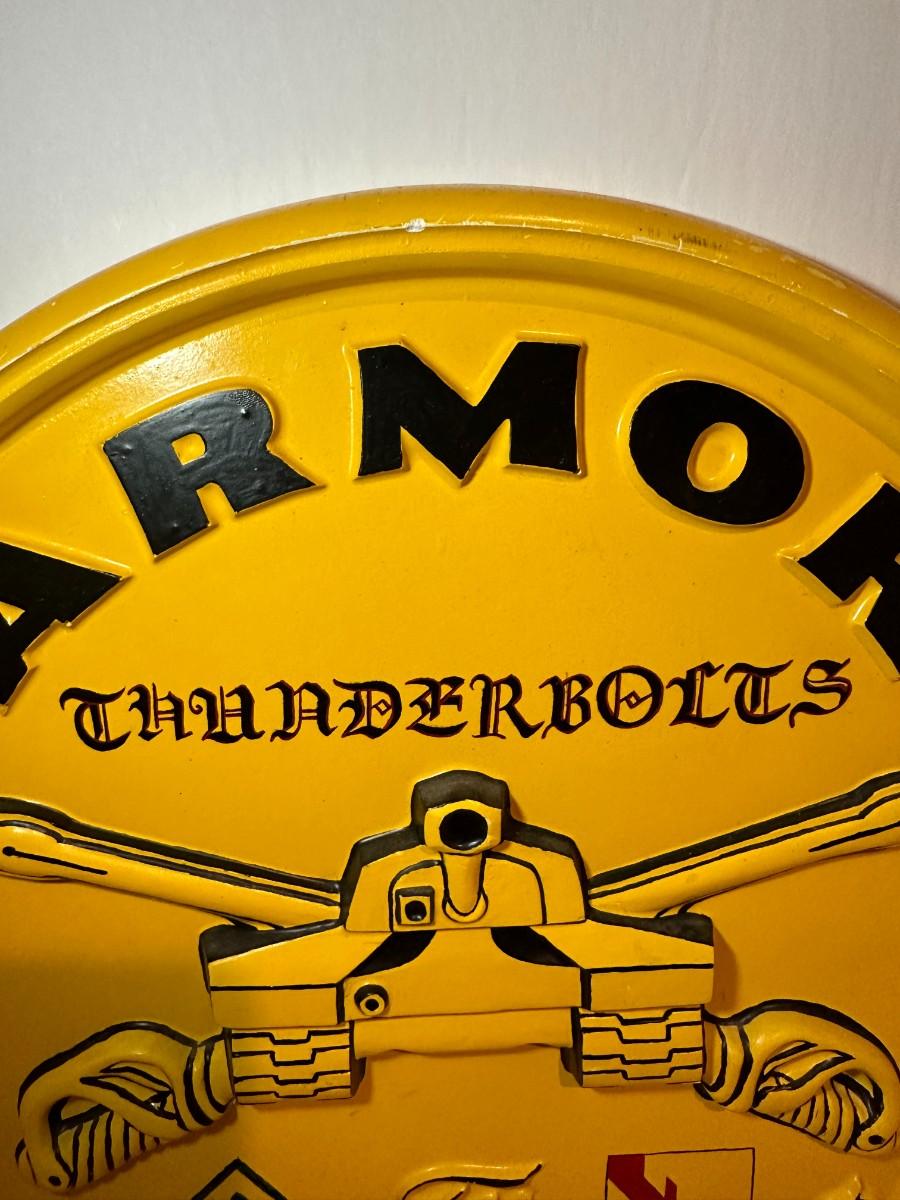 Beautiful plaster wall piece honoring the 68th Armor Thunderbolts. Approximate late 1980's. Gifted to a retiring Commander.