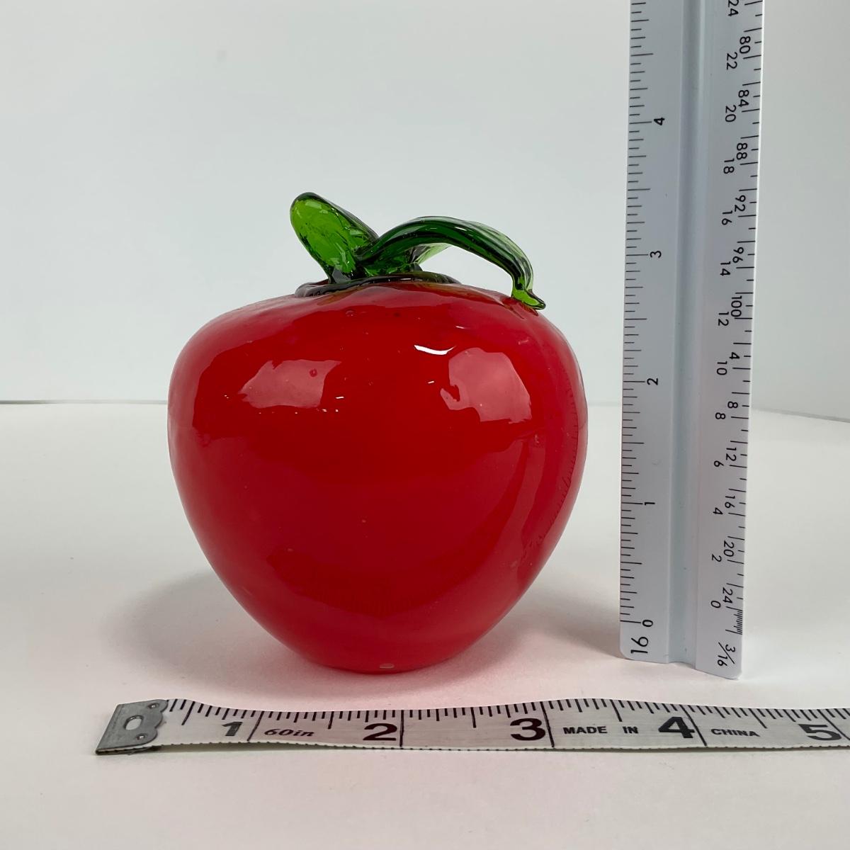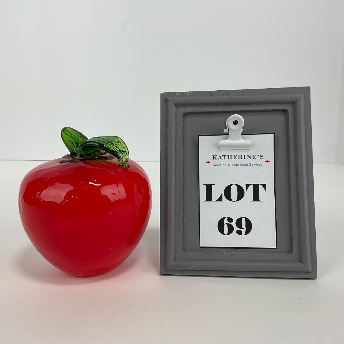 One vintage art glass red apple figure. This piece has no damage, and appears to be in great shape with no visable chips, cracks, or broken pieces. Please see photos for details and condition. Any condition statement is given as a courtesy to a client, is an opinion, and should not be treated as a statement of fact. Reference to condition written, oral or within a condition report shall not be regarded as a full account of condition and may not include all defects, alterations, or restorations. Absence of a condition report does not imply a lot is flawless or lacking imperfections or damage. Katherine’s Auction & Appraisal Service shall have no responsibility for any error or omission. Returns shall not be accepted on the basis of condition. ::: Shipping is available on this lot. If you require shipping you must let us know at the close of the auction. We will coordinate with you after the item has been won. Shipping fees will include insurance up to or exceeding the value of all items being mailed. If you have any questions regarding this lot please contact the auctioneer either via this website, by direct email or by phone. PICK UP TIMES and other important information can be found in the TERMS and DESCRIPTION of the auction. Please take a look for pertinent information. Thanks!