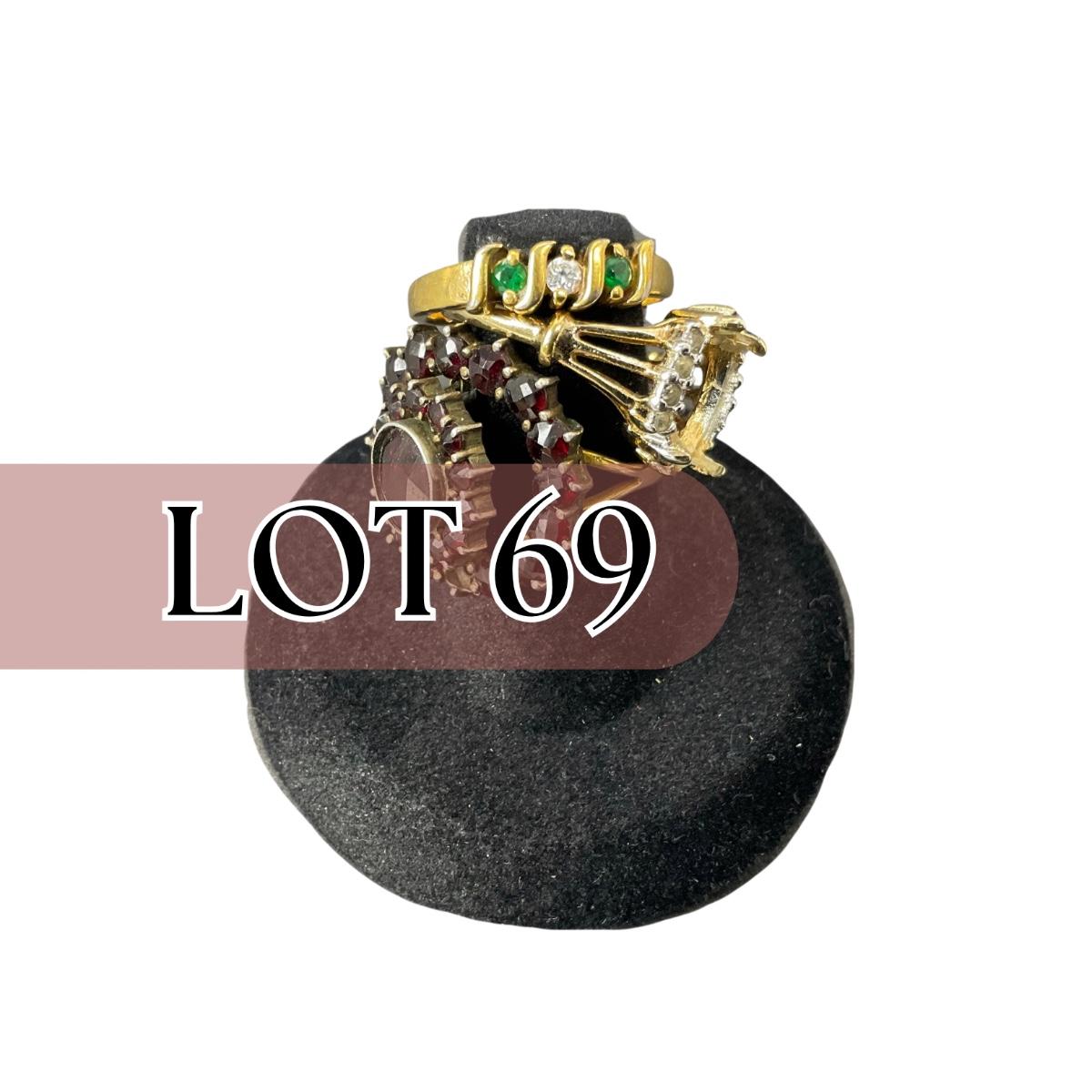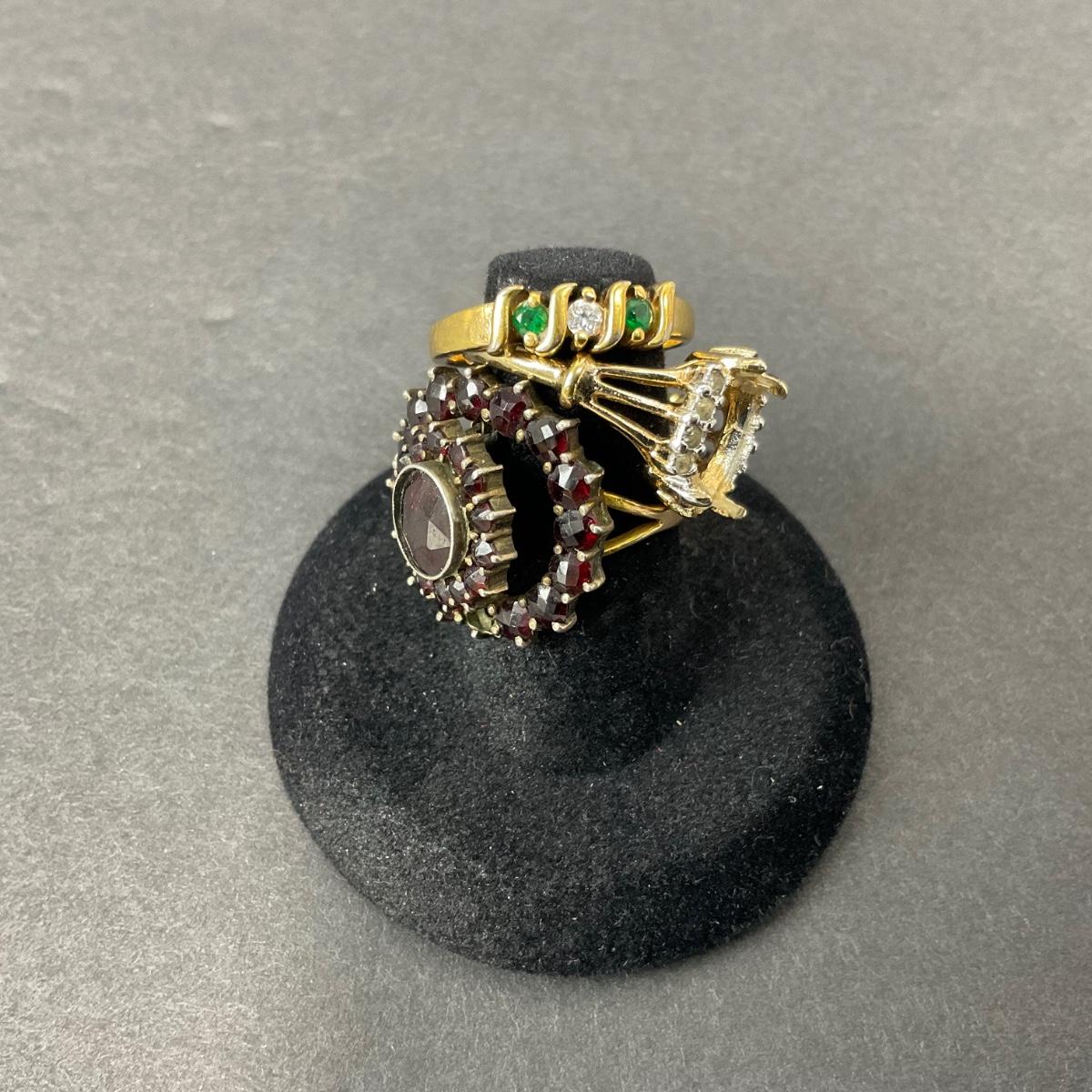 Three costume jewelry ring missing stones and pieces in rough shape. This pieces have some slight damage. These rings are sizes. Please see photos for details and condition. Any condition statement is given as a courtesy to a client, is an opinion, and should not be treated as a statement of fact. Reference to condition written, oral or within a condition report shall not be regarded as a full account of condition and may not include all defects, alterations, or restorations. Absence of a condition report does not imply a lot is flawless or lacking imperfections or damage. Katherine’s Auction & Appraisal Service shall have no responsibility for any error or omission. Returns shall not be accepted on the basis of condition. ::: Shipping is available on this lot. If you require shipping you must let us know at the close of the auction. We will coordinate with you after the item has been won. Shipping fees will include insurance up to or exceeding the value of all items being mailed. If you have any questions regarding this lot please contact the auctioneer either via this website, by direct email or by phone. PICK UP TIMES and other important information can be found in the TERMS and DESCRIPTION of the auction. Please take a look for pertinent information. Thanks!