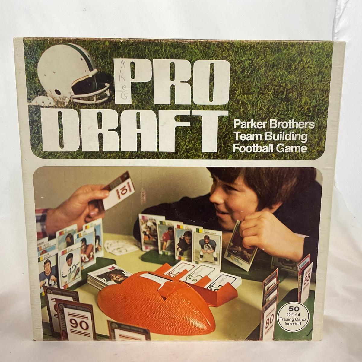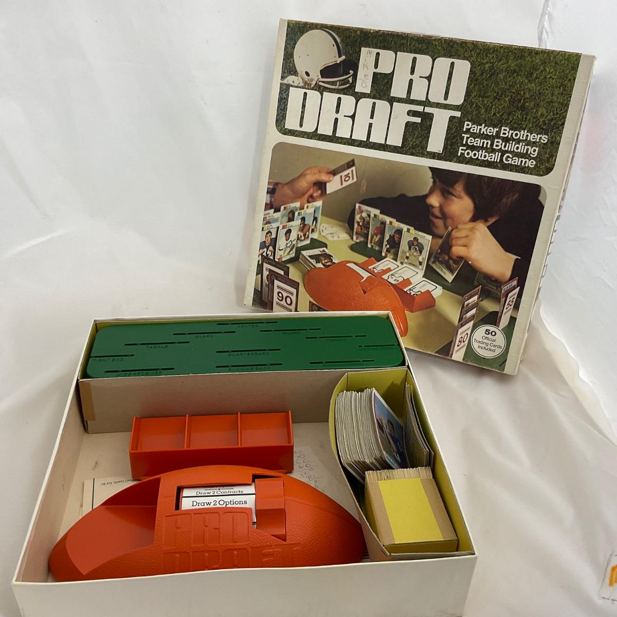 One 1973 Pro Draft football game with cards. Add pro draft to an upcoming family game night, and really test you knowledge! Please see photos for details and condition. ::: Shipping is available on this lot. If you require shipping you must let us know at the close of the auction. We will coordinate with you after the item has been won. Shipping fees will include insurance up to or exceeding the value of all items being mailed. If you have any questions regarding this lot please contact the auctioneer either via this website, by direct email or by phone. PICK UP TIMES and other important information can be found in the TERMS and DESCRIPTION of the auction. Please take a look for pertinent information. Thanks!