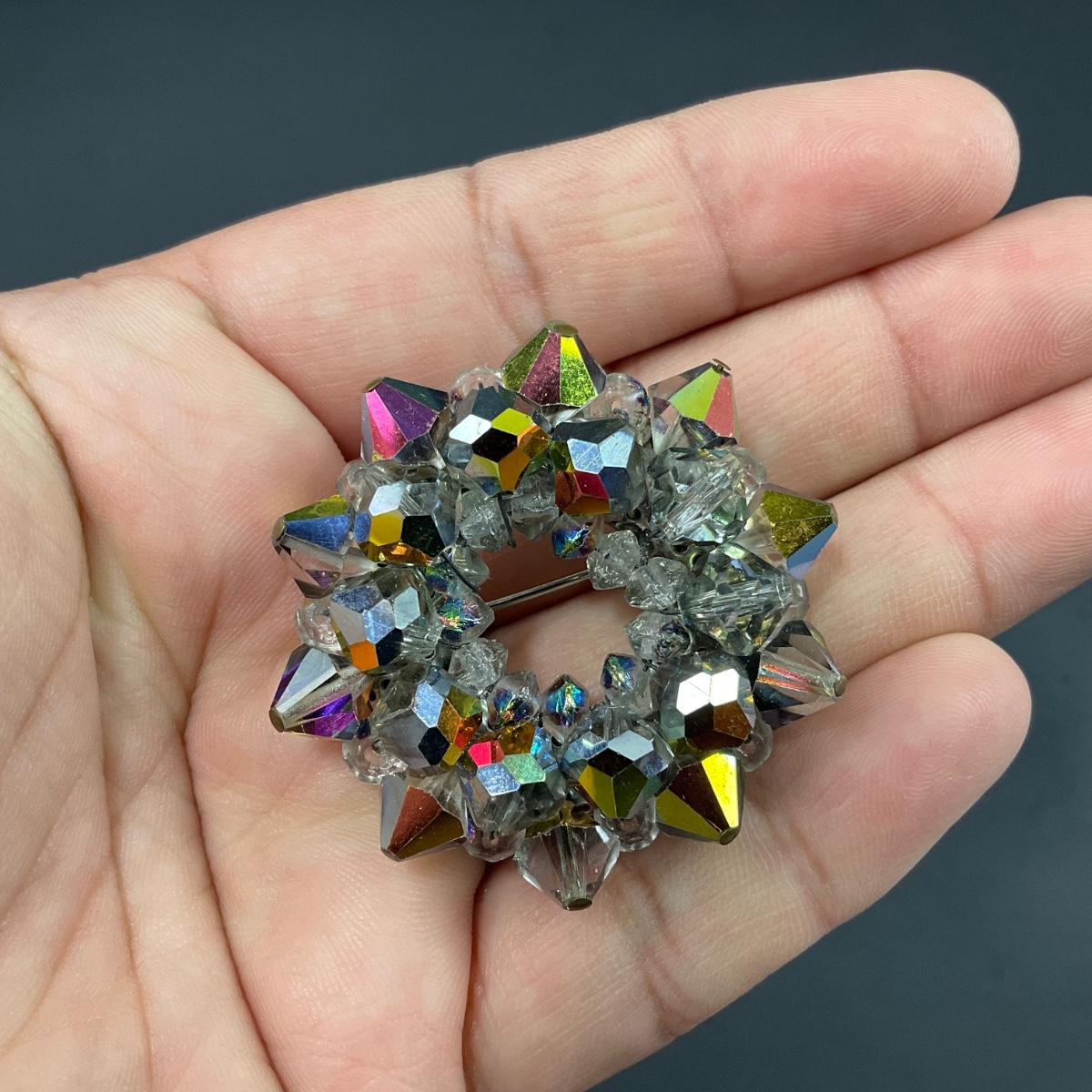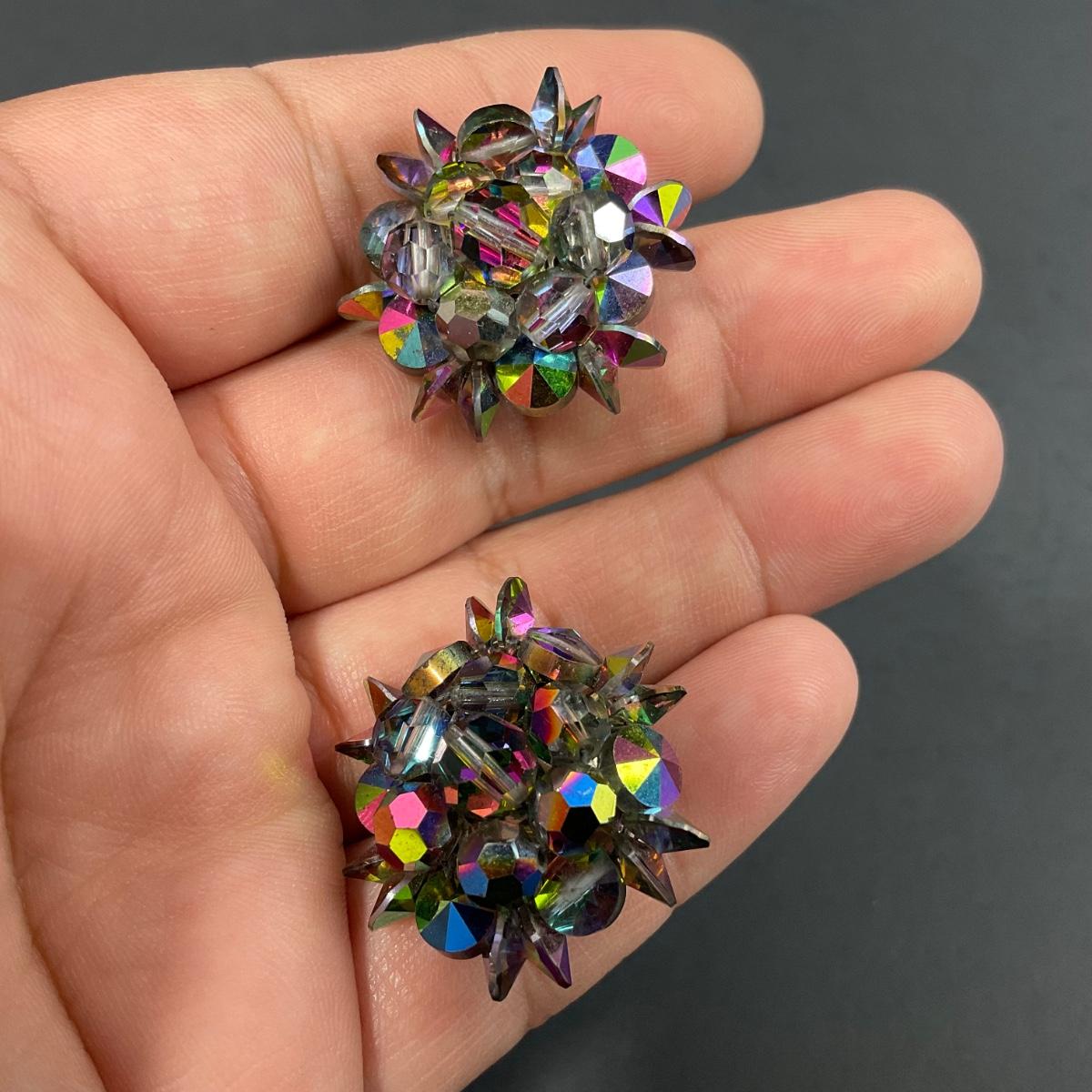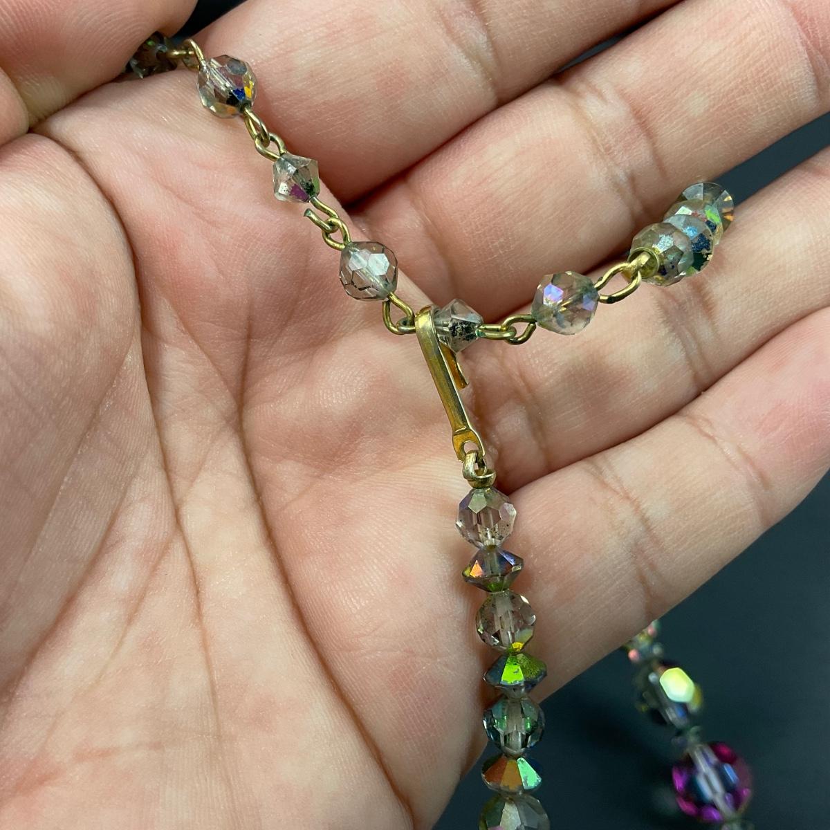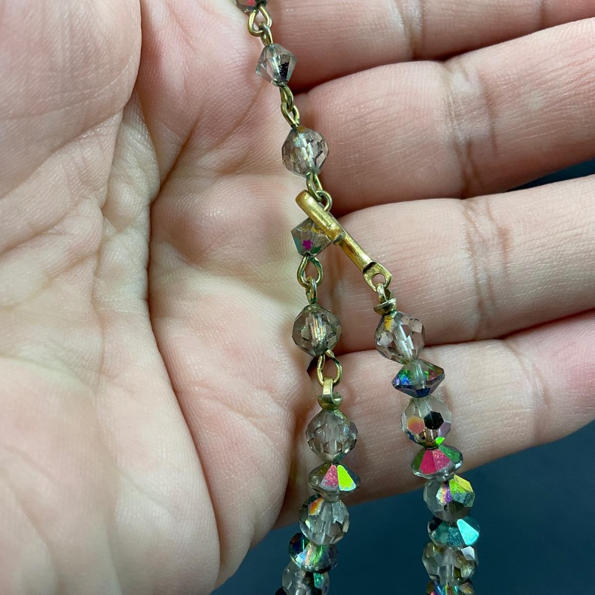 One vintage Smokey Aurora set including one necklace, one pair of clip earrings, and one brooch. Please see photos for details and condition. Any condition statement is given as a courtesy to a client, is an opinion, and should not be treated as a statement of fact. Reference to condition written, oral or within a condition report shall not be regarded as a full account of condition and may not include all defects, alterations, or restorations. Absence of a condition report does not imply a lot is flawless or lacking imperfections or damage. Katherine’s Auction & Appraisal Service shall have no responsibility for any error or omission. Returns shall not be accepted on the basis of condition. ::: Shipping is available on this lot. If you require shipping you must let us know at the close of the auction. We will coordinate with you after the item has been won. Shipping fees will include insurance up to or exceeding the value of all items being mailed. If you have any questions regarding this lot please contact the auctioneer either via this website, by direct email or by phone. PICK UP TIMES and other important information can be found in the TERMS and DESCRIPTION of the auction. Please take a look for pertinent information. Thanks!