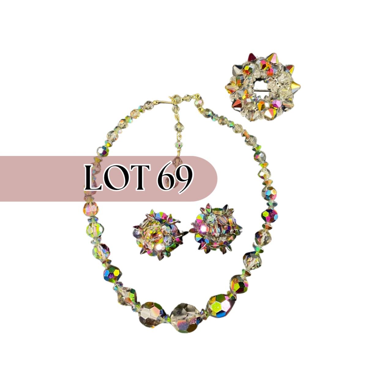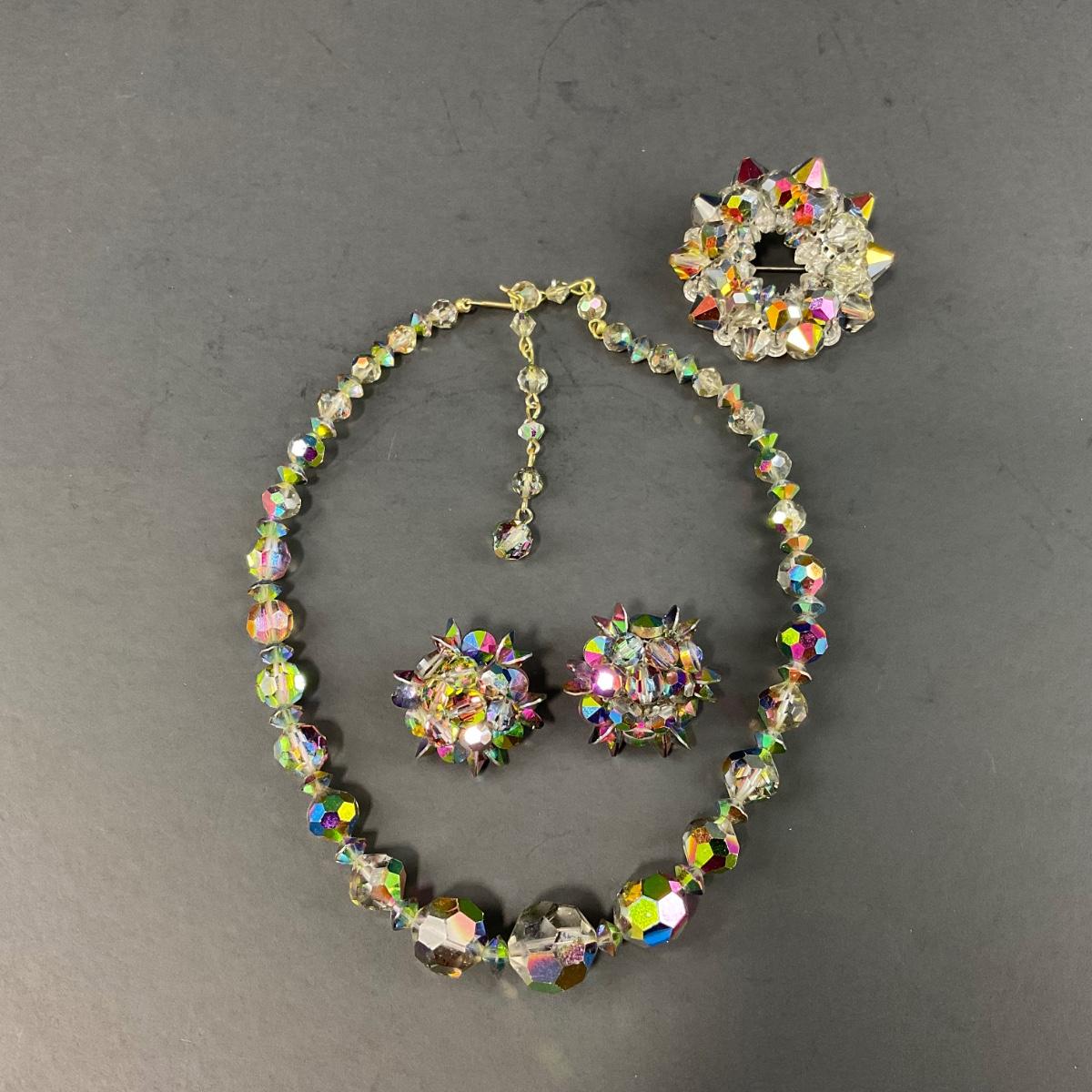 -69- JEWELRY | Smokey Aurora Necklace, Clip Earrings, & Brooch
