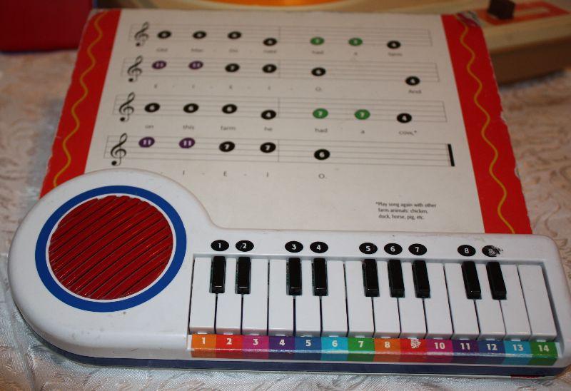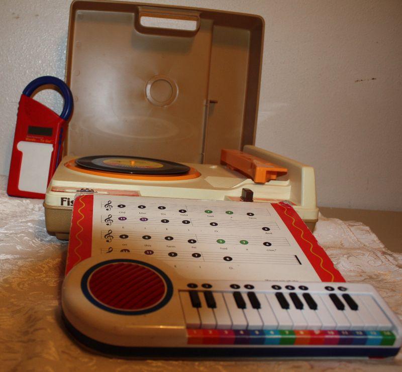 Fisher-Price record player works best at 33 1/3 speed, Texas Instruments Words to Go with 10 cards; miniature keyboard with one song, Tested and they work