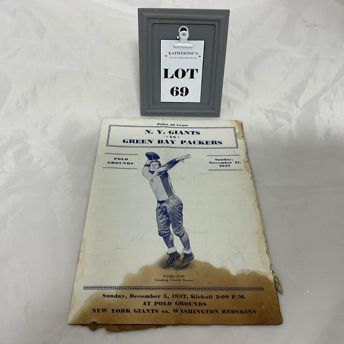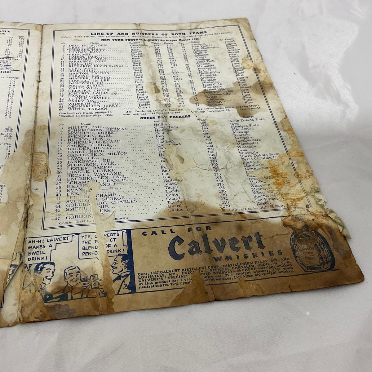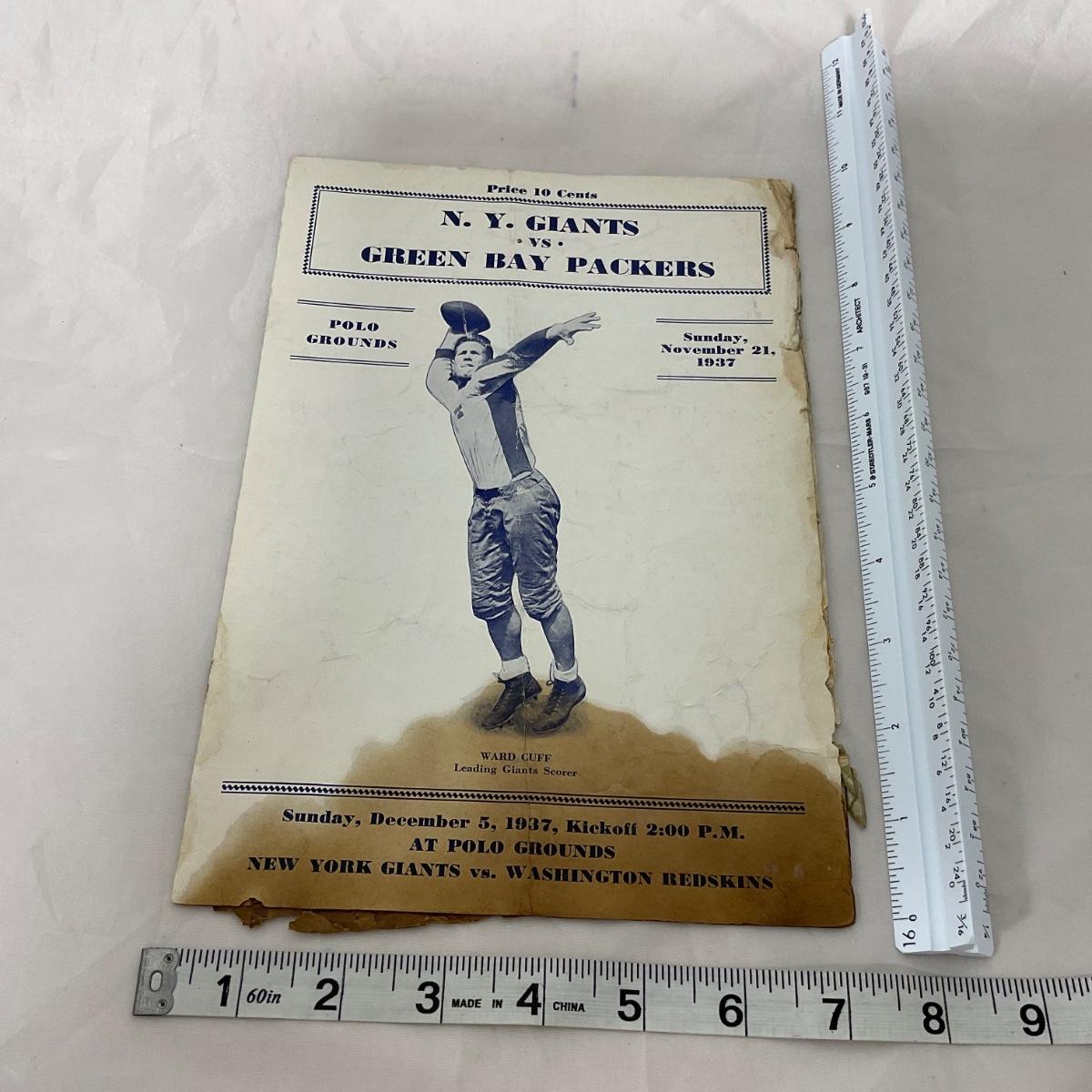 -69- SPORTS | 1937 Green Bay Packers Vs Giants Program | Rough Condition